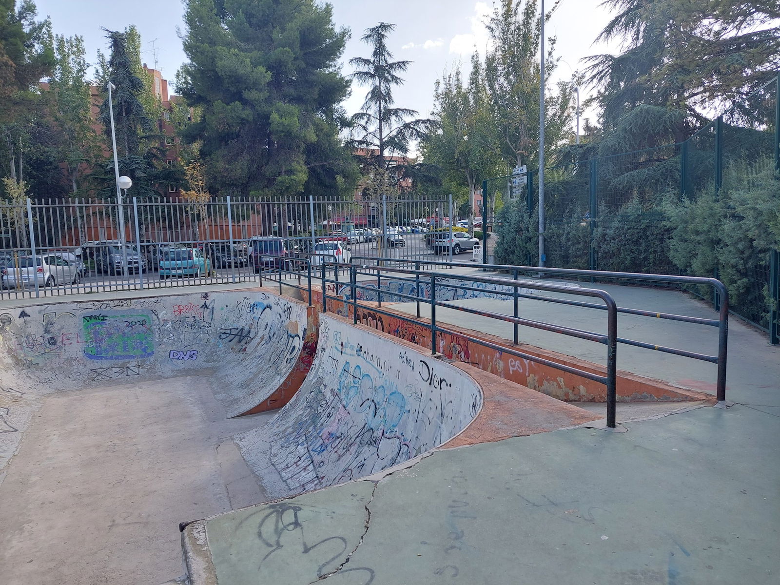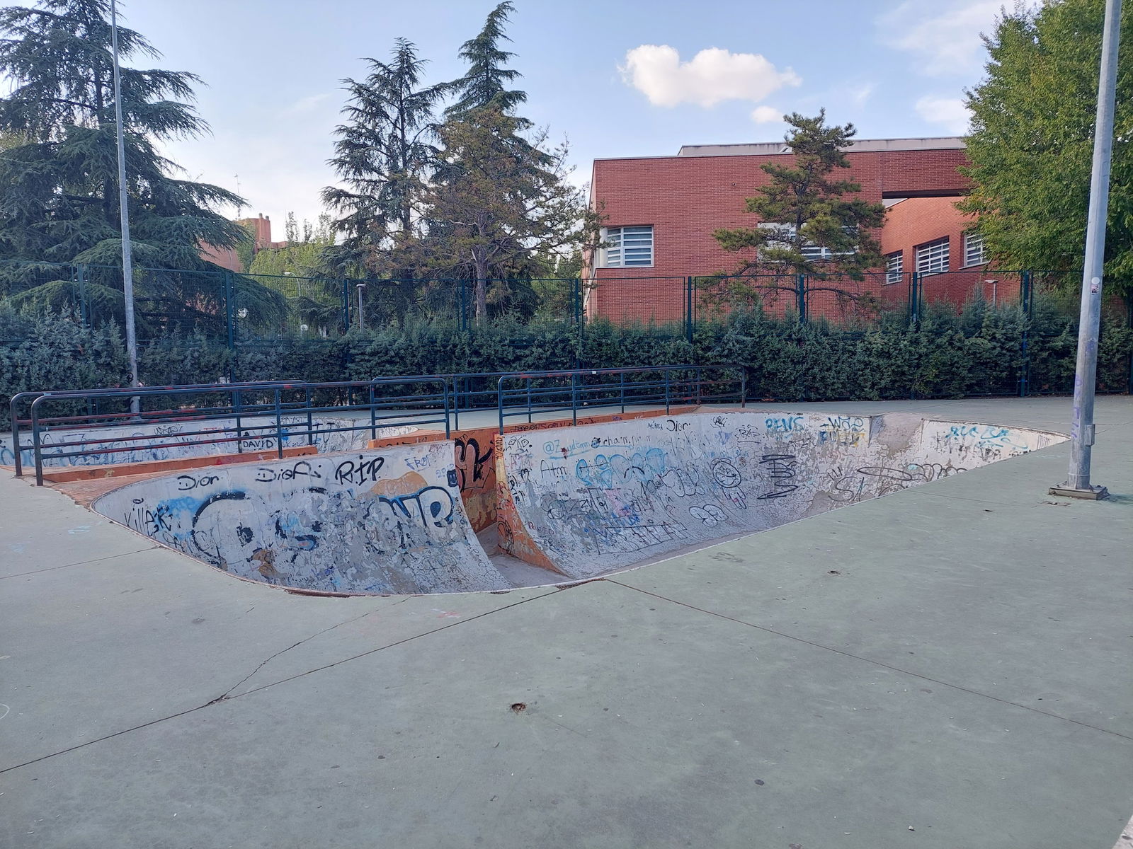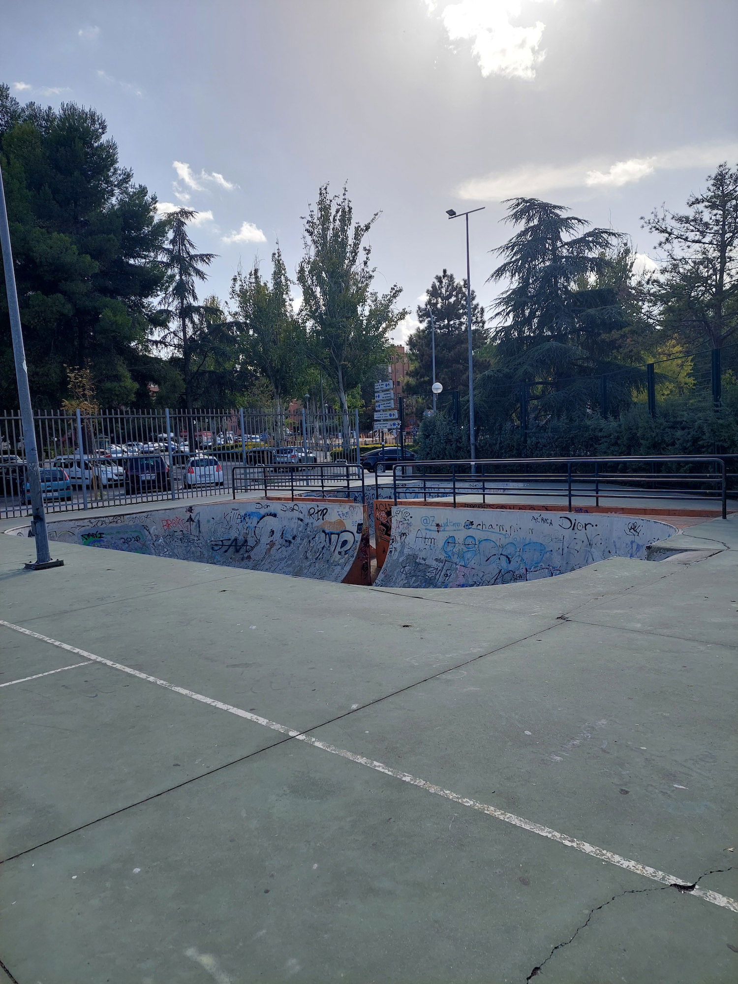 San Fernando de Henares skatepark consists of two concrete skate bowls.