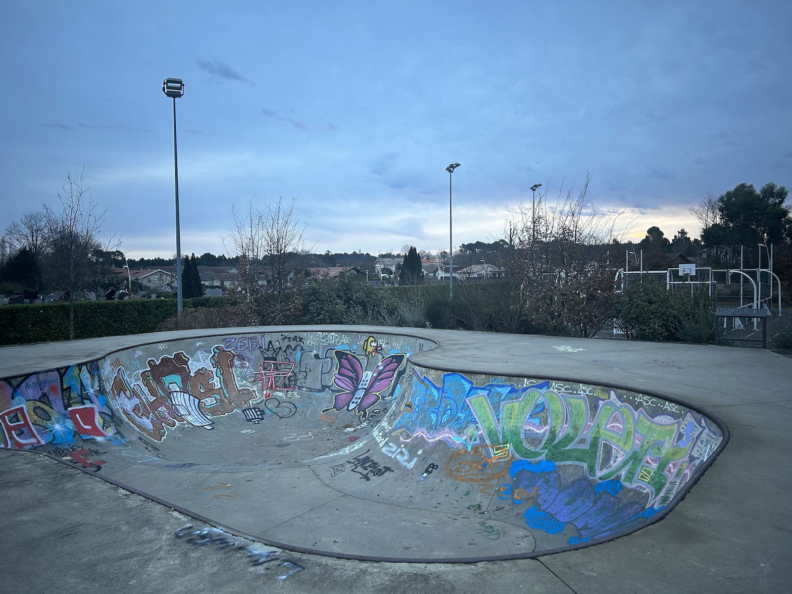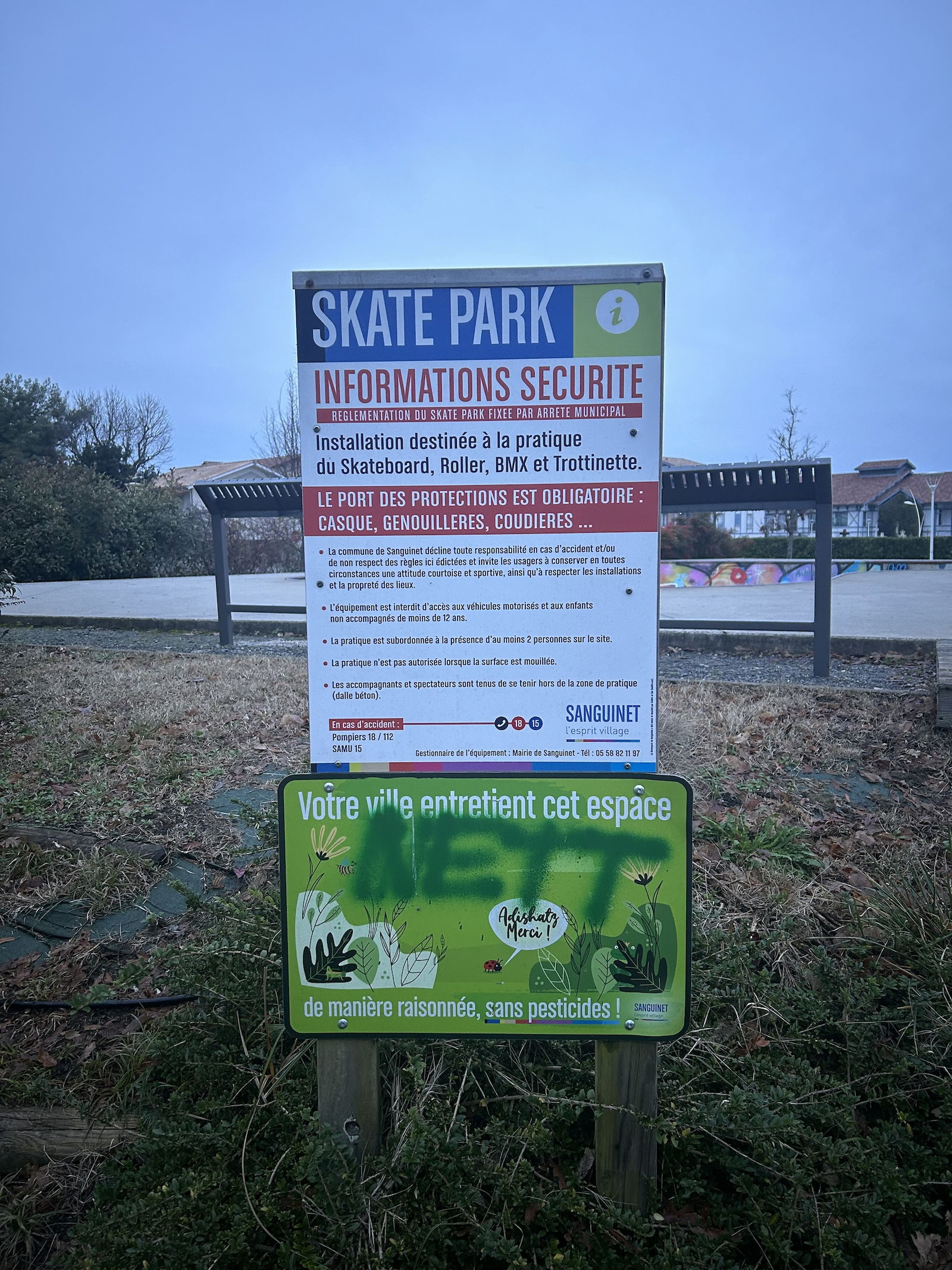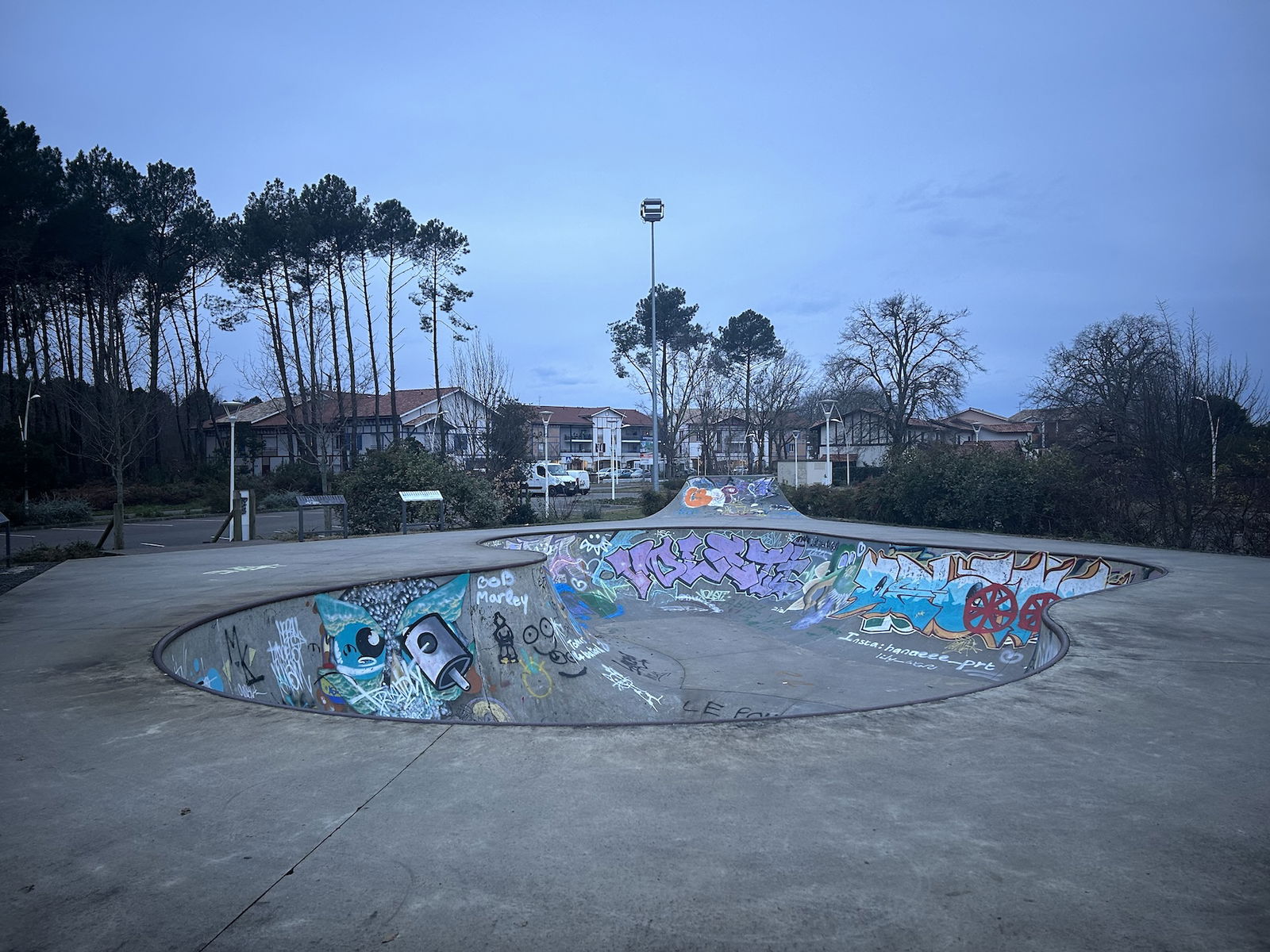 Sanguinet skatepark is a concrete skatepark featuring a bowl and a quarterpipe.