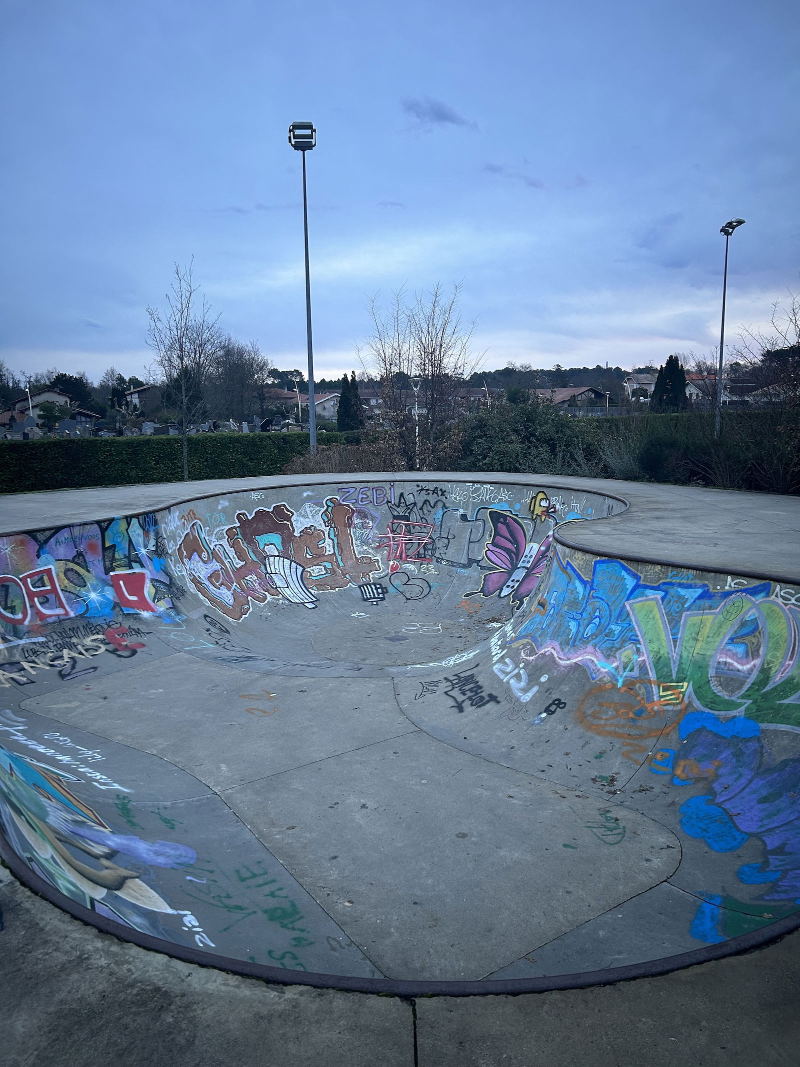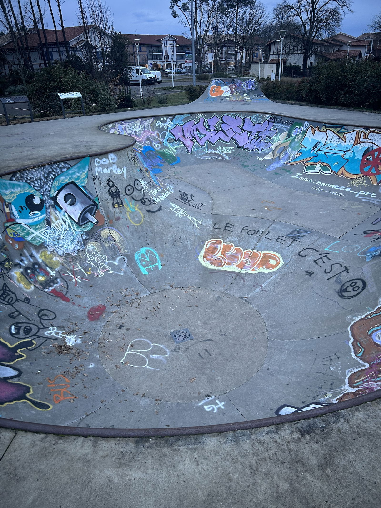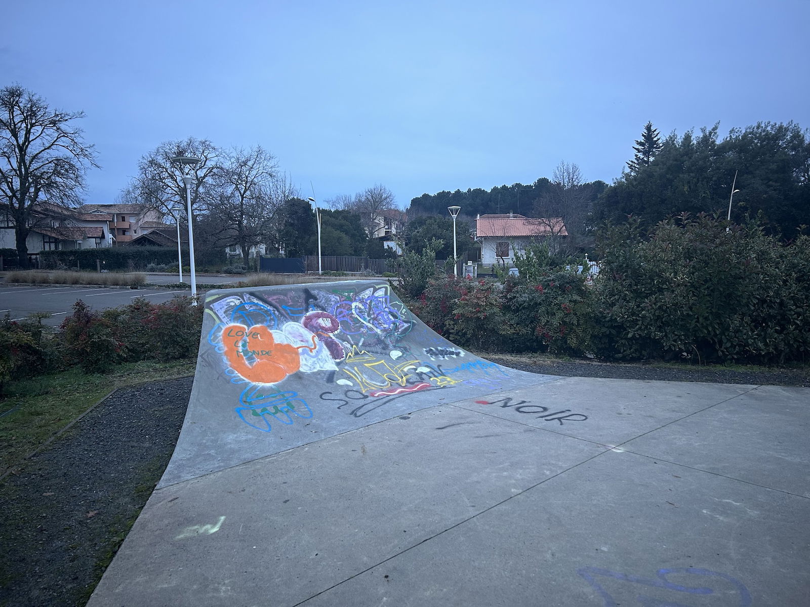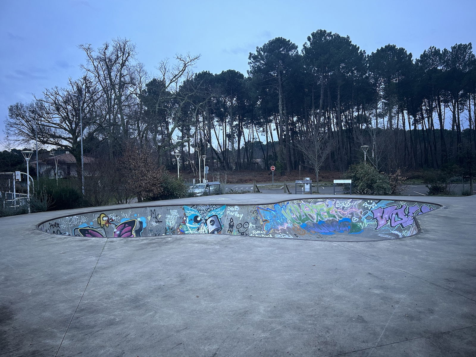 Sanguinet skatepark is a concrete skatepark featuring a bowl and a quarterpipe.