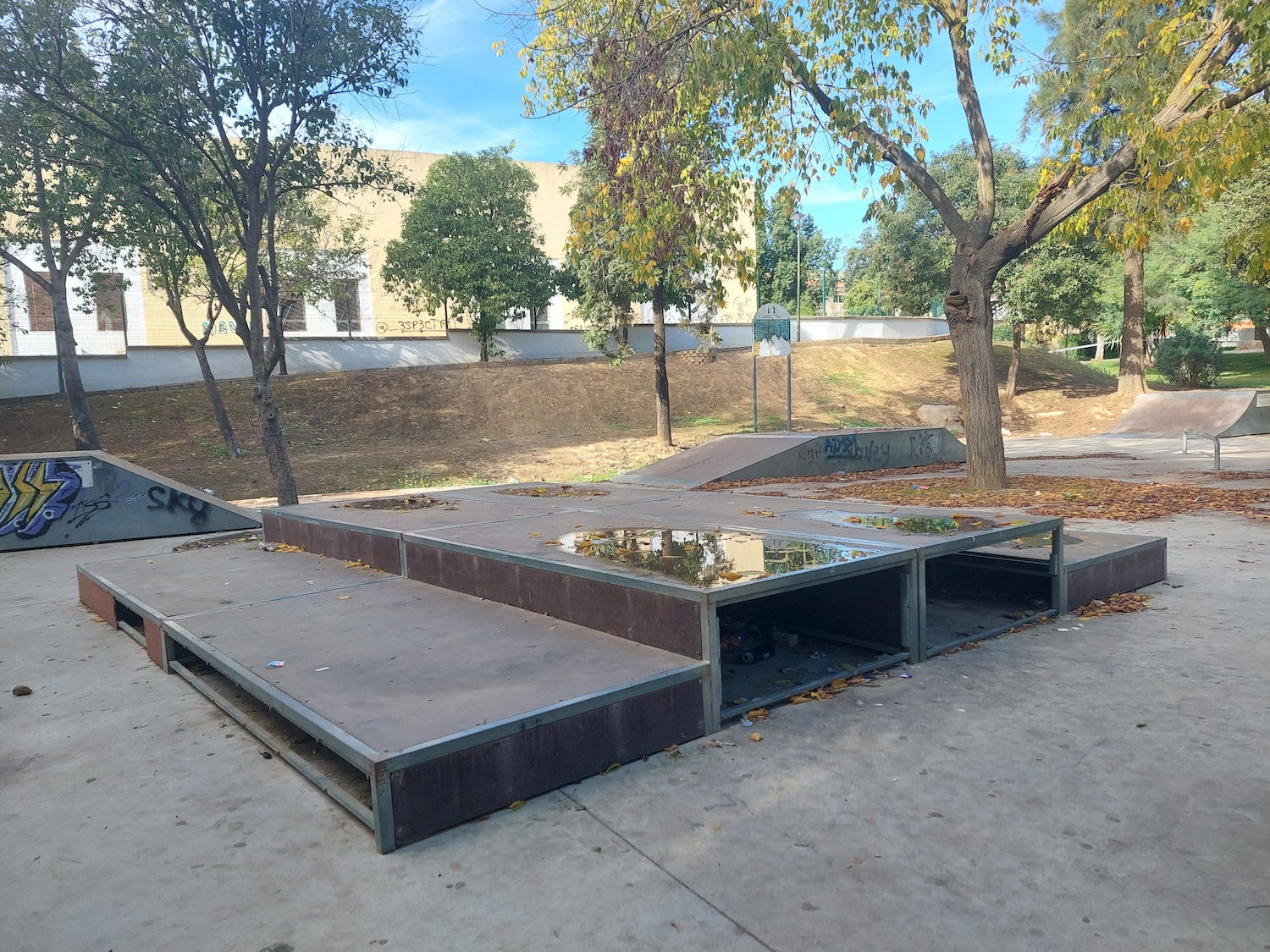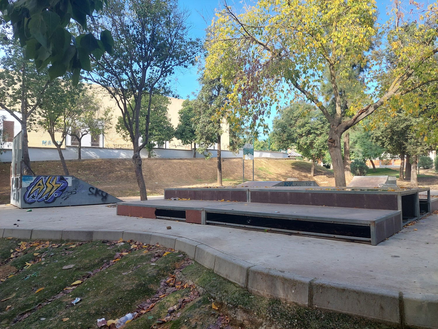 Sanlúcar la Mayor skatepark is a small park with several basic skateboarding obstacles.