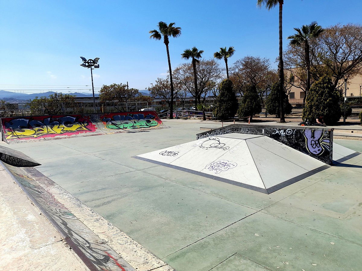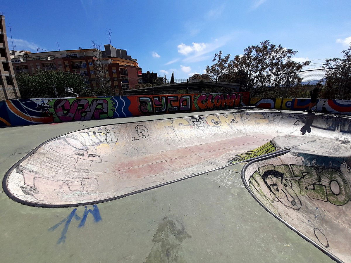 Sant Feliu De Llobregat skatepark is a large concrete skatepark featuring a bowl and area with street obstacles. The skatepark has lights.