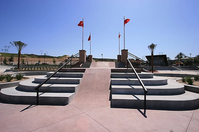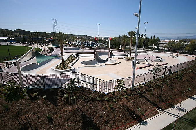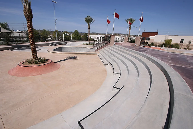 Santa Clarita skatepark is well designed and innovative concrete skatepark in Santa Clarita. The skatepark features a large bowl, stair sets, ledges, rails and much more. Builders, designers and constructors: California skateparks.