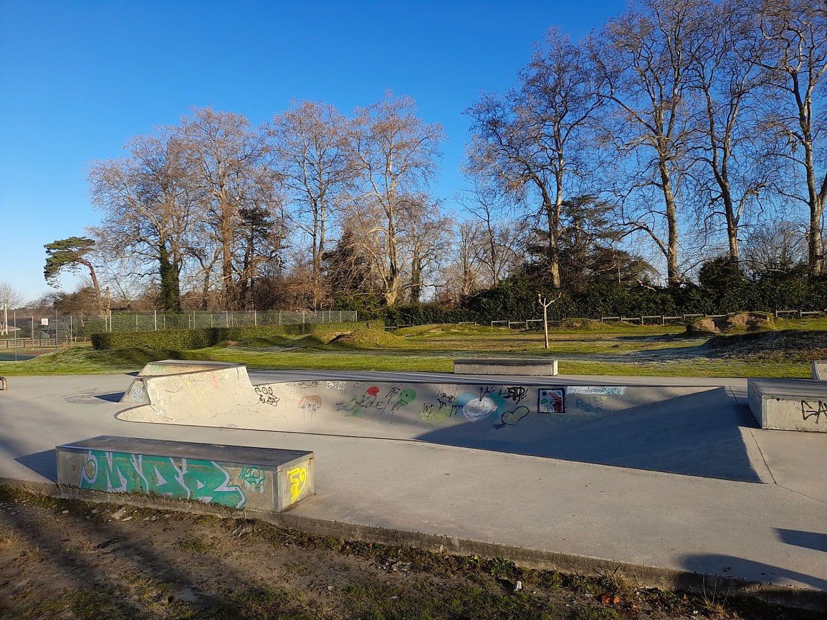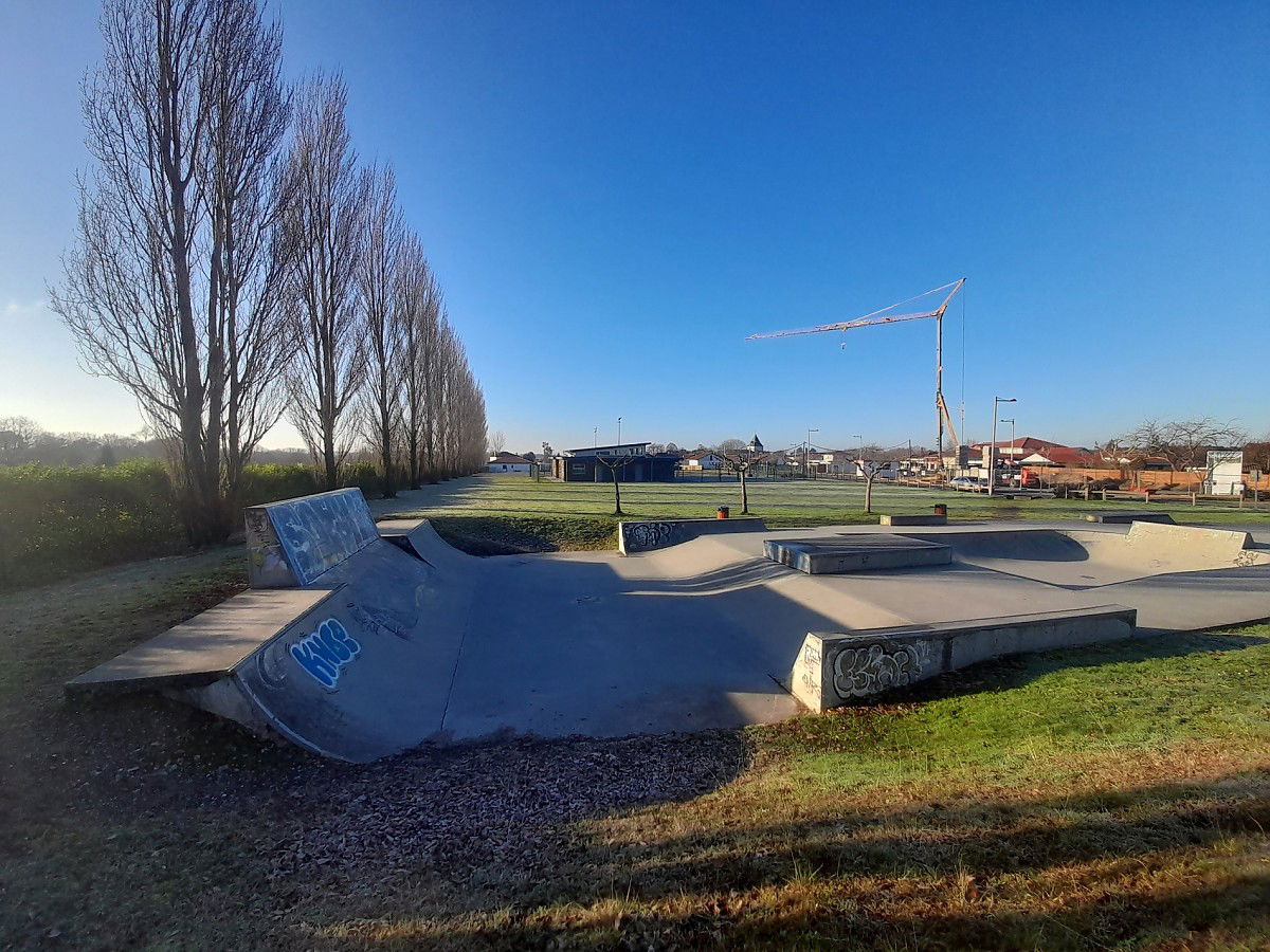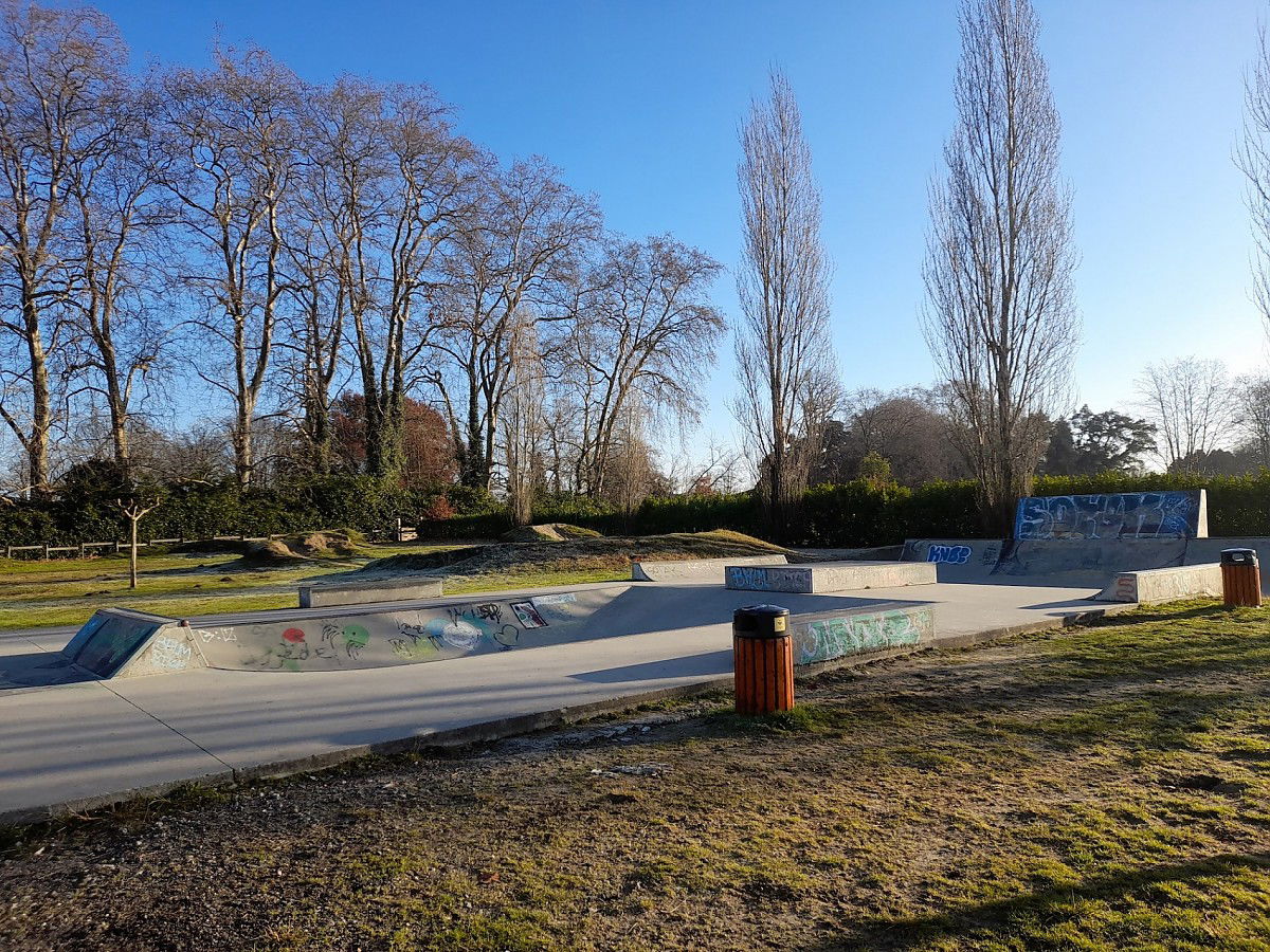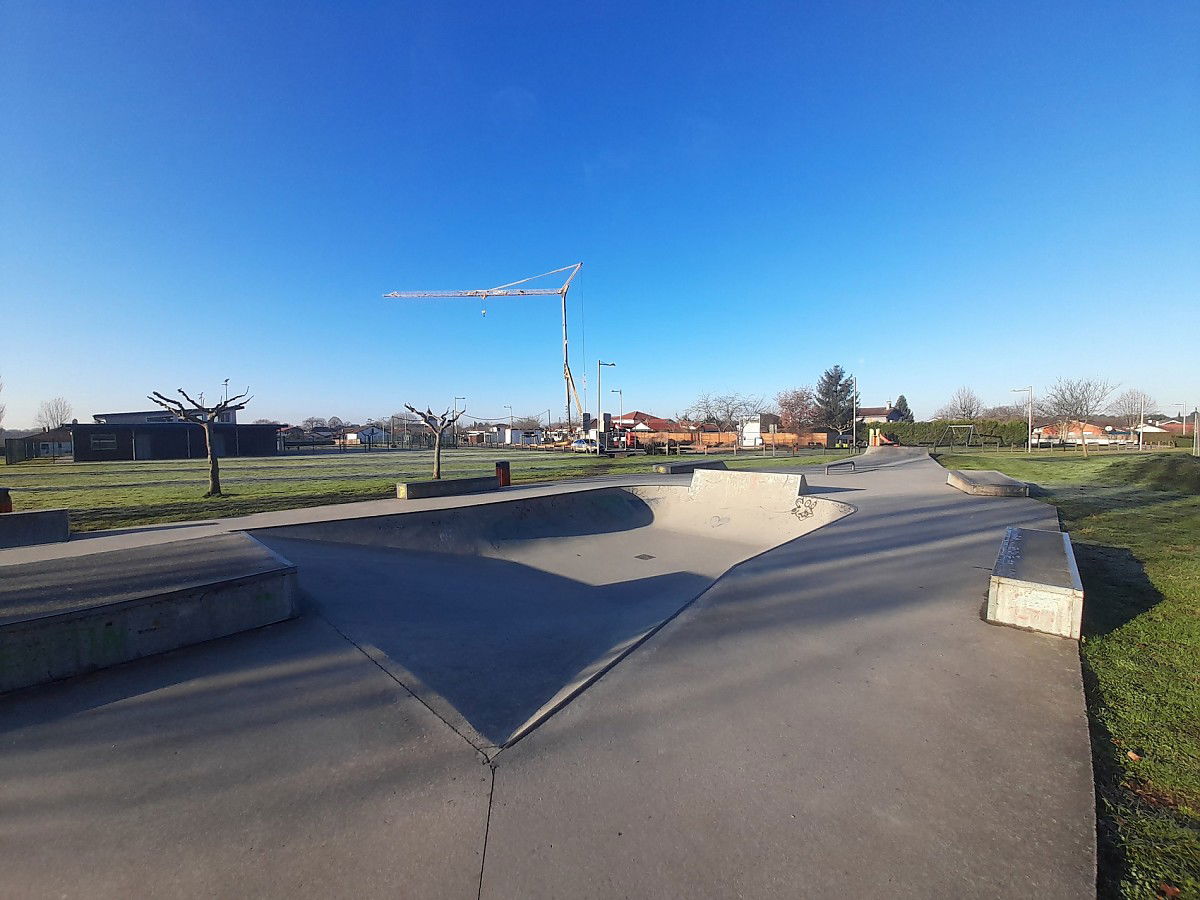 Saubion skatepark consists of concrete open bowl, some curbs and ledges.