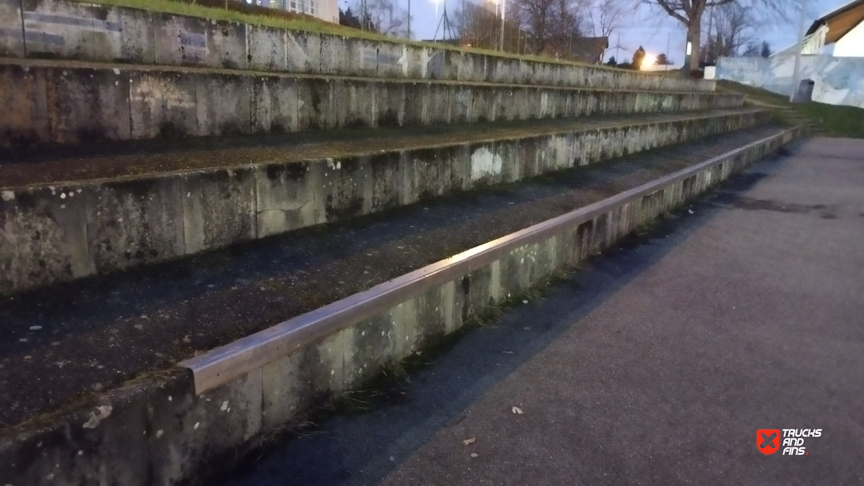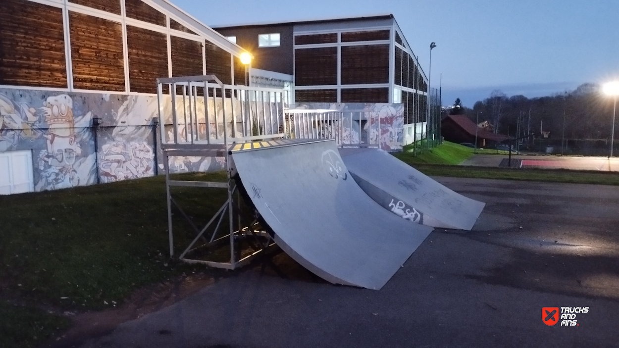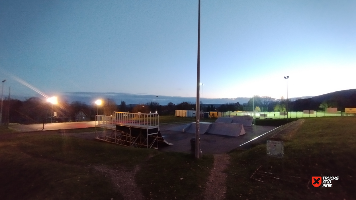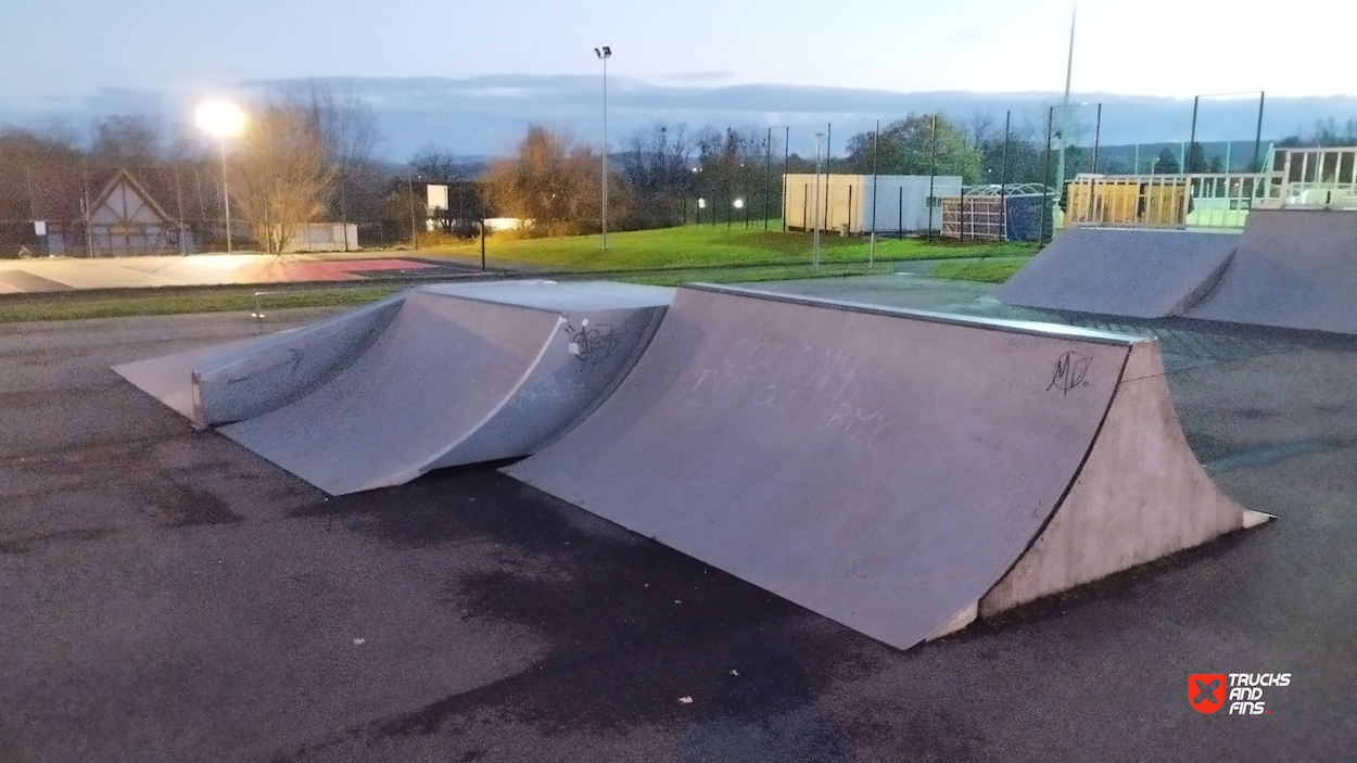 Saverne skatepark is made up of a back and forth run with a quarter pipe and bank on the sides of a funbox.