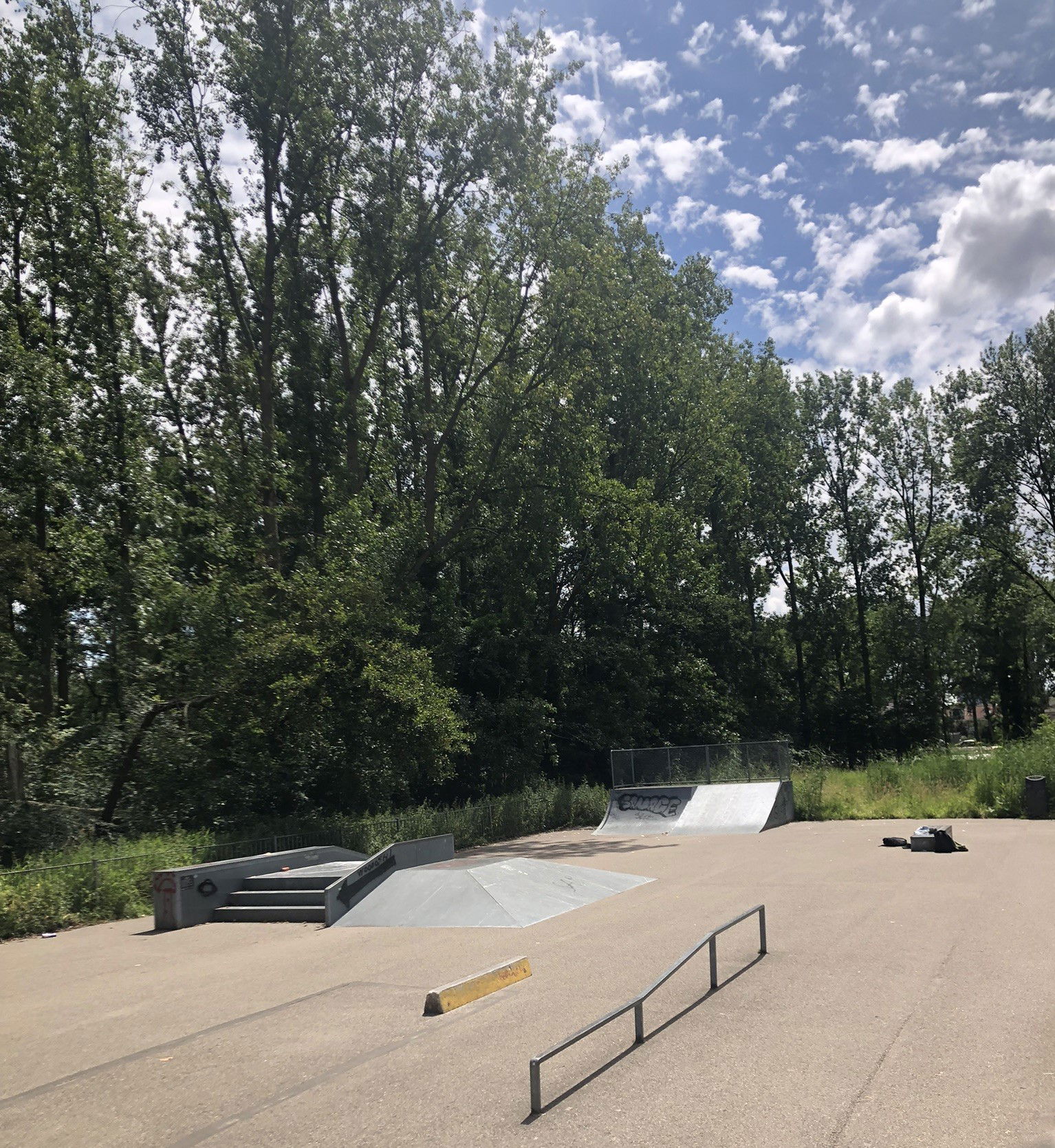 Schiebroek skatepark is a metal skatepark. The skatepark is made up of a back and forth run with a quarter pipe and flat bank on either side of a funbox, and also features a miniramp and several street obstacles.
