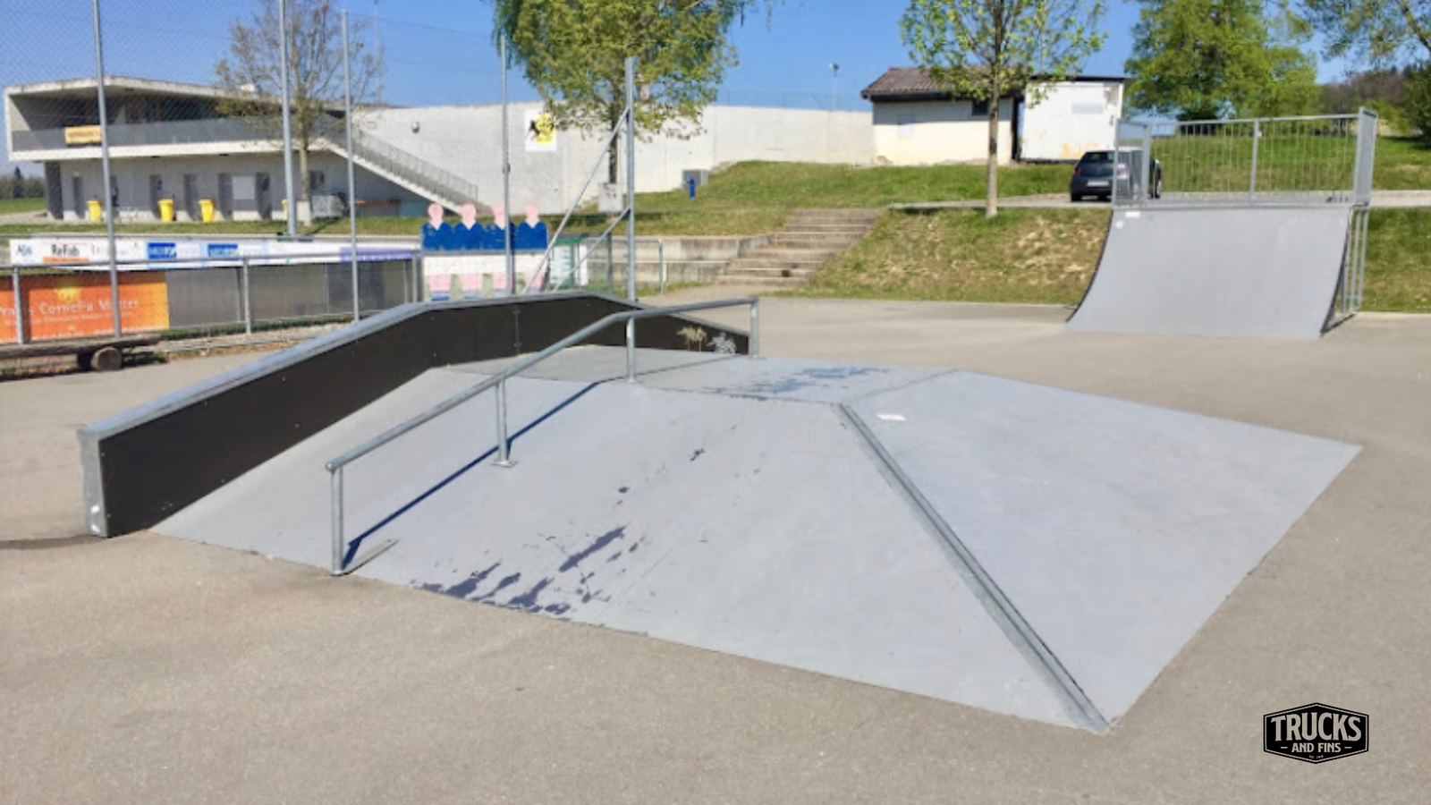 Seengen skatepark is a small metal back and forth skatepark, located next to the Musterplatz football fieild.