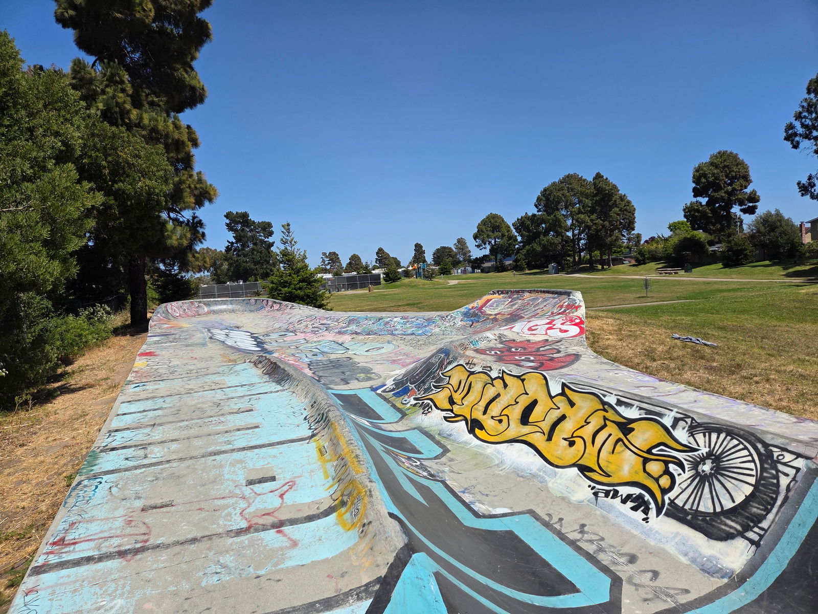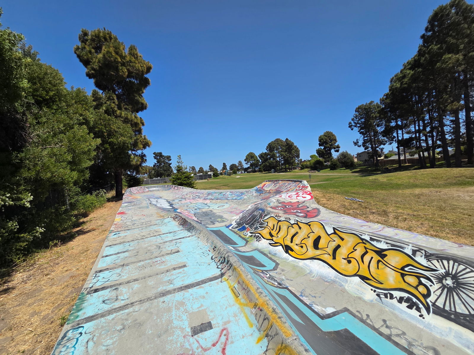 This isn‘t 70‘s style, this IS 70‘s. Sergeant Derby skatepark, one of the first public skateparks in the world, features a long concrete snakerun. Designed in 1974 by Ken Wormhoudt and completed in 1976, Derby was controversially rebuilt in 2012.