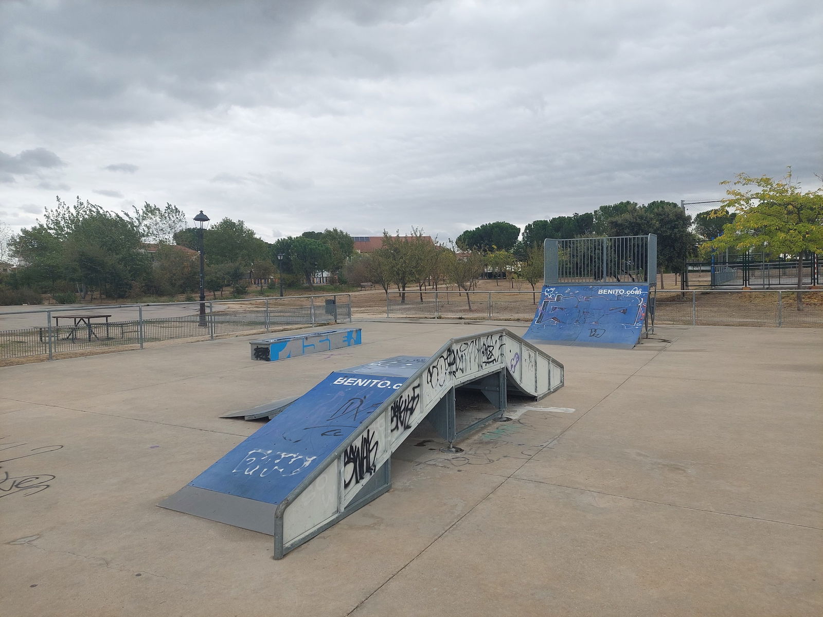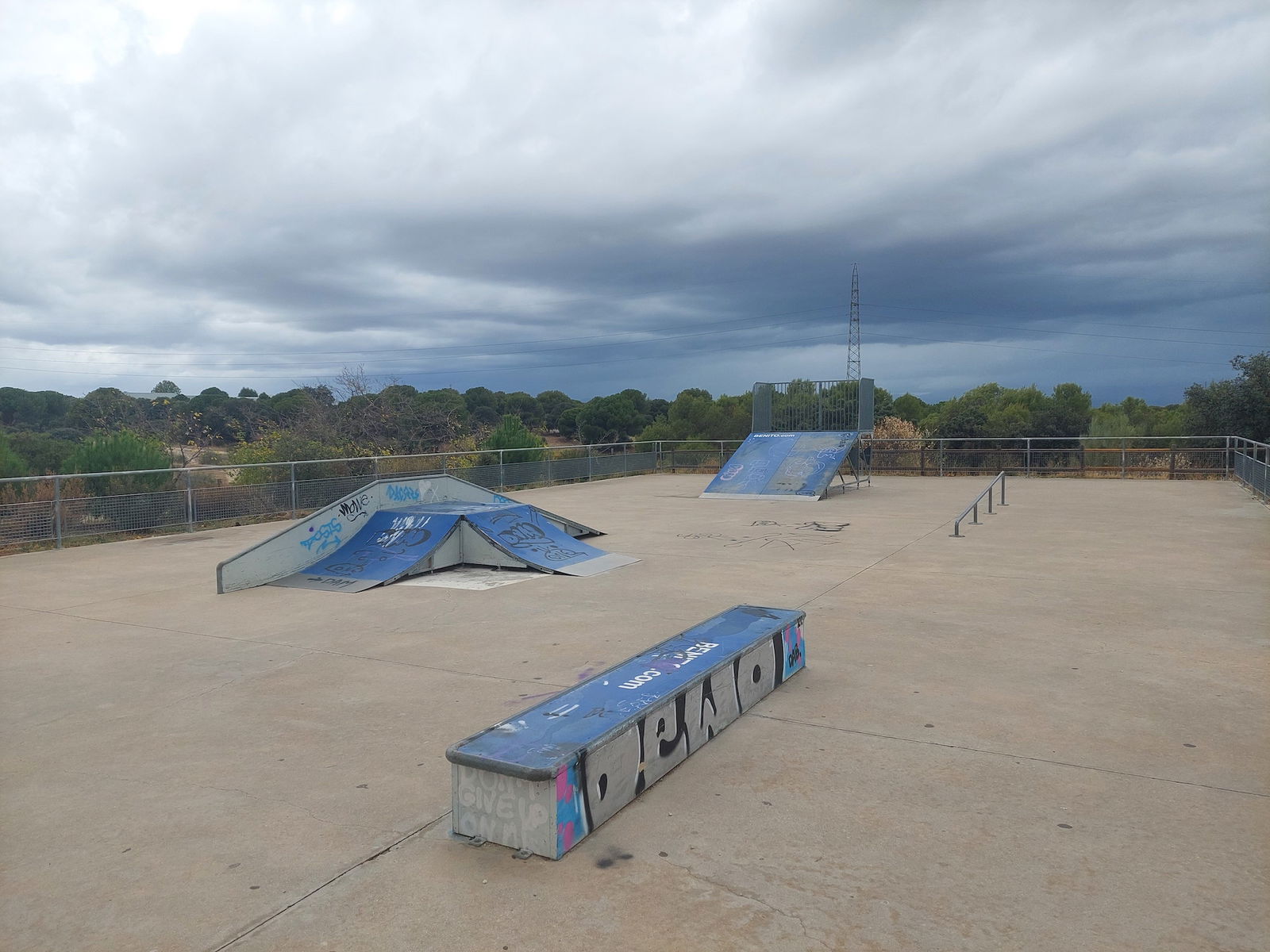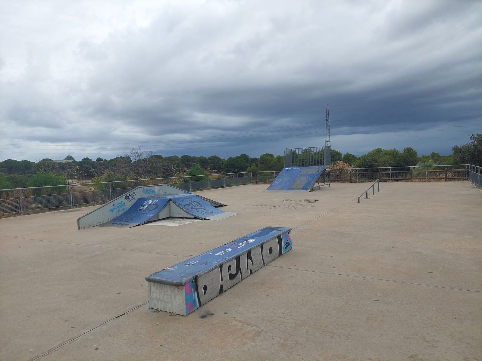 Sevilla La Nueva skatepark is a small park with several basic skateboarding obstacles in a back and forth setup.