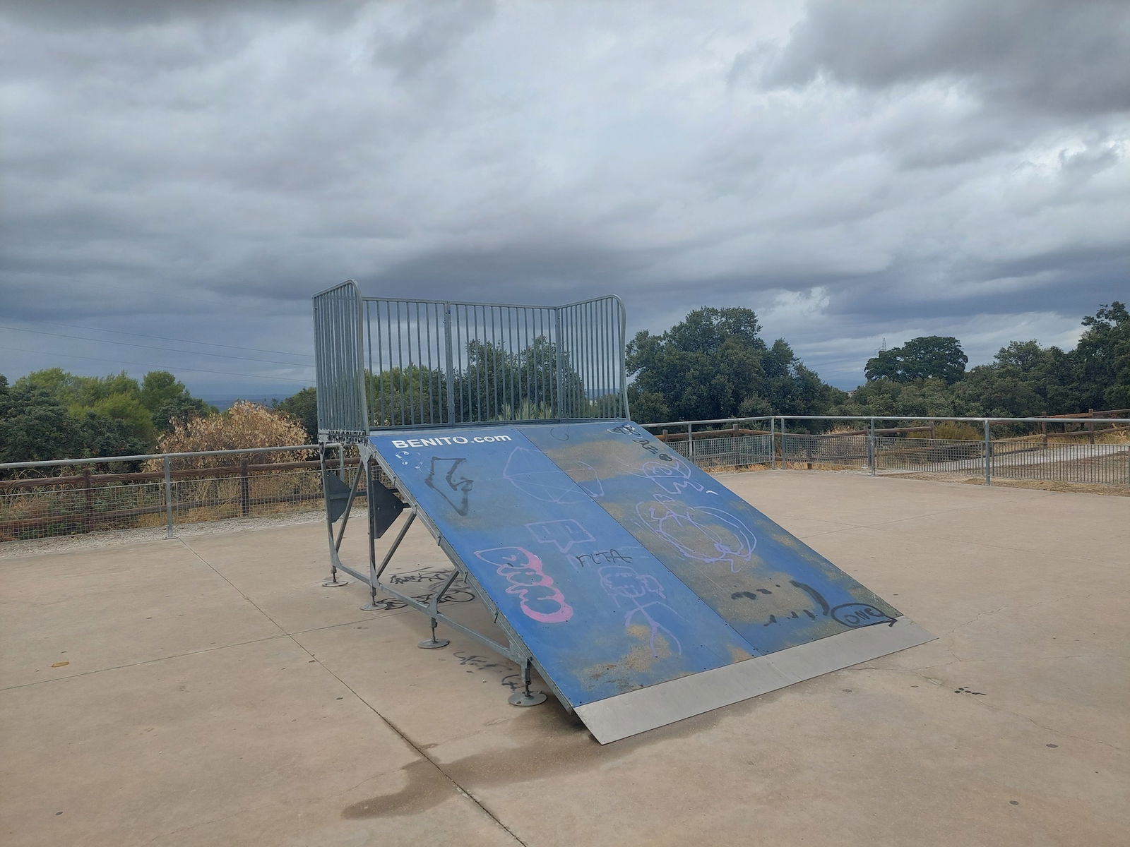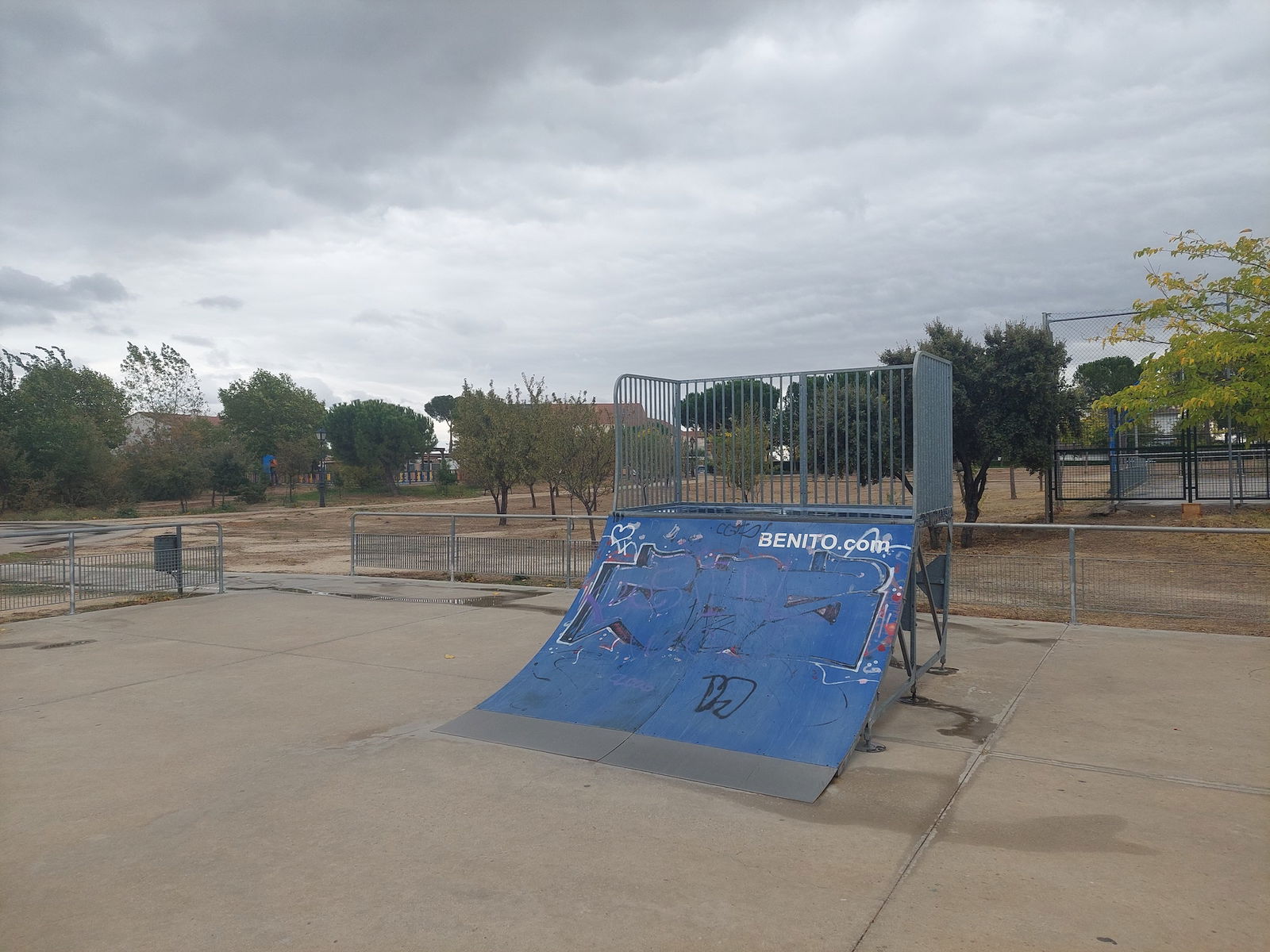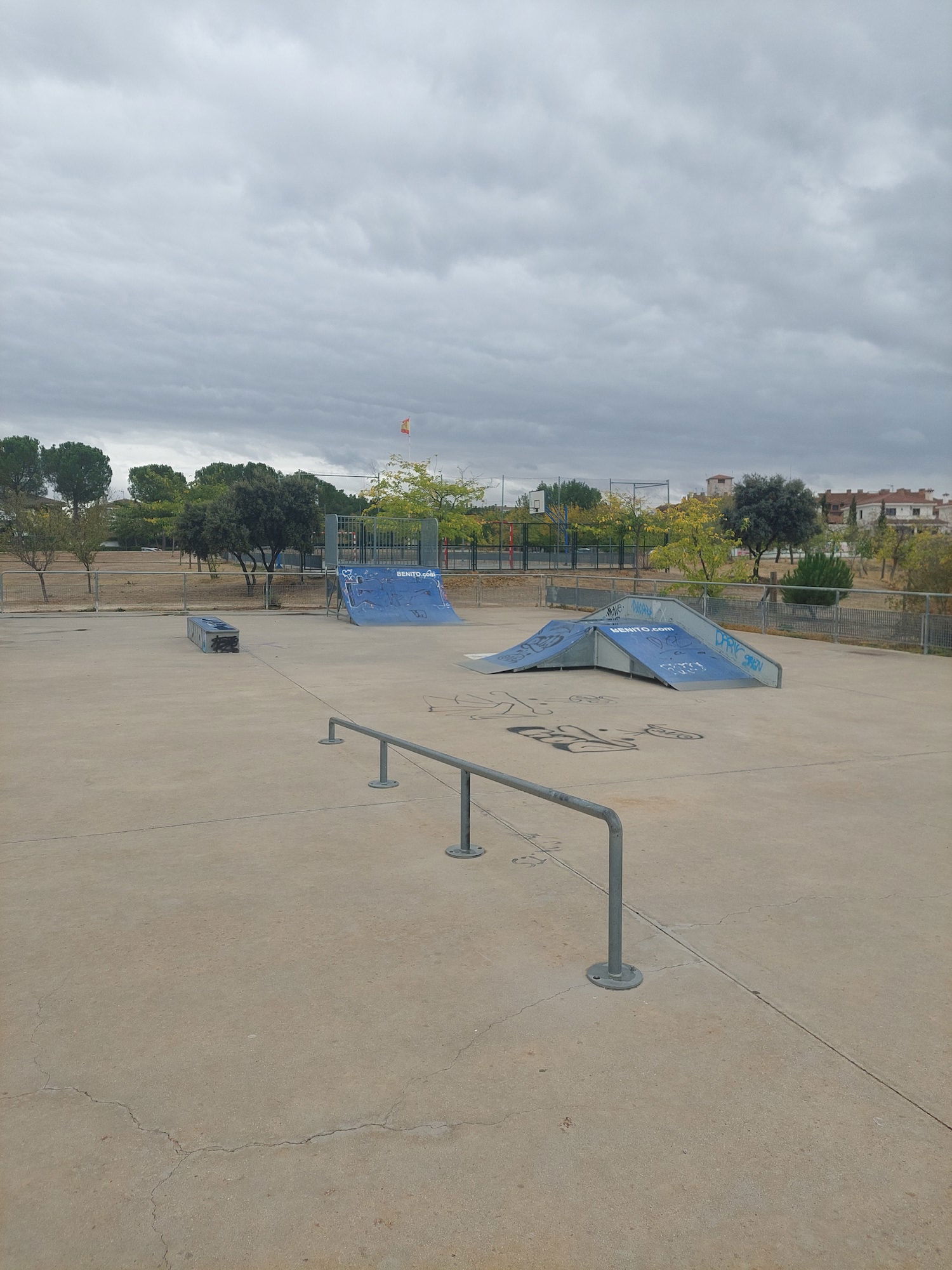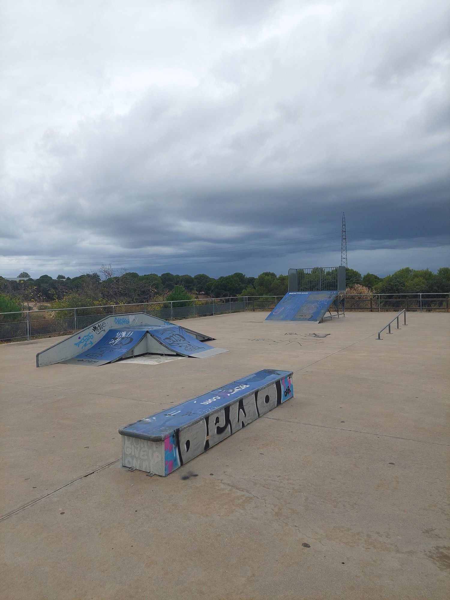 Sevilla La Nueva skatepark is a small park with several basic skateboarding obstacles in a back and forth setup.