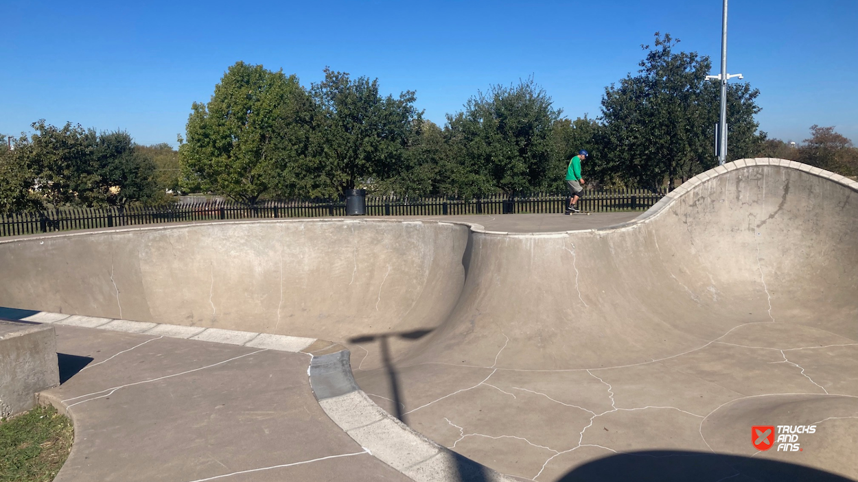 The park is equipped with lighting available from 6 a.m. to 8 a.m. and 5 p.m. to 11 p.m., allowing for early morning and evening sessions. Visitors are encouraged to keep the park clean by disposing of trash in the provided receptacles; failure to do so may result in temporary closures. A recycling bin for aluminum and plastics is located at the south end near the gate.