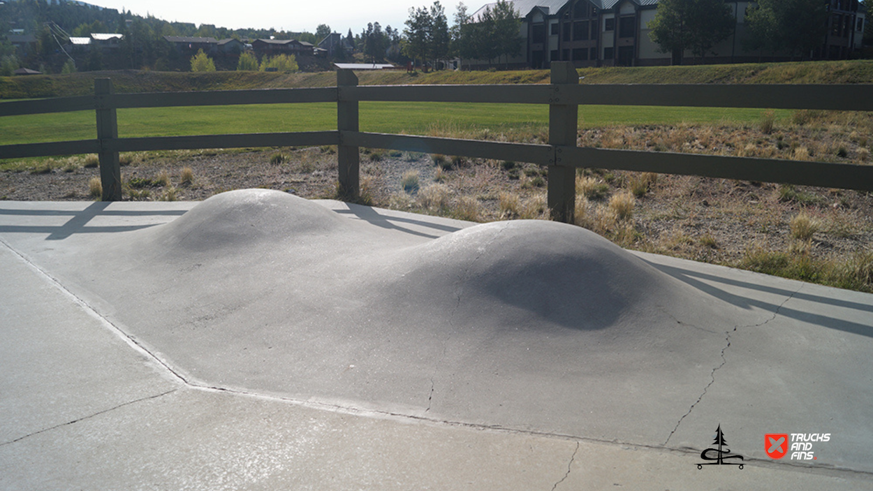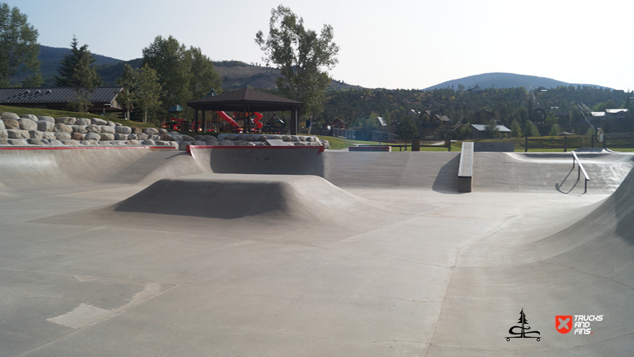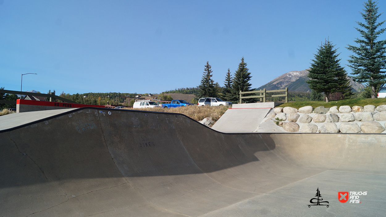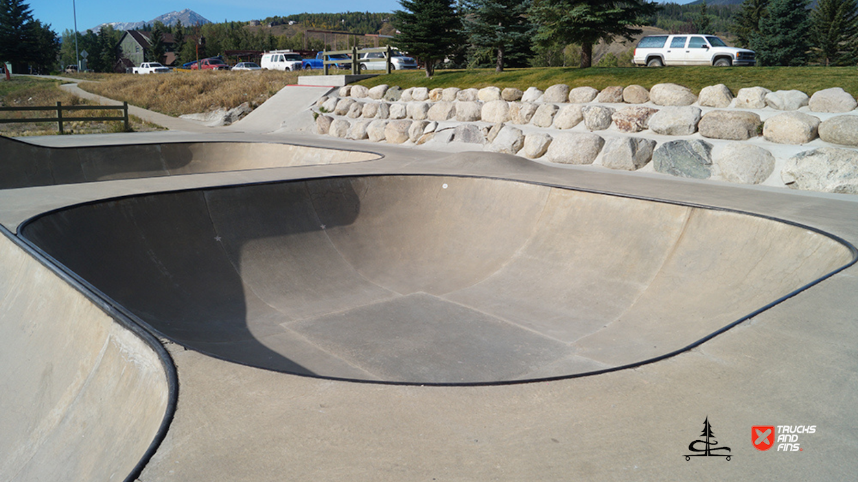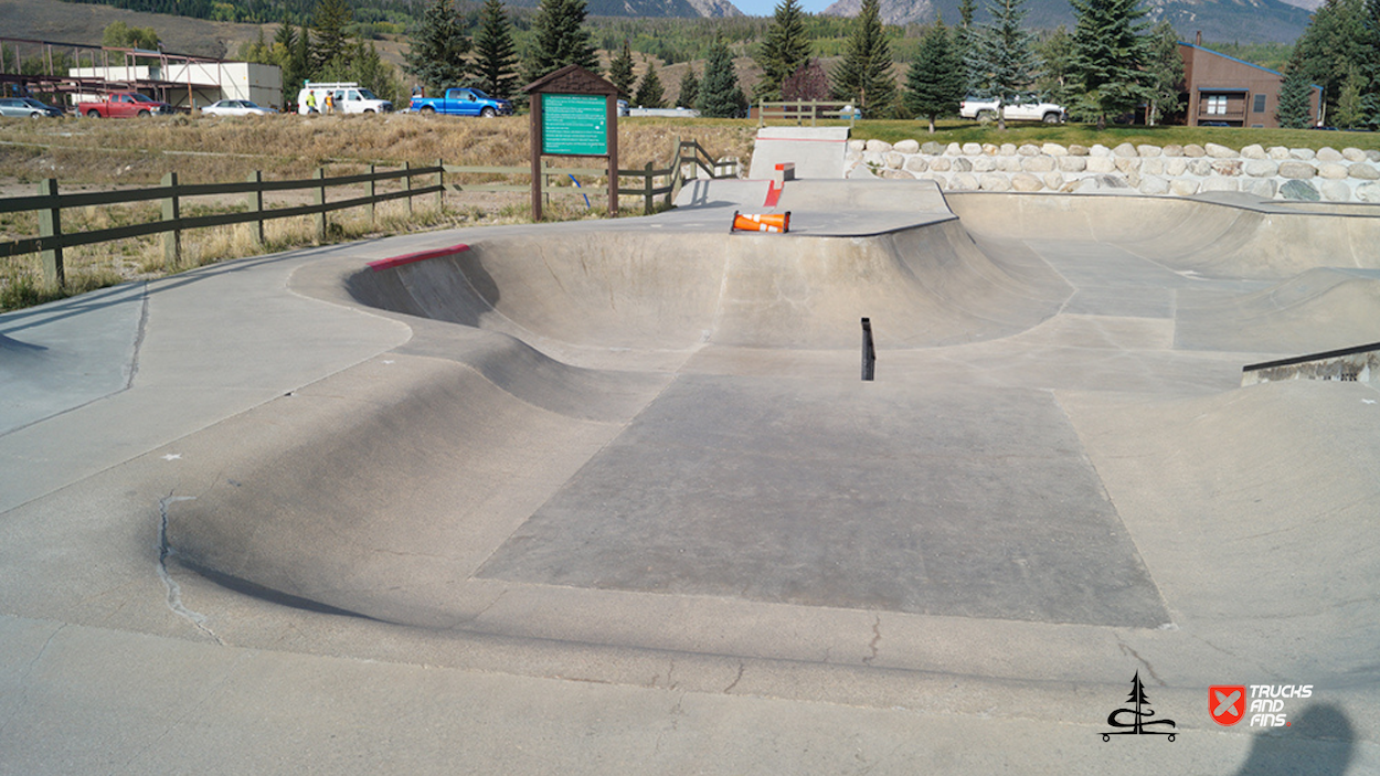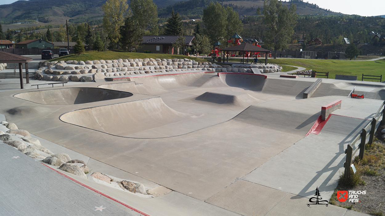 The Silverthorne Skatepark, located at 590 Rainbow Drive in Silverthorne, Colorado, is a well-loved cement skatepark situated within Rainbow Park. Built by Team Pain, it offers around 20,000 square feet of skating surface, featuring a range of obstacles, including a large bowl with smooth transitions, quarter-pipes, a pyramid box, rails, ledges, and other street-style elements. The park’s unique layout and bright red accents make it a recognizable spot for both local and visiting skaters.