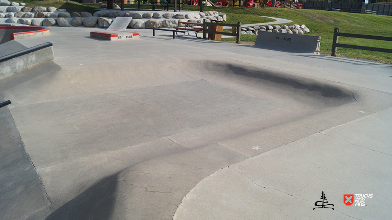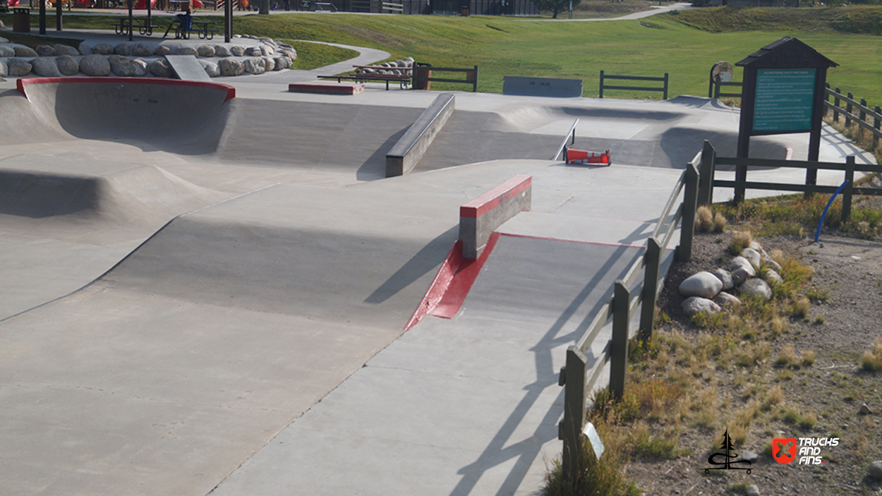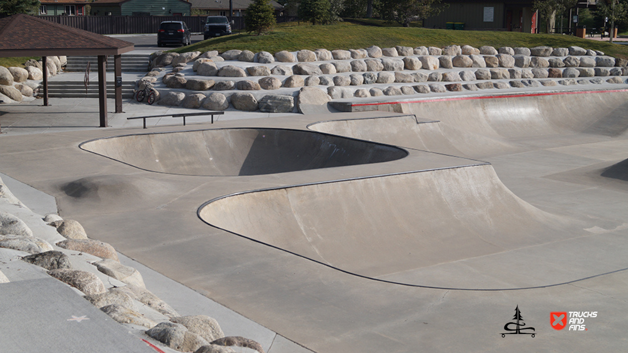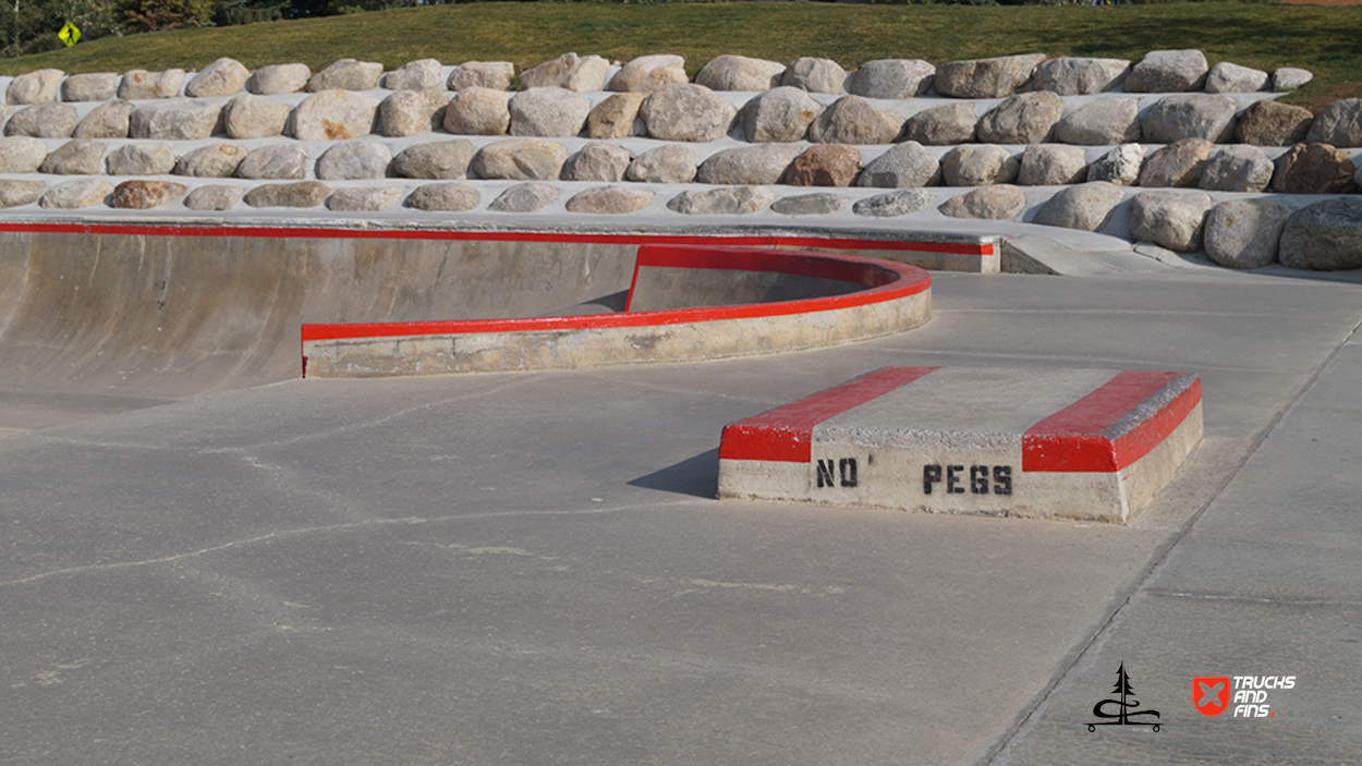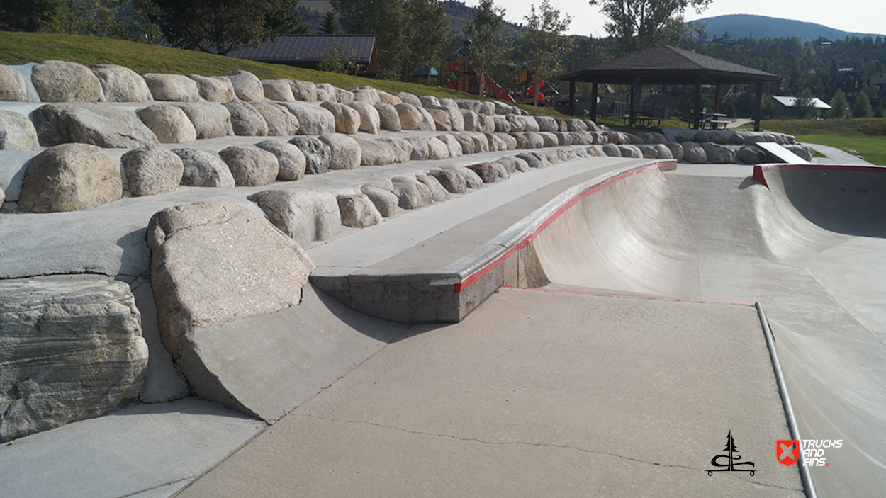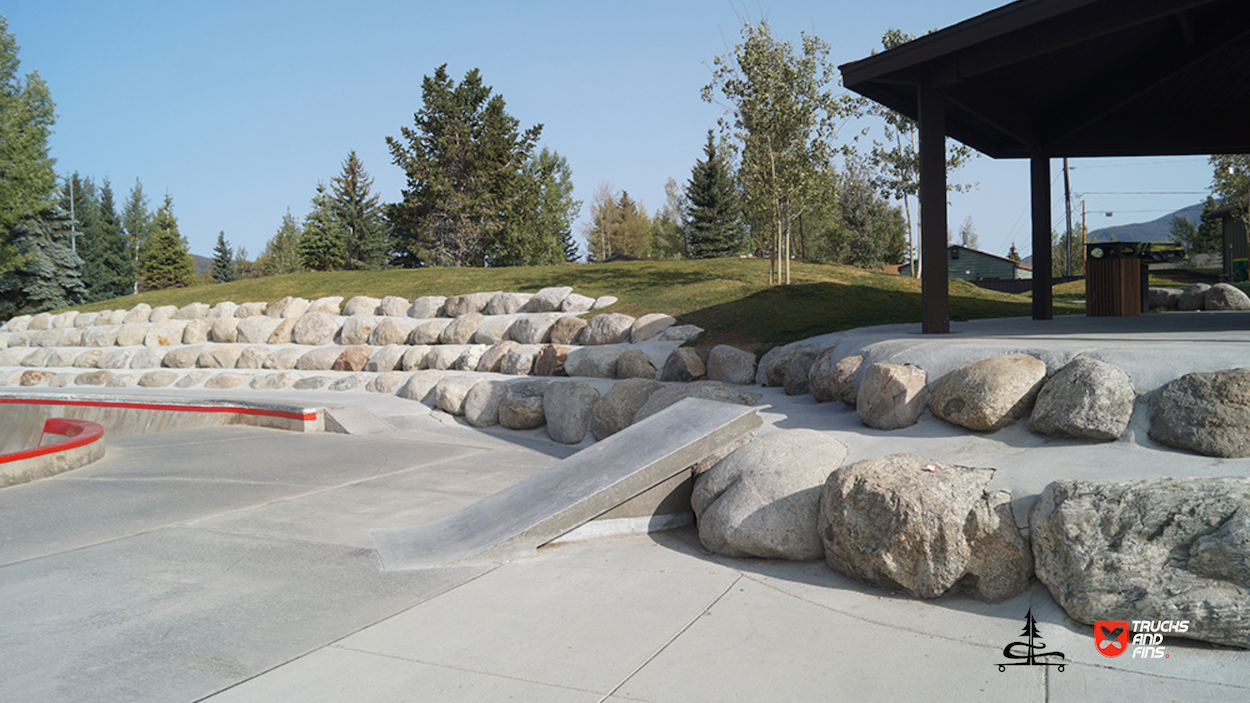 The Silverthorne Skatepark, located at 590 Rainbow Drive in Silverthorne, Colorado, is a well-loved cement skatepark situated within Rainbow Park. Built by Team Pain, it offers around 20,000 square feet of skating surface, featuring a range of obstacles, including a large bowl with smooth transitions, quarter-pipes, a pyramid box, rails, ledges, and other street-style elements. The park’s unique layout and bright red accents make it a recognizable spot for both local and visiting skaters.
