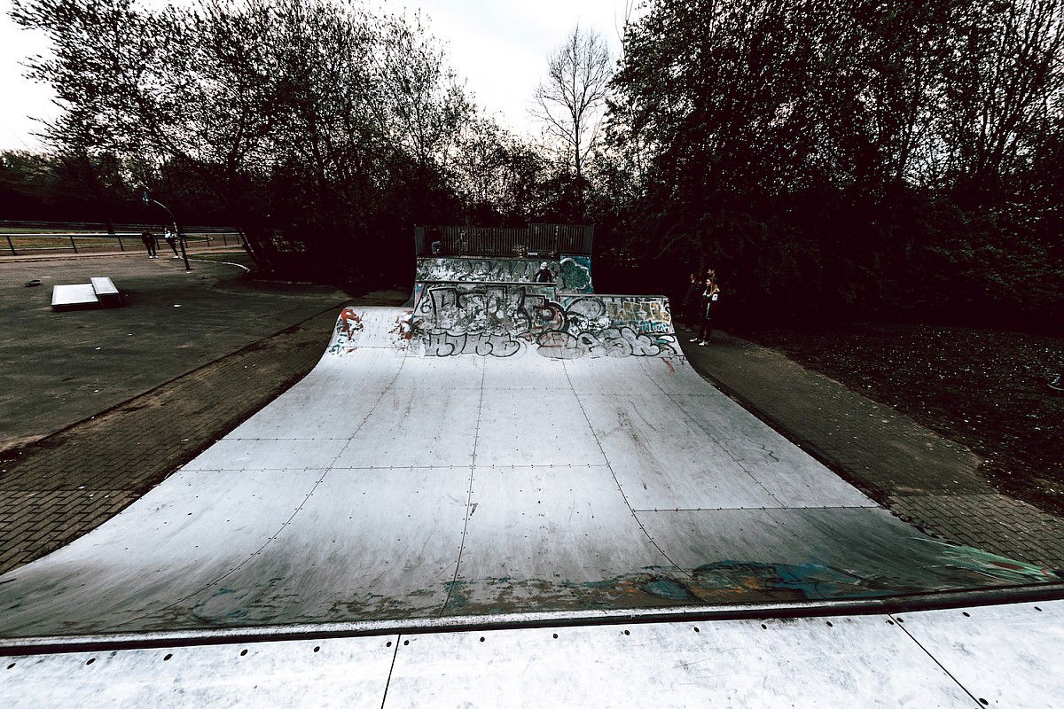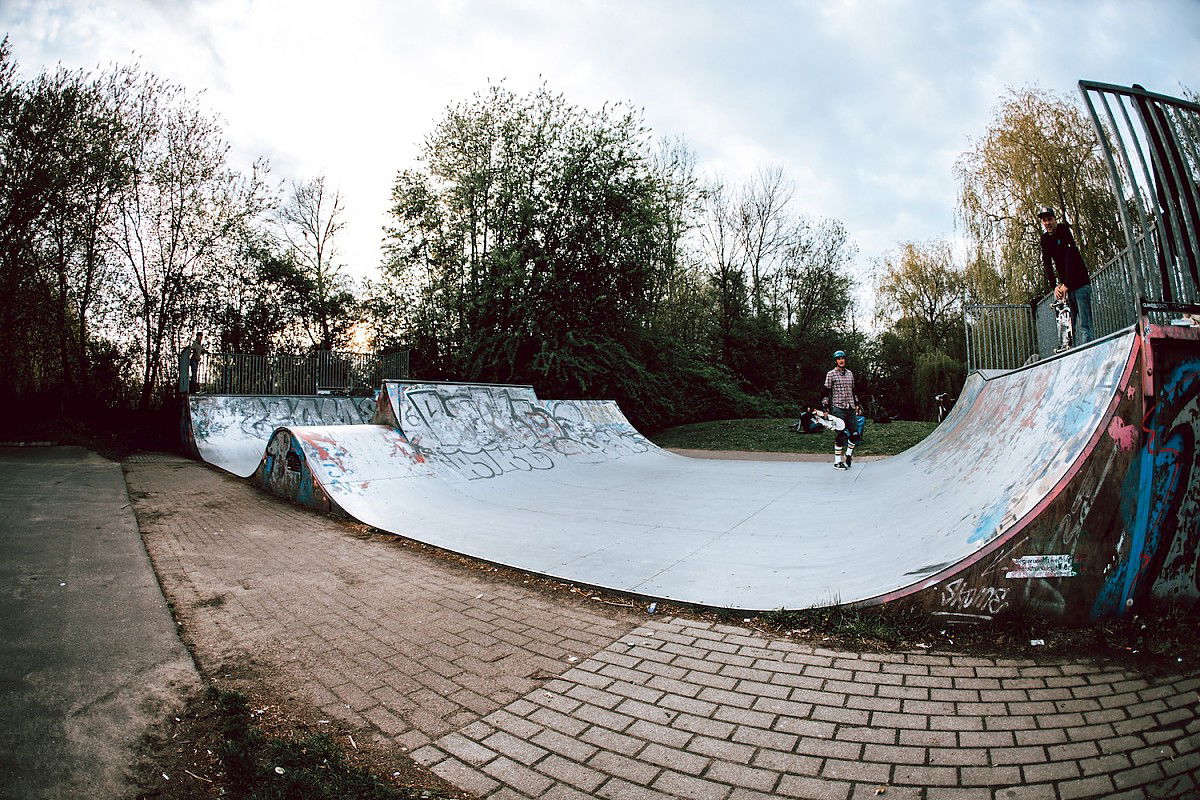 Skatepark Hamburg Schnelsen Wassermannpark features a miniramp with spine.