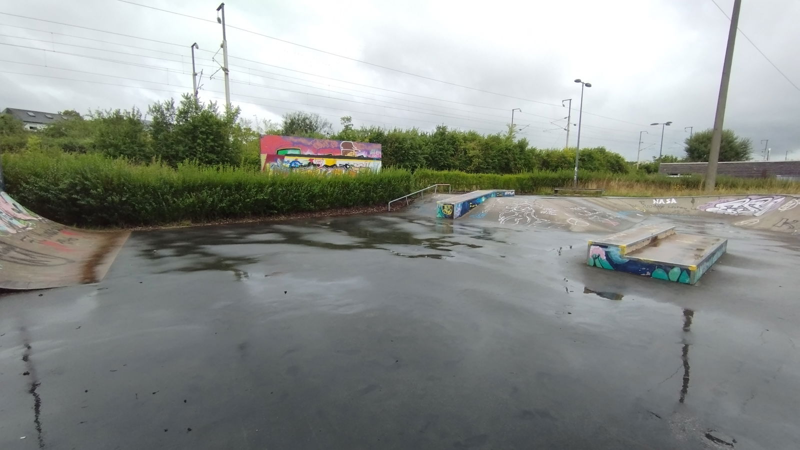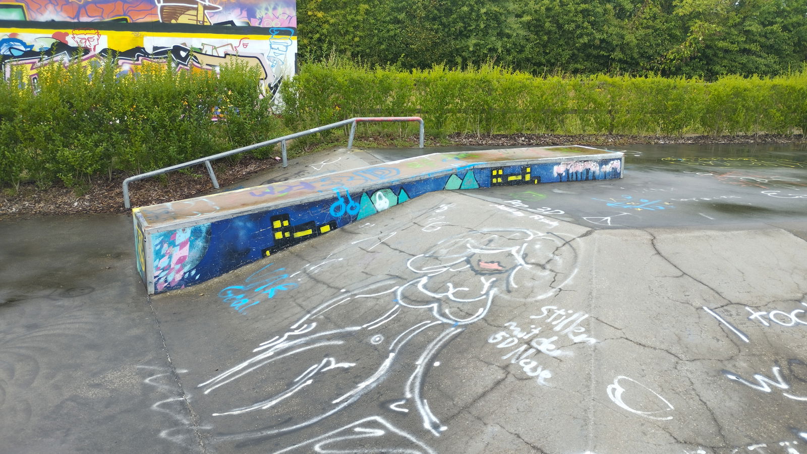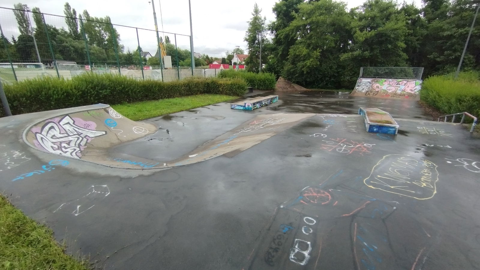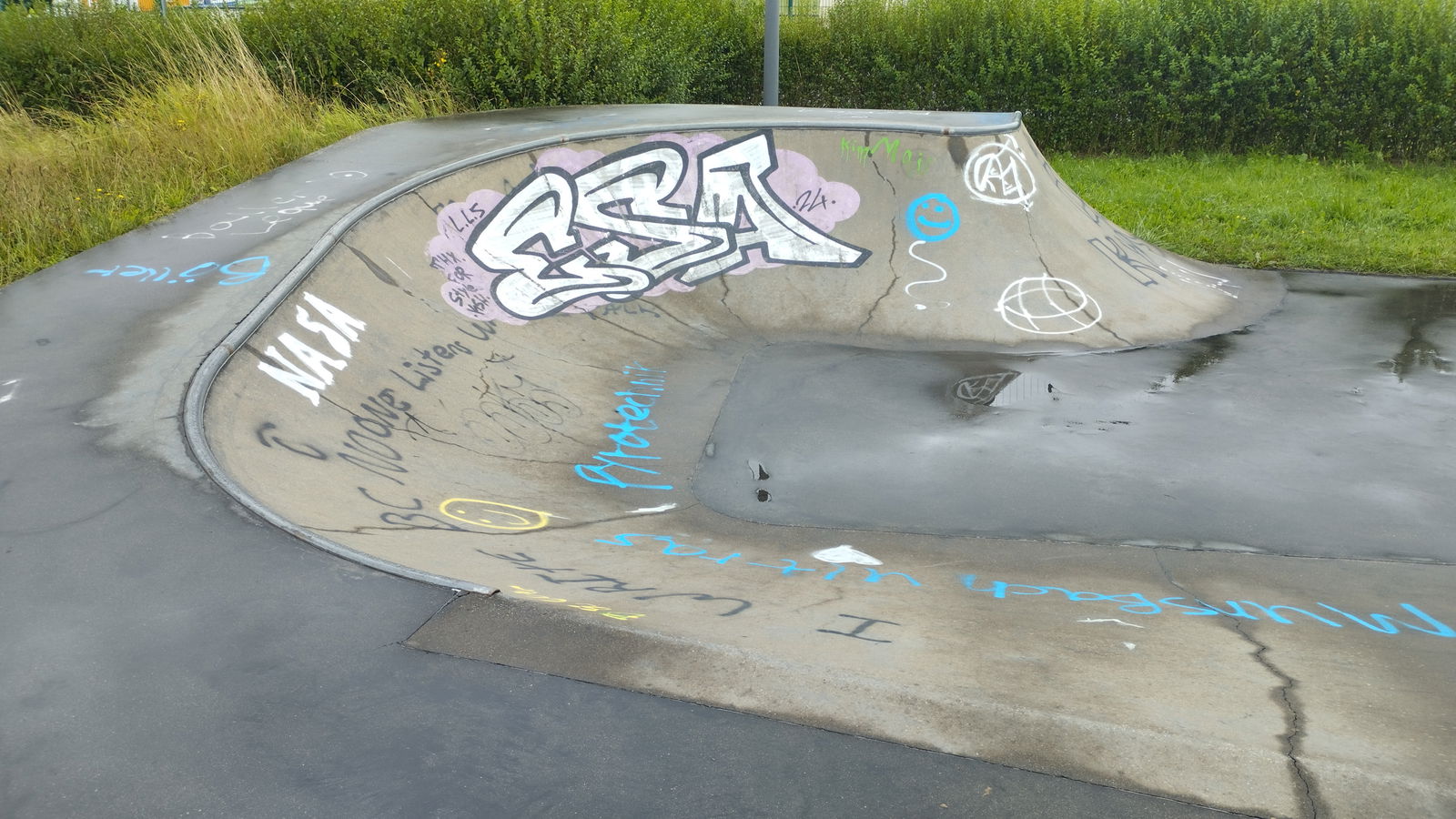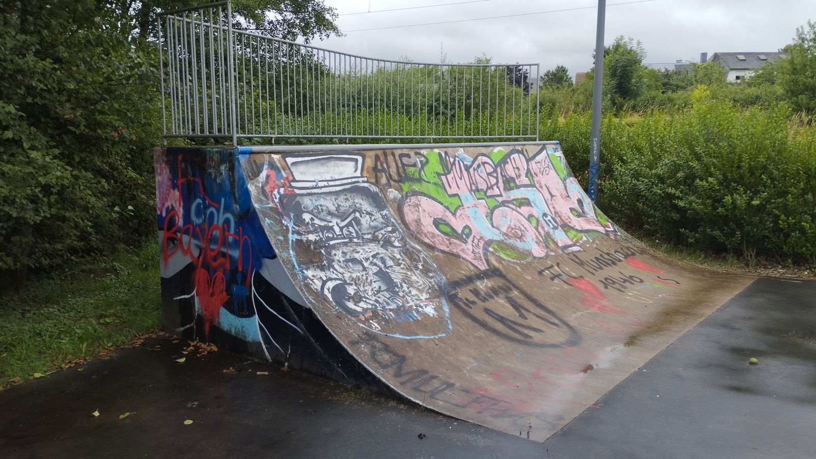Skatepark Münsbach is a concrete park featuring an open bowl connected to a small street section.