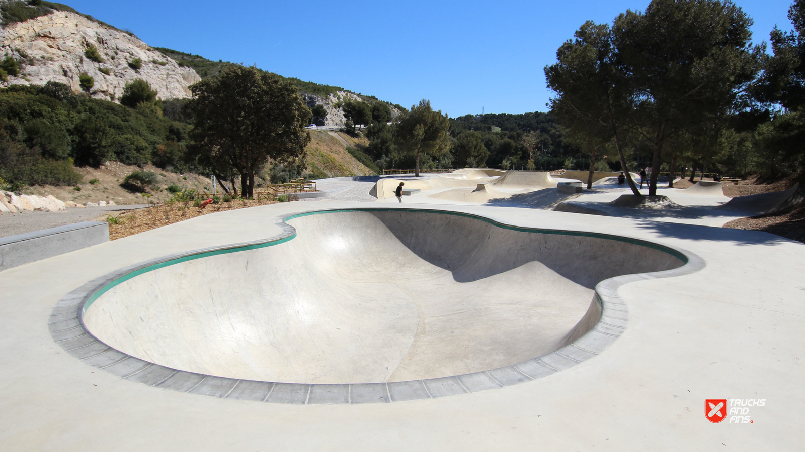 The skatepark is situated at the Complexe Sportif de Carry-le-Rouet, 1 Allée des Sports, Quartier de la Loge, 13620 Carry-le-Rouet, France. It is open to the public year-round and offers amenities such as a refreshment area, restrooms, and parking facilities. The design incorporates the existing pine trees on the site, creating an organic and dynamic layout that enhances the landscape's value. The park's undulating forms and yellow-colored waves have earned it the nickname "Place des Dunes."
