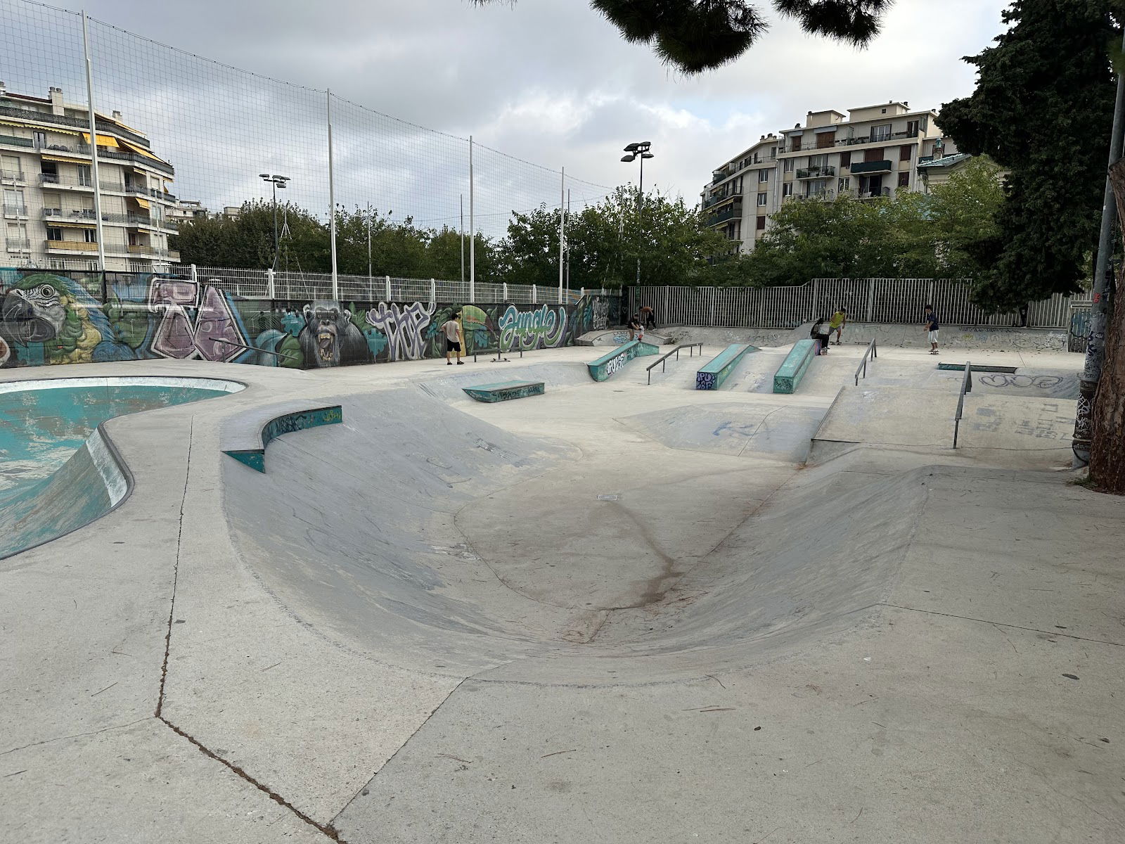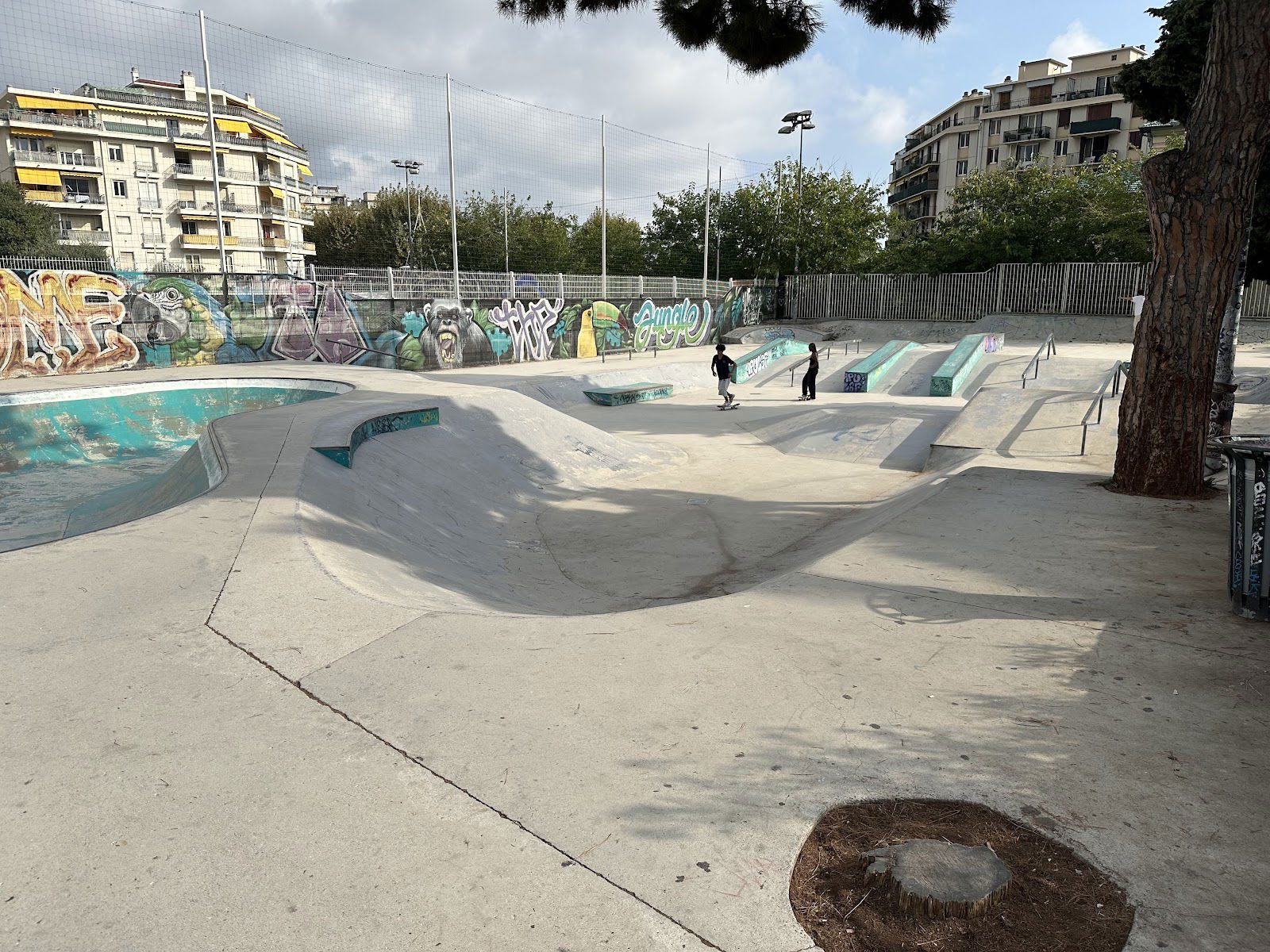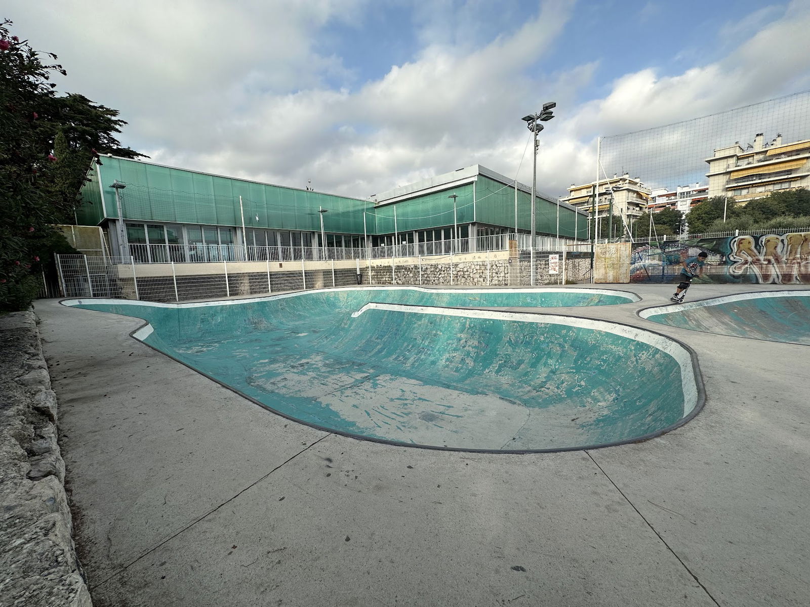 Skatepark de Falicon is a concrete park featuring a large bowl, one small bowl, and a street area.