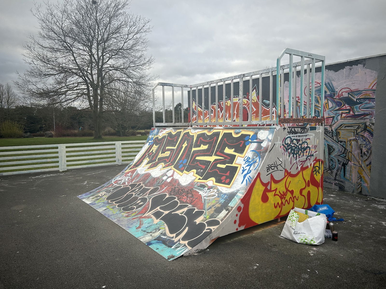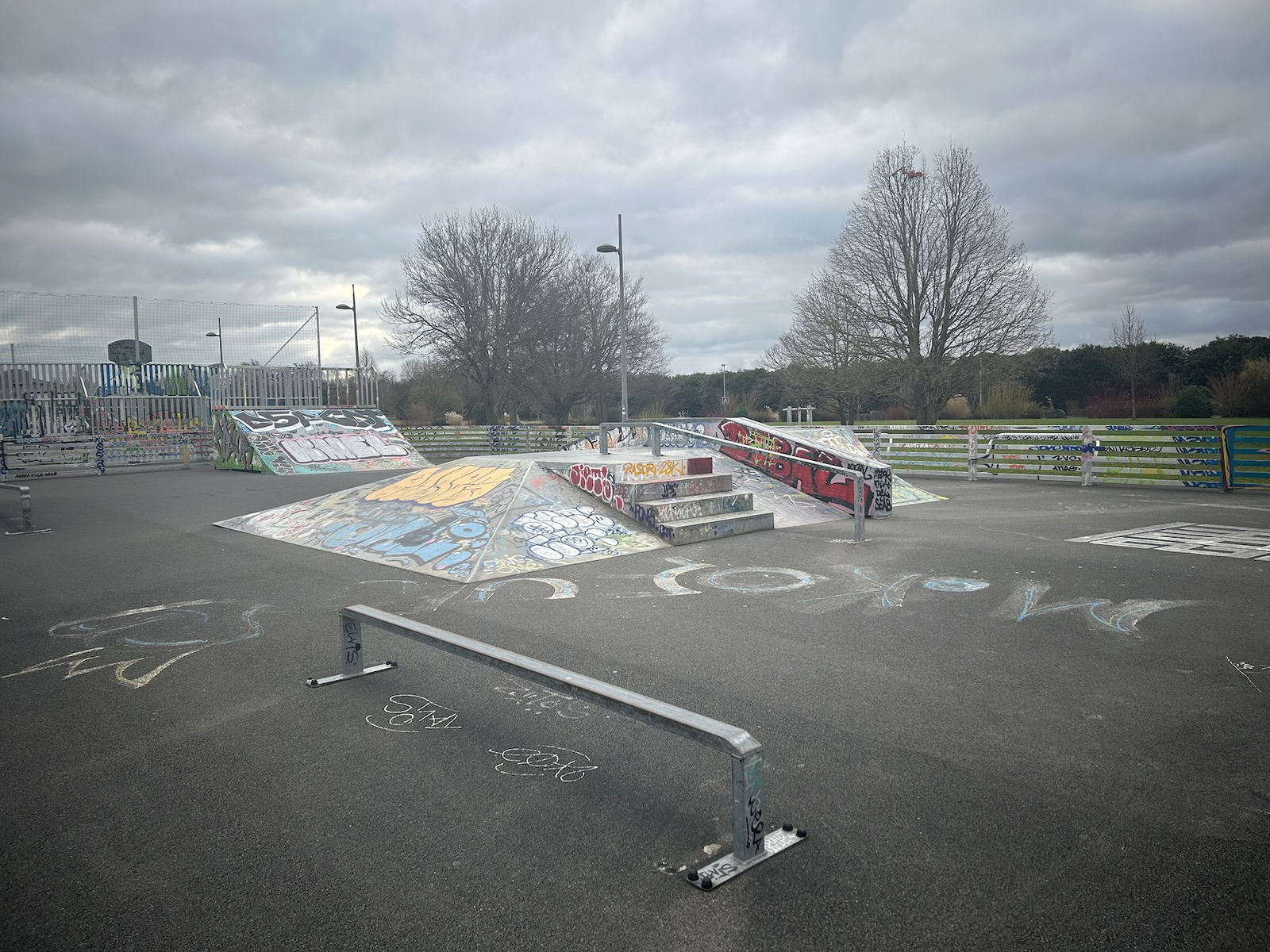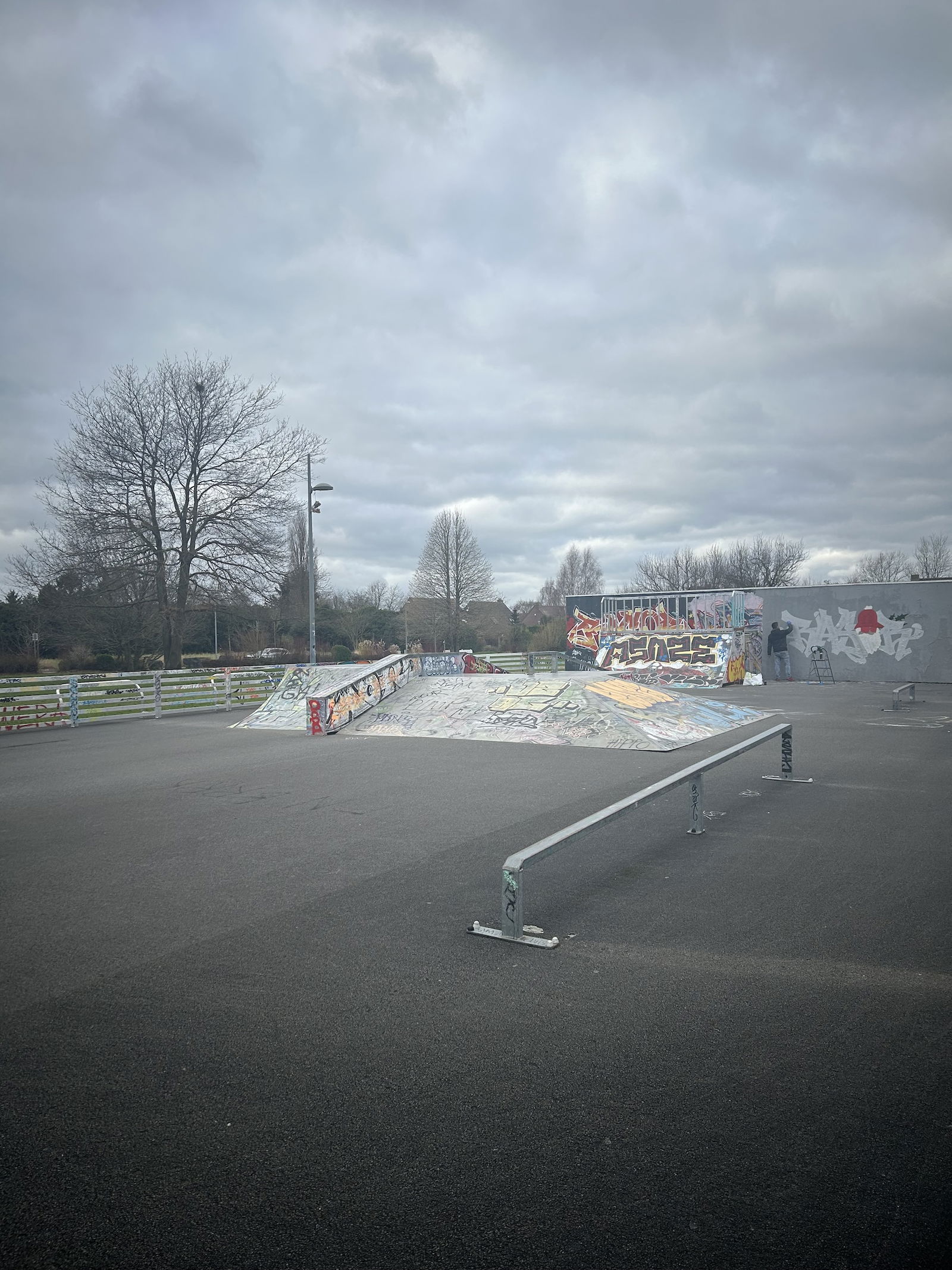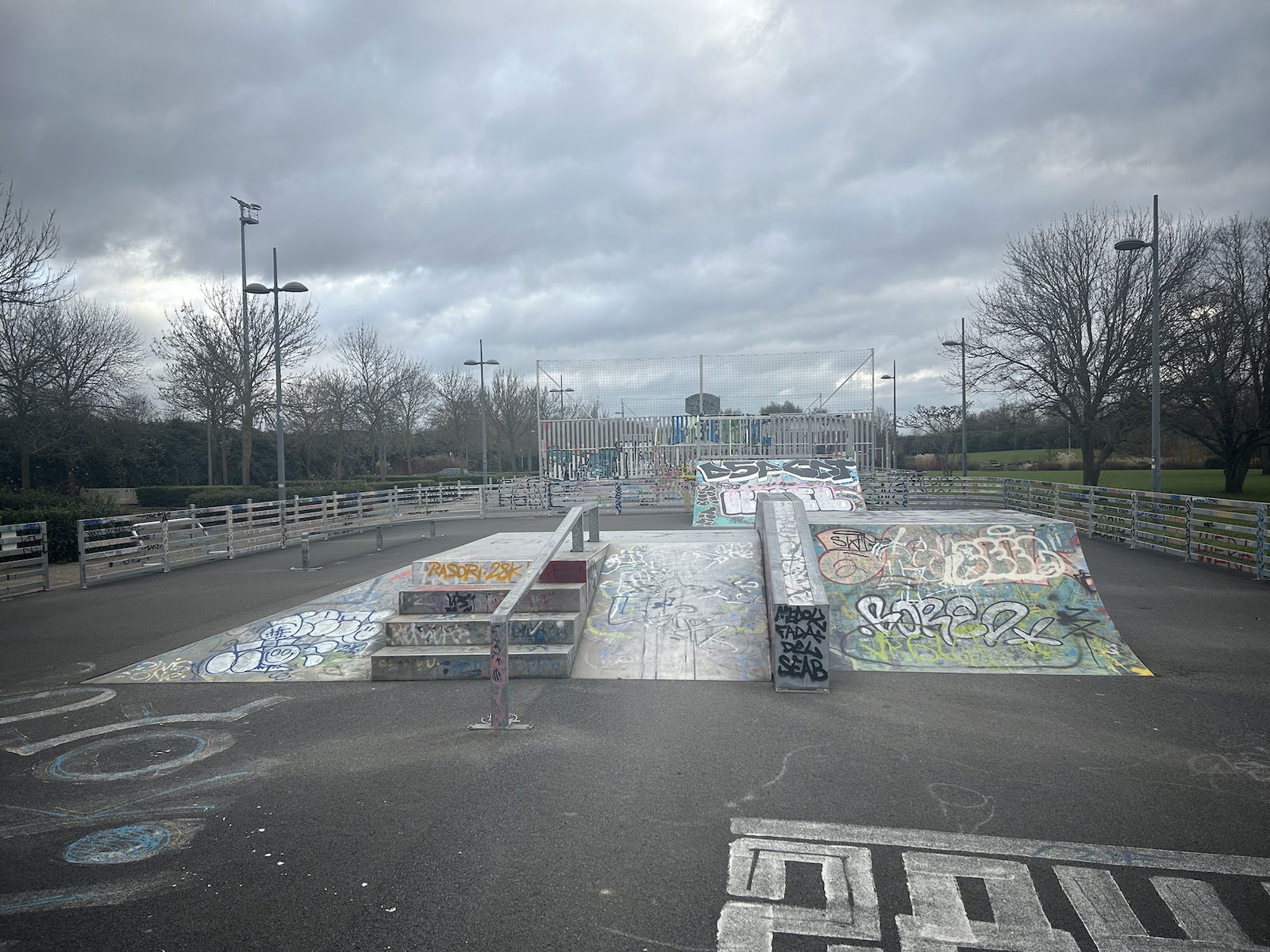 Skatepark de Lezennes is made up of a back and forth run with a quarter pipe and bank on the sides of a funbox. The skatepark has lights.