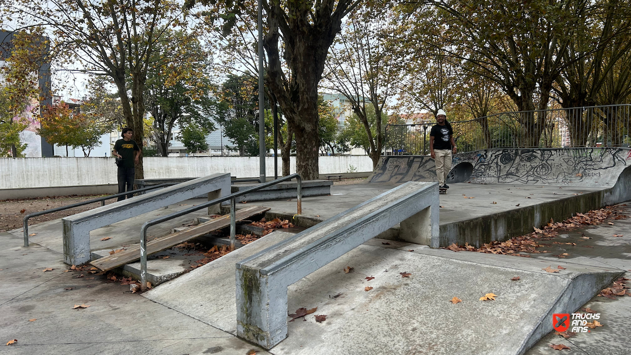 The park was built at an investment of over €54,000.Leiria’s skatepark consists of obstacles designed for different difficulty levels, allowing skaters to progress as they practice. Key features include ramps, stairs, quarter-pipes, mini-halfpipes, deltas, rails, and curbs. The variety of obstacles accommodates both beginners and experienced skaters, creating an inclusive environment for all levels.