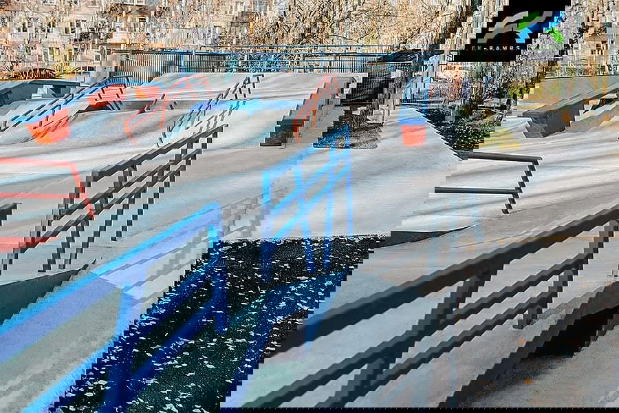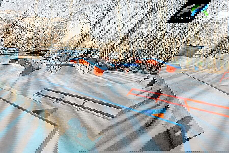 Skhodnya skatepark is a concrete park built by FKramps. The skatepark is made up of an open bowl connected to a street area.