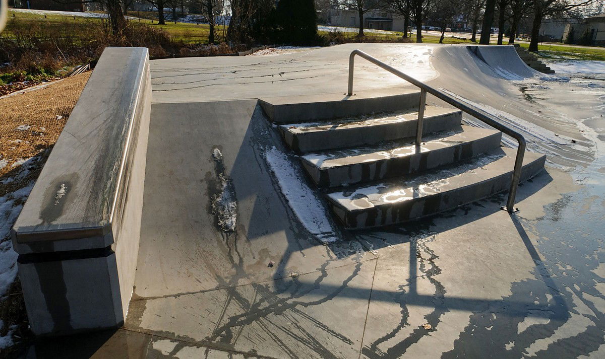 Smallenburg Skatepark, located in Holland, Michigan, is a 10,000-square-foot concrete skate facility built in 2011. The skatepark was designed and constructed by SpohnRanch, a leading company known for its expertise in skatepark development. The design of Smallenburg Skatepark is plaza-style, integrating a variety of street elements like quarter pipes, manual pads, stairs, handrails, ledges, banks, and hubbas. The park's layout offers a smooth and accessible flow, accommodating both beginner and advanced skaters.