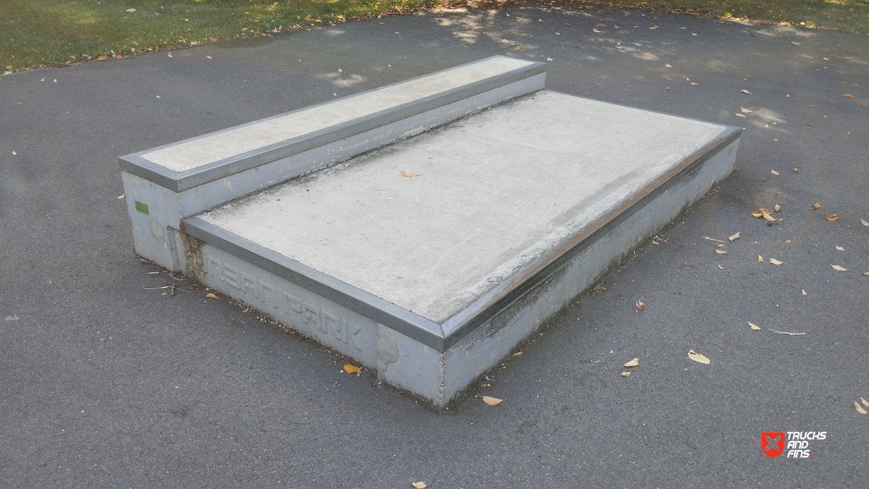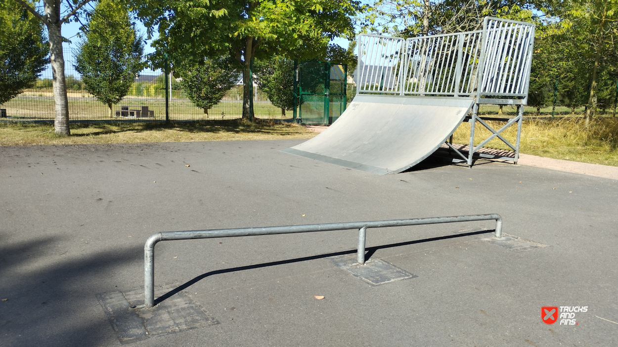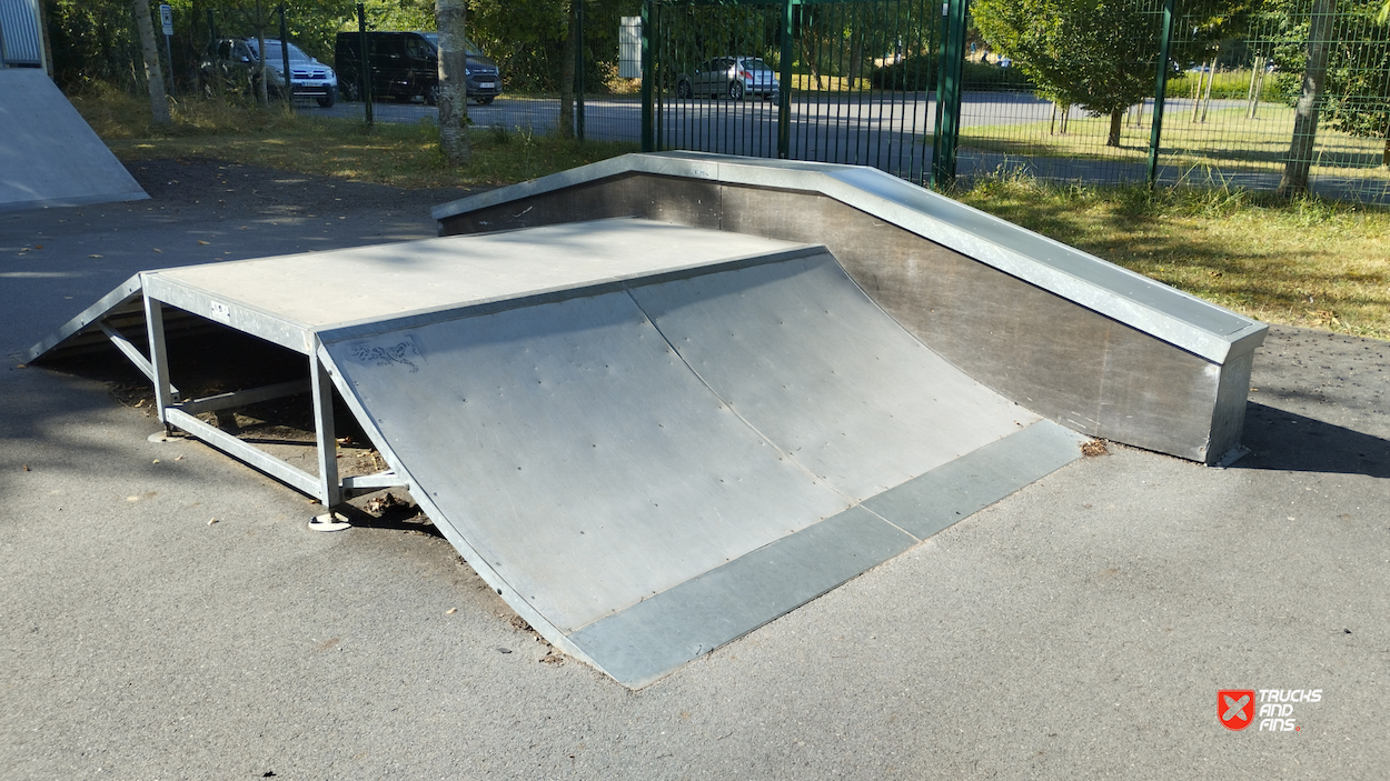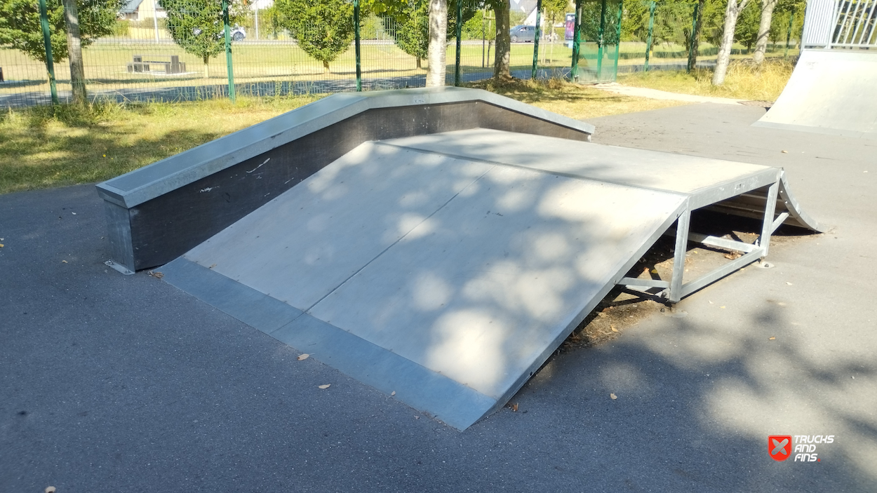 Soliers skatepark is made up of a back and forth run with a quarter pipe and bank on the sides of a funbox.