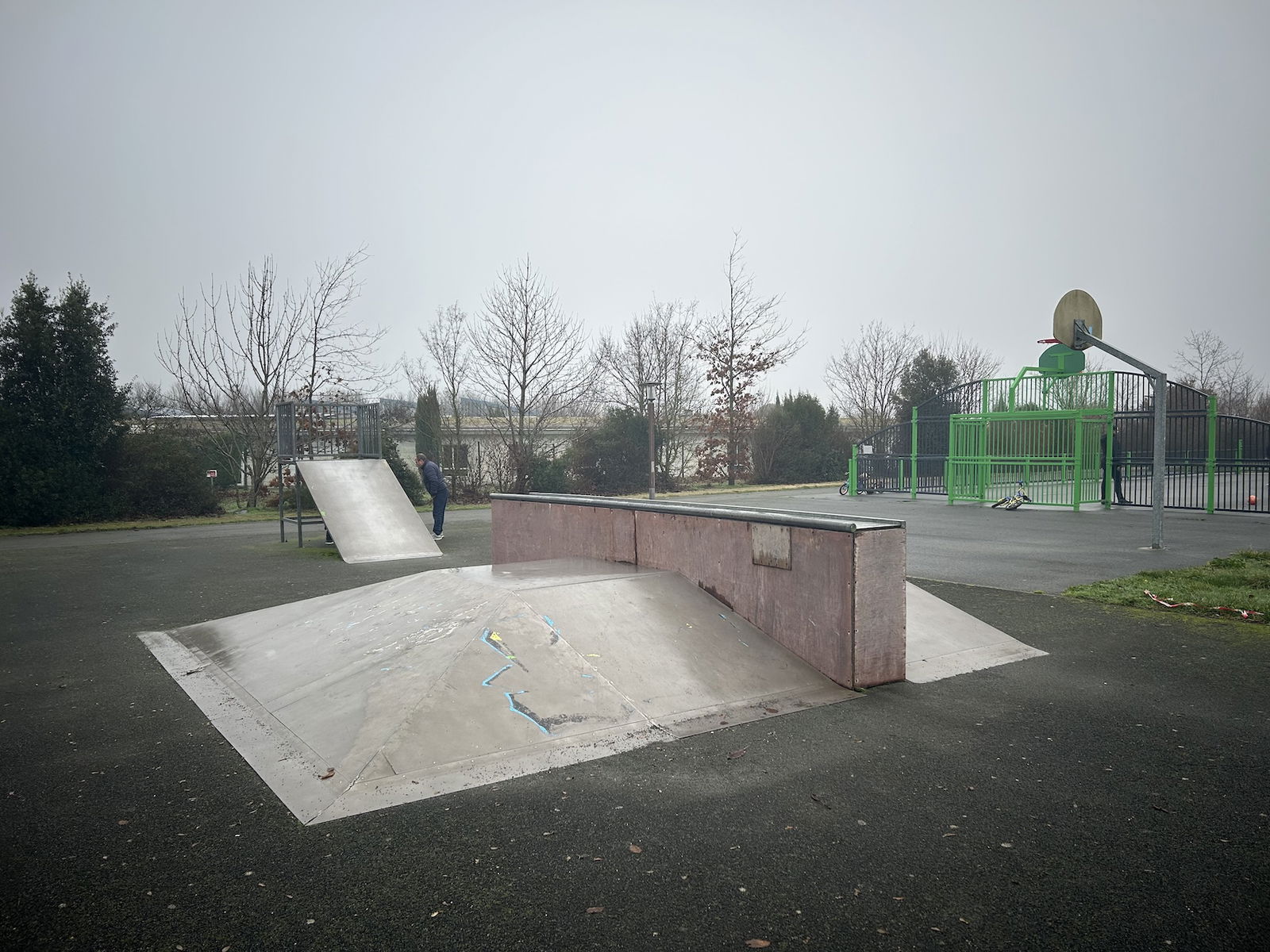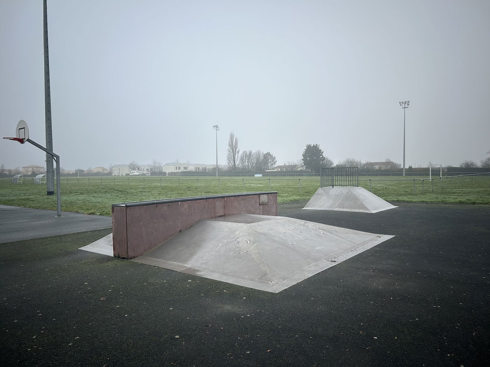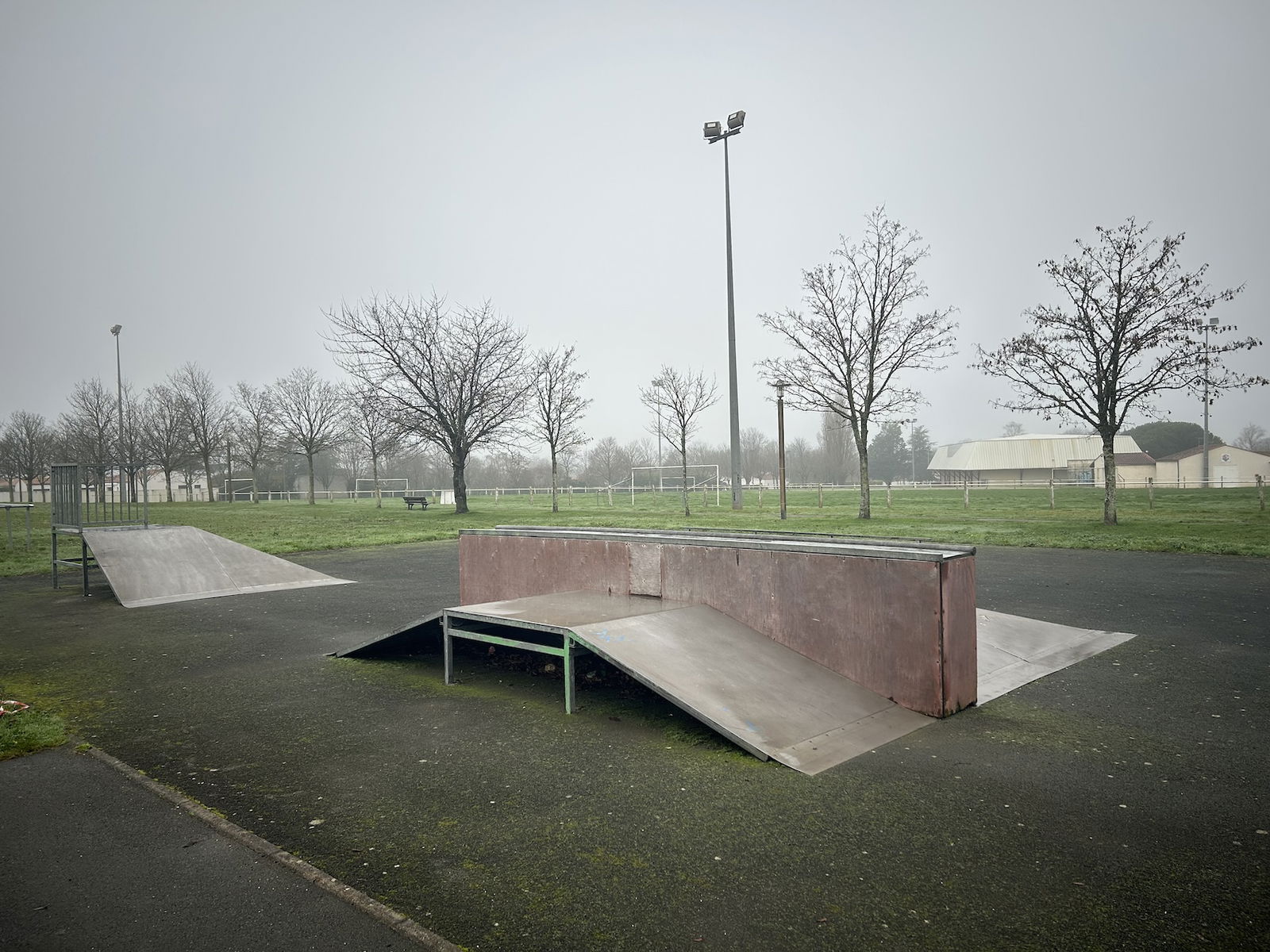 Soubise skatepark is made up of a back and forth run with a quarter pipe and bank on the sides of a funbox.
