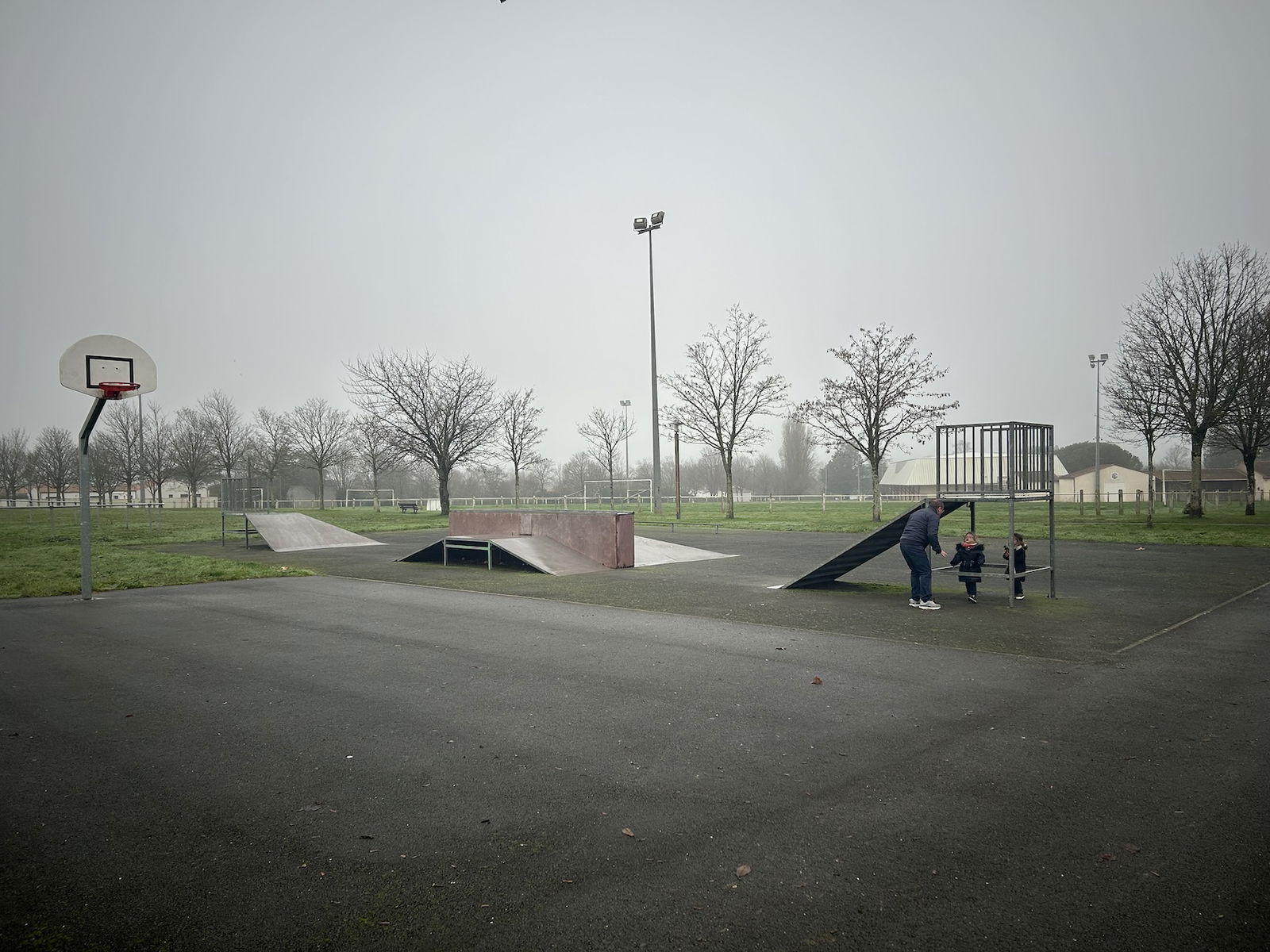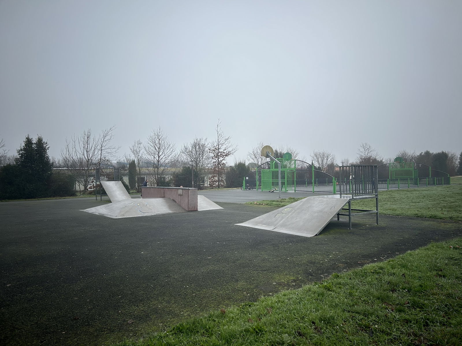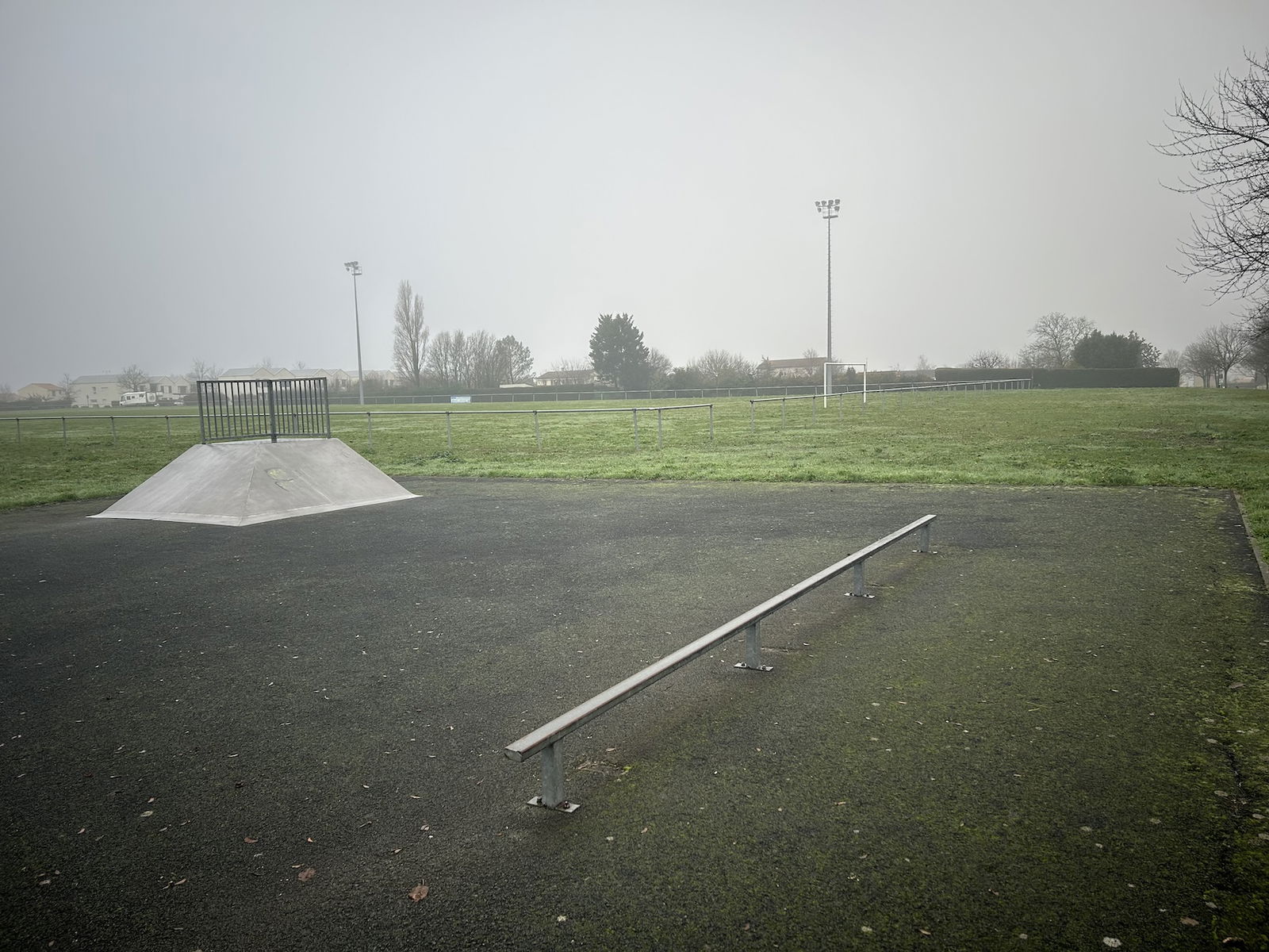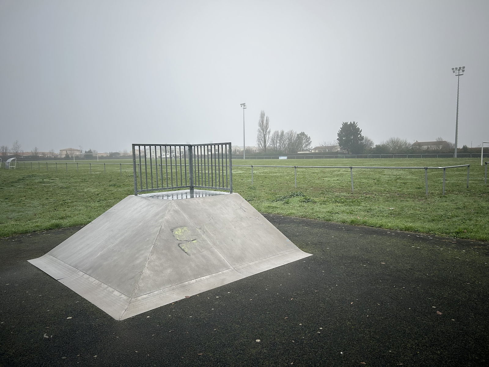Soubise skatepark is made up of a back and forth run with a quarter pipe and bank on the sides of a funbox.