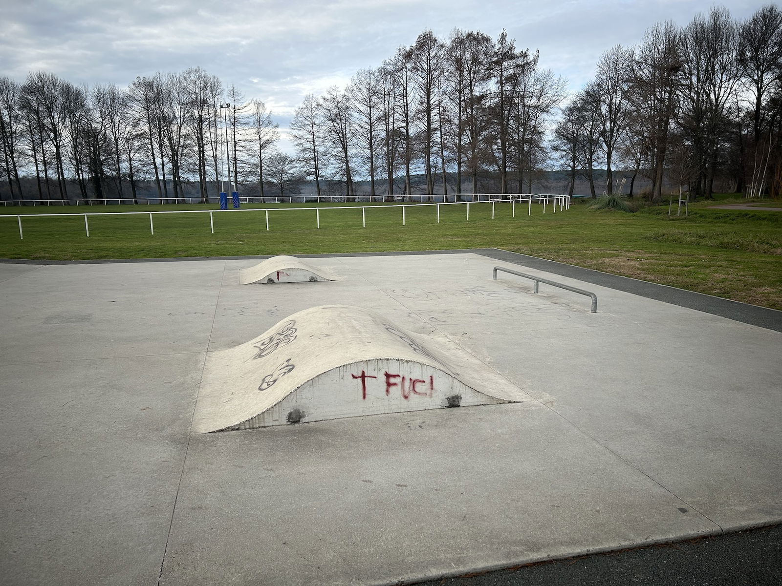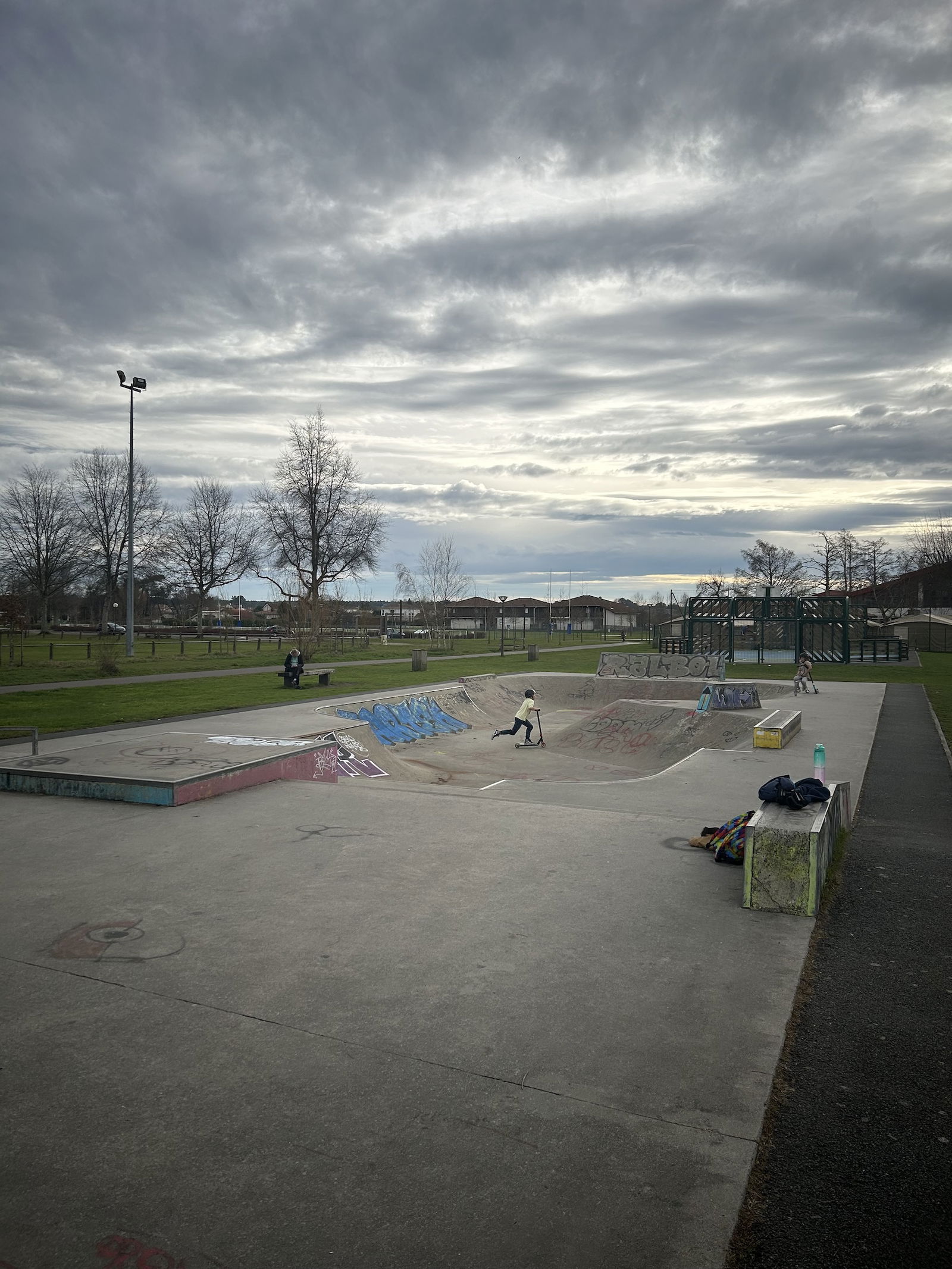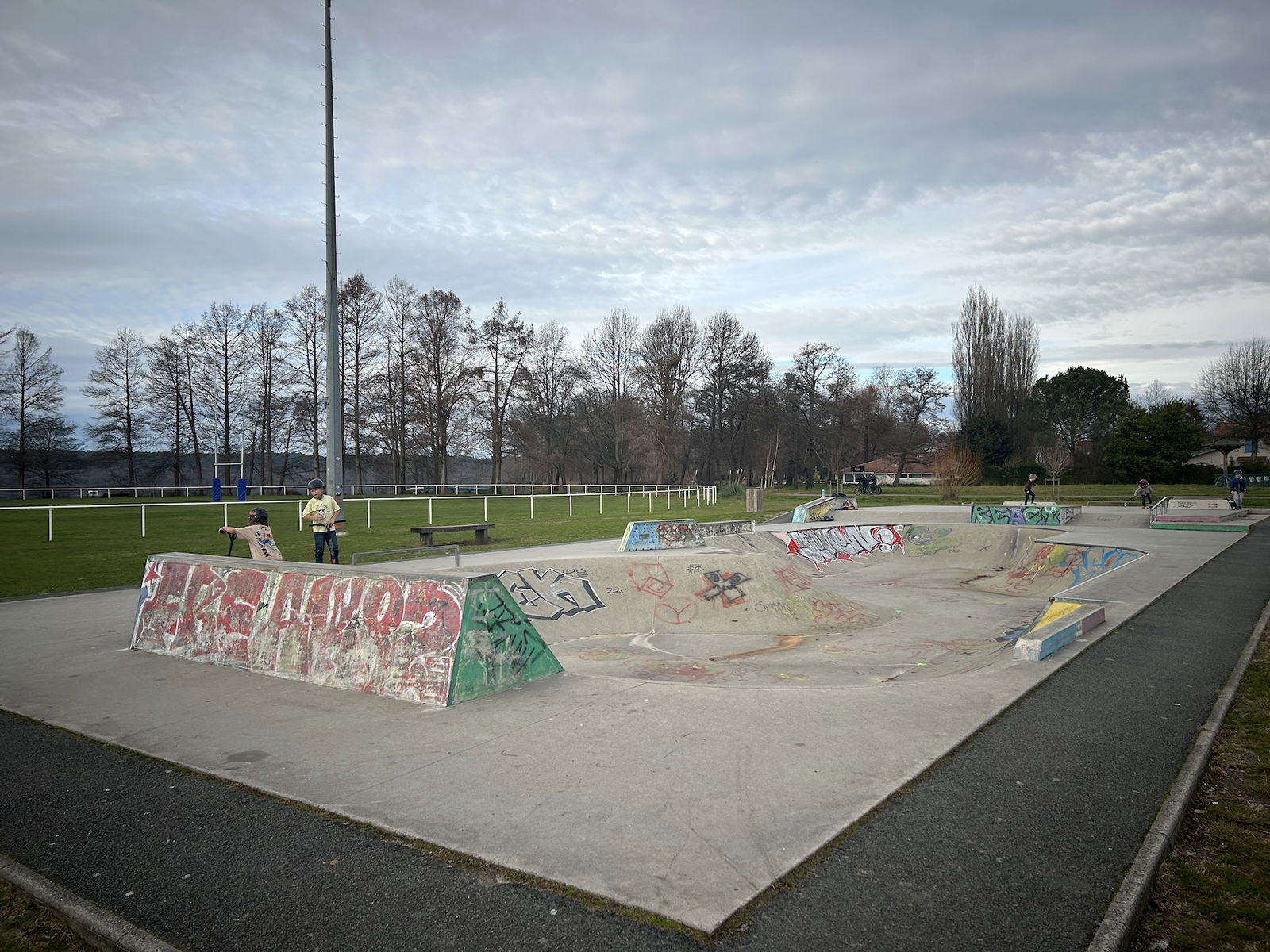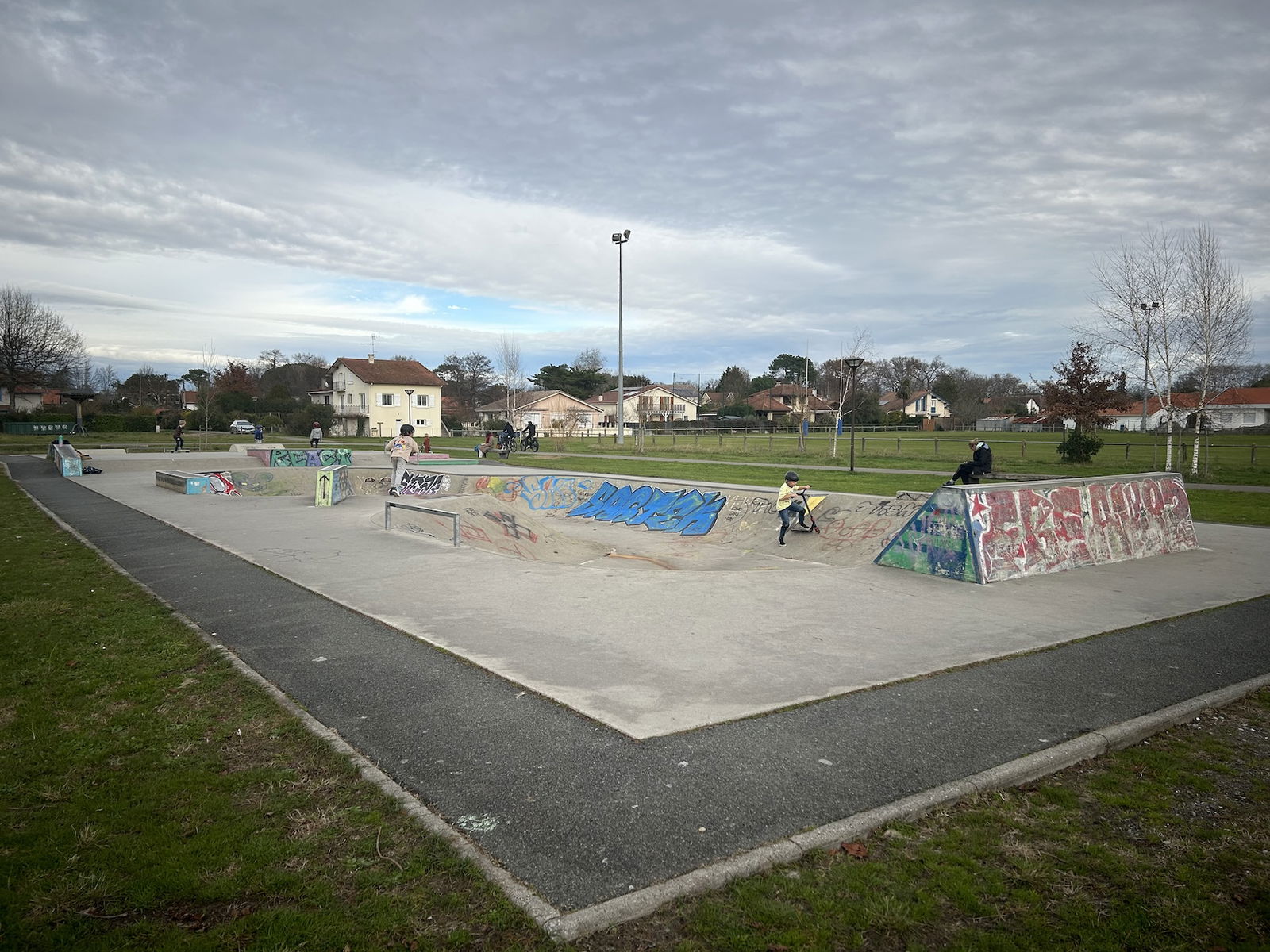 Soustons skatepark is a concrete skatepark featuring a bowl and a small street area.