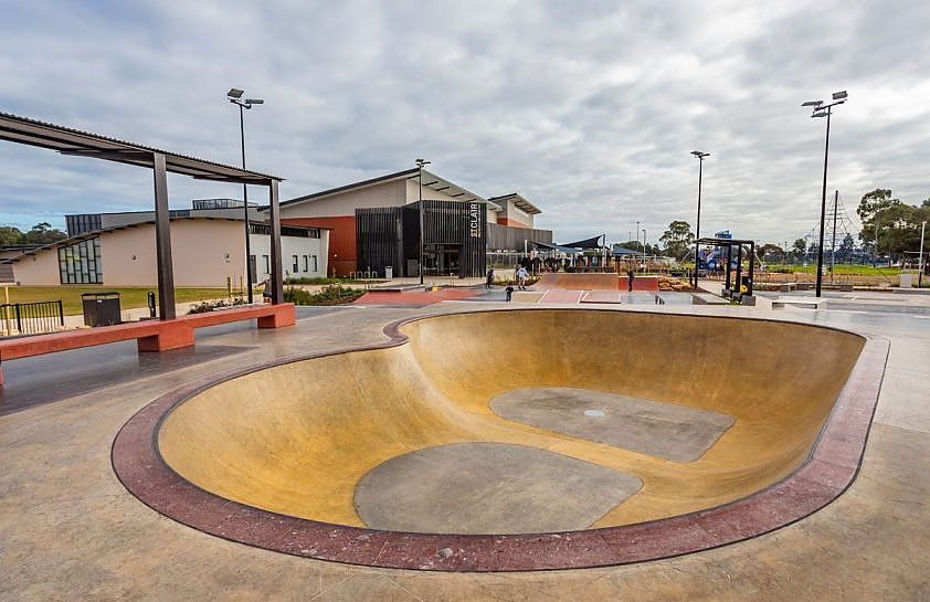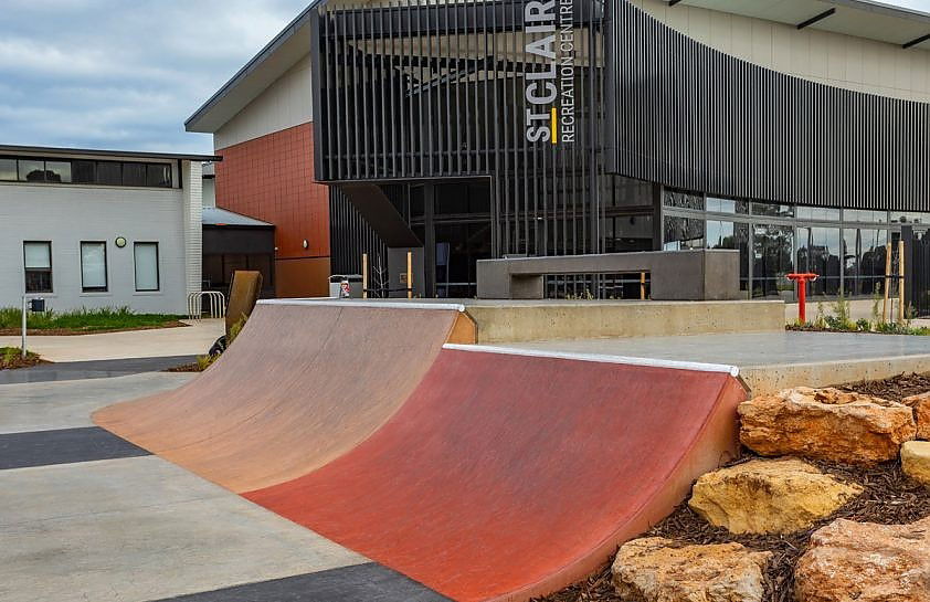he St Clair Skatepark in South Australia, located within the St Clair Recreation Precinct, is a prominent part of the community's youth-focused development. Designed and built by Convic, the skatepark opened in 2020 and features a variety of elements catering to skaters of all levels. These include a mini Bondi-style bowl, flat bars, hips, ledges, and fly-out rails, making it a dynamic space for skateboards, bikes, and scooters.