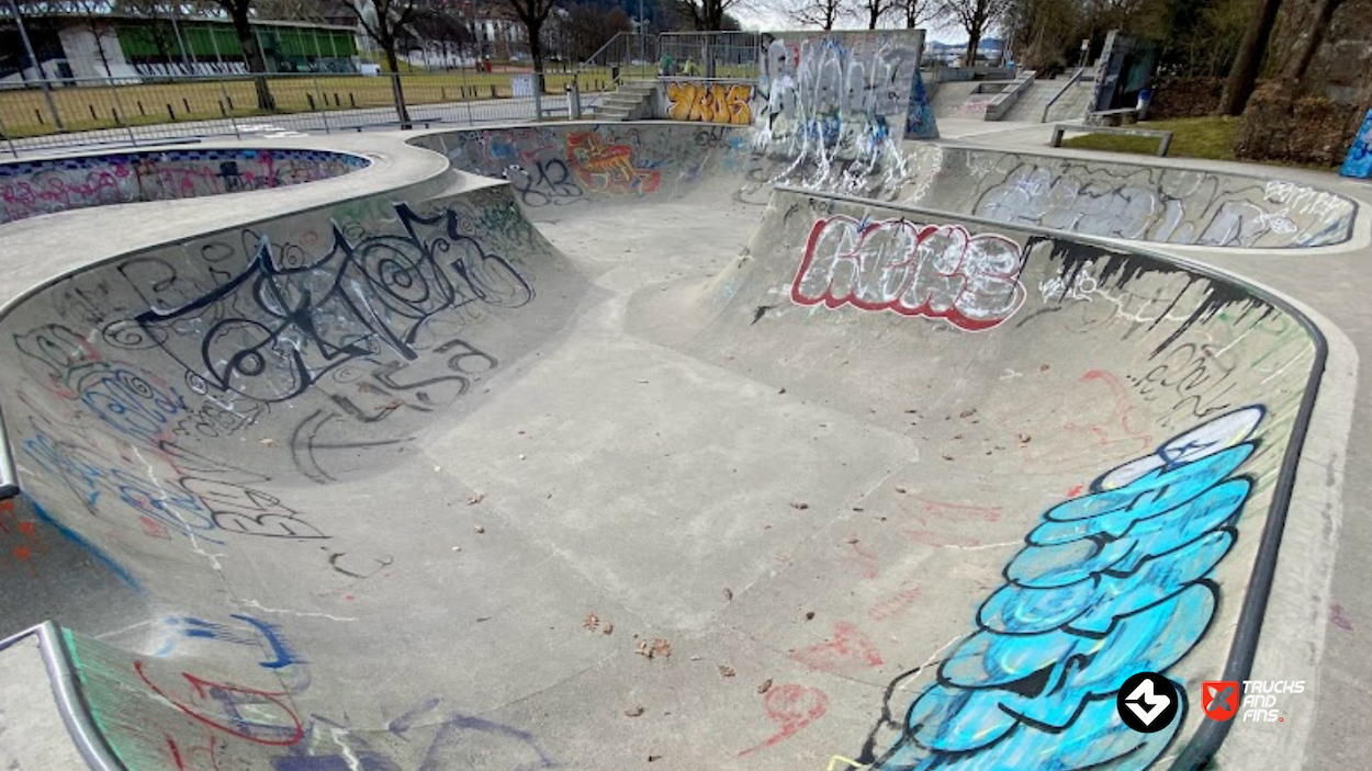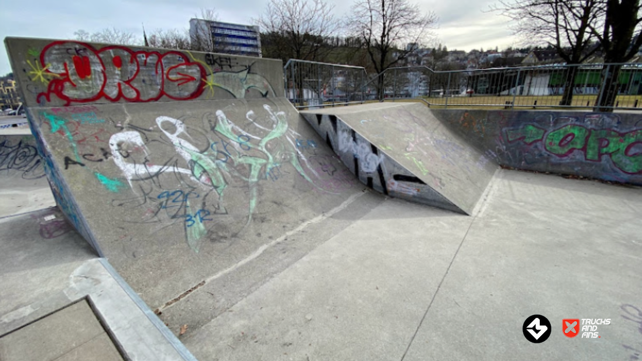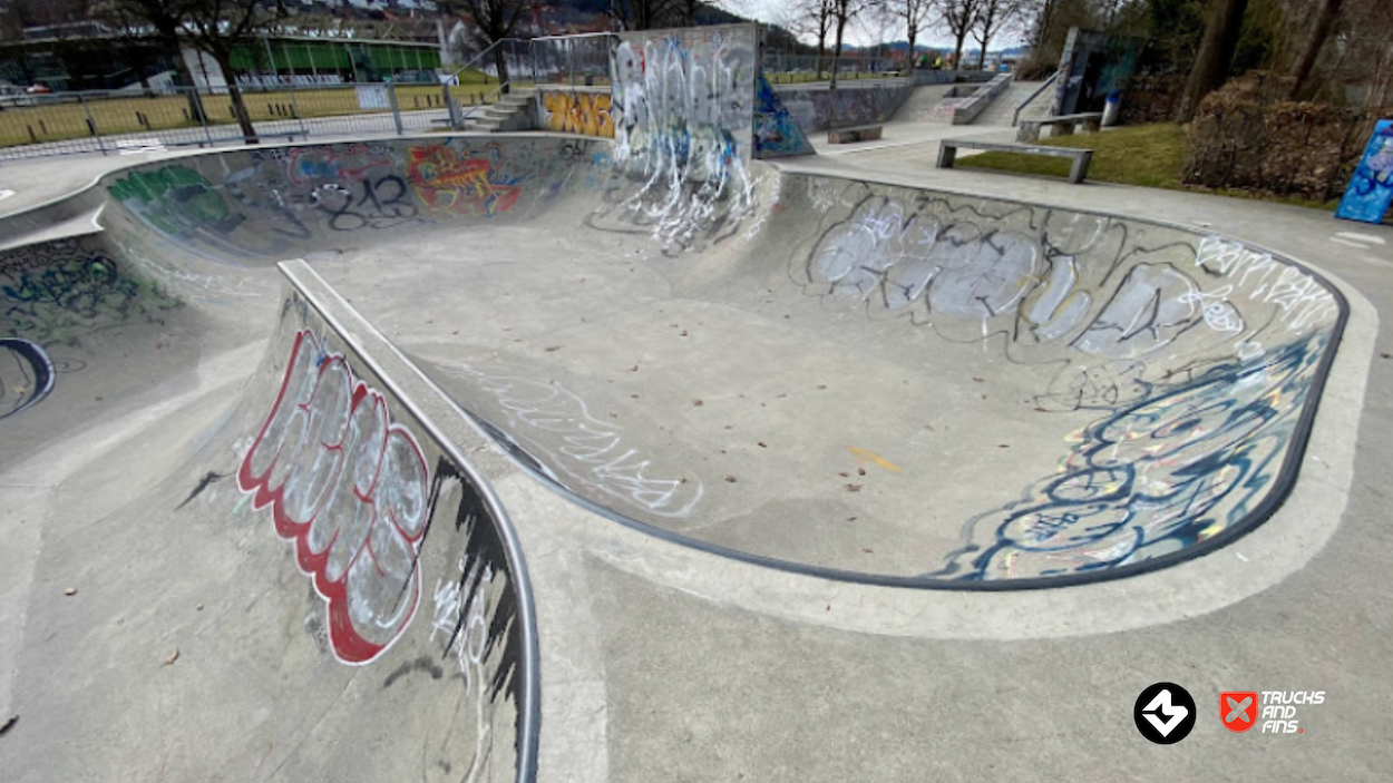 The skatepark Kreuzbleiche in St.Gallen, also known as Kreuzbleiche skatepark, has been around since 2008 and is a large concrete transition focused park.