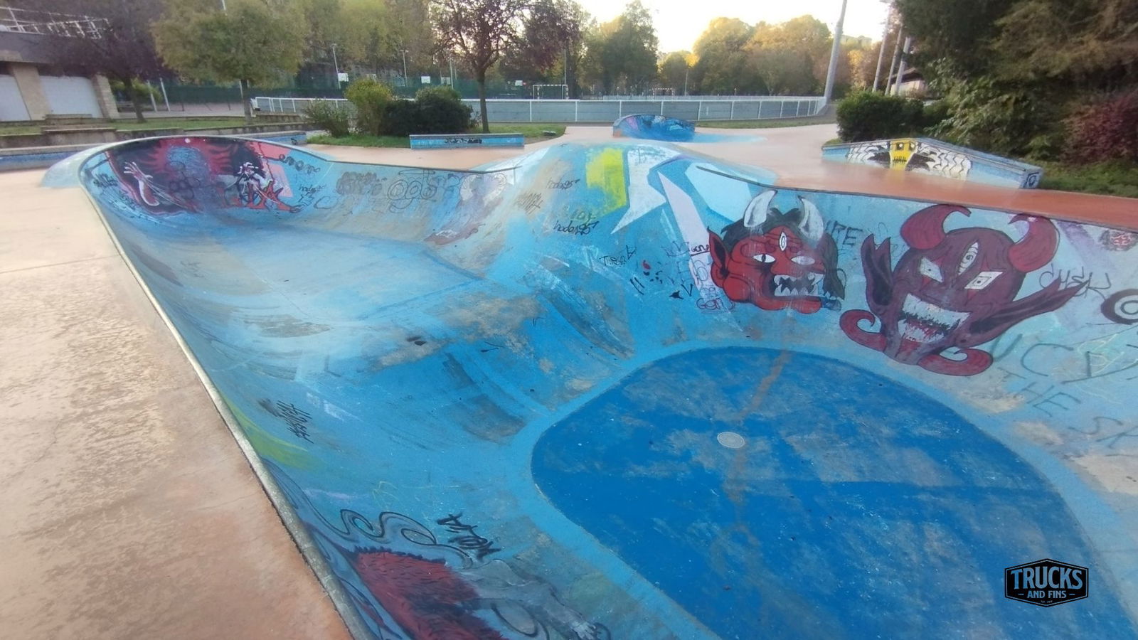 Fantastic concrete bowl with different levels. Park features also some good street obstacles.