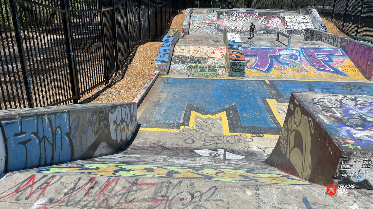 Stonegate Skatepark, located in San Jose, California, is a well-designed outdoor skatepark situated within Stonegate Park, a 10-acre community space. The park was built in 2003 by Wormhoudt, Inc., a prominent skatepark design firm. Covering 5,500 square feet, this concrete park offers a variety of features that cater to skaters of all skill levels, including a large bowl, quarterpipes, flat bars, and street-style obstacles such as rails and ledges.