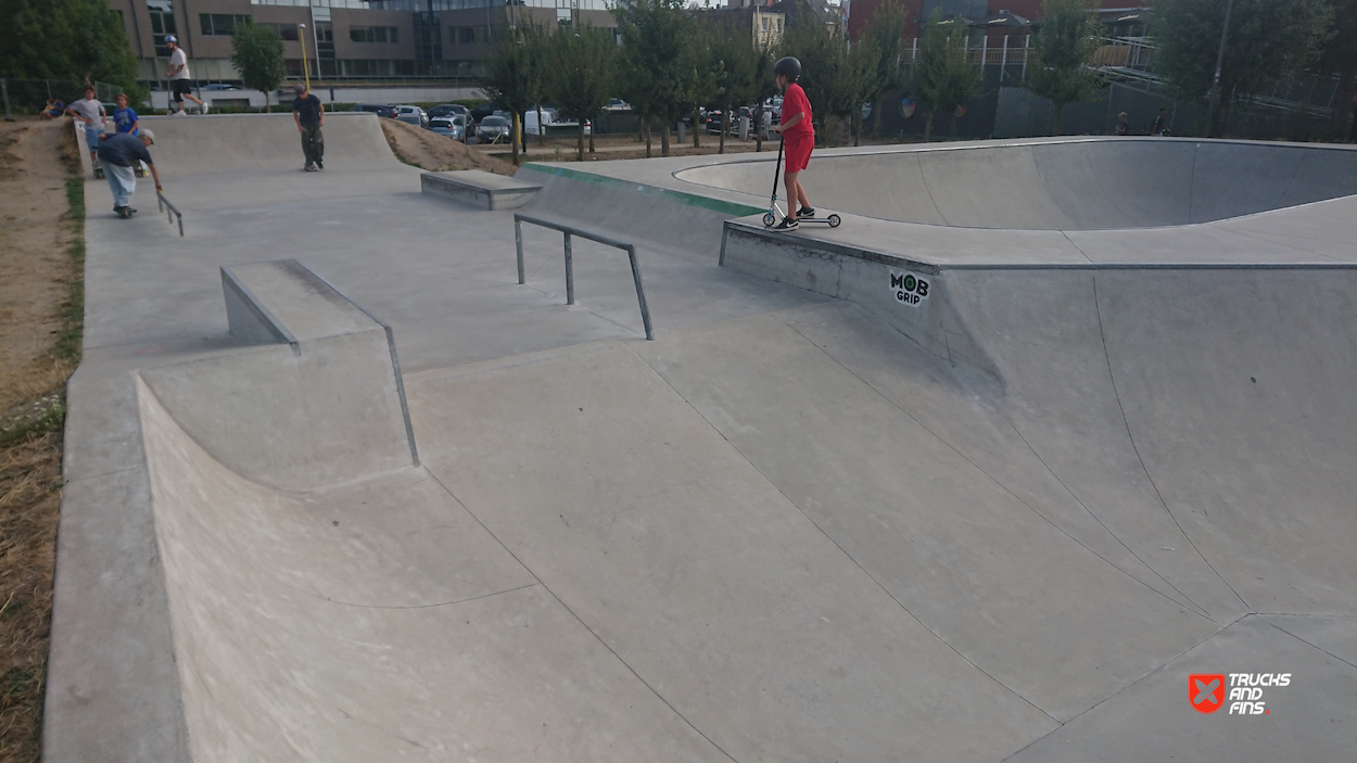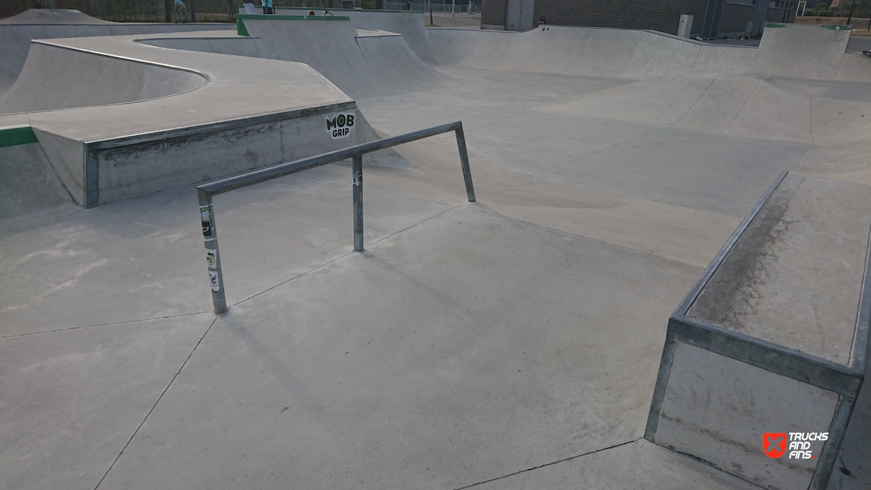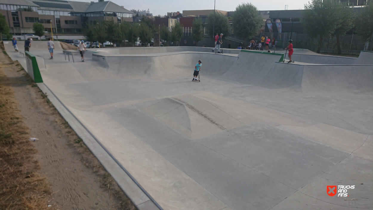 Strombeek Bever skatepark is a concrete skatepark featuring a bowl and a street section with a nice variety of obstacles and flow. The skate park is open from 8 a.m. to 10 p.m