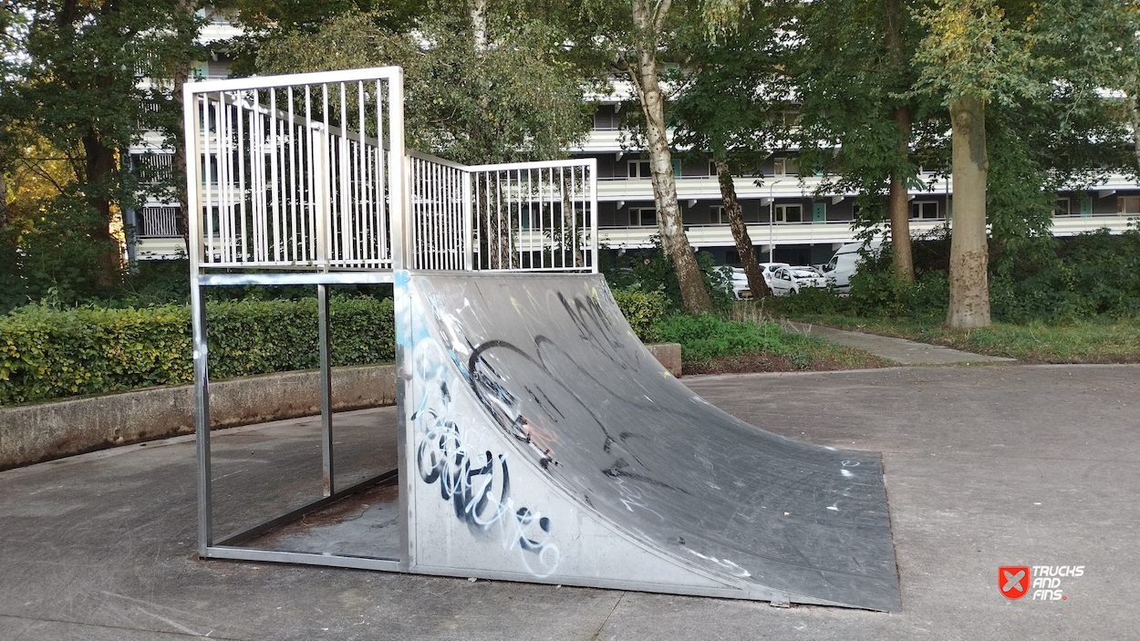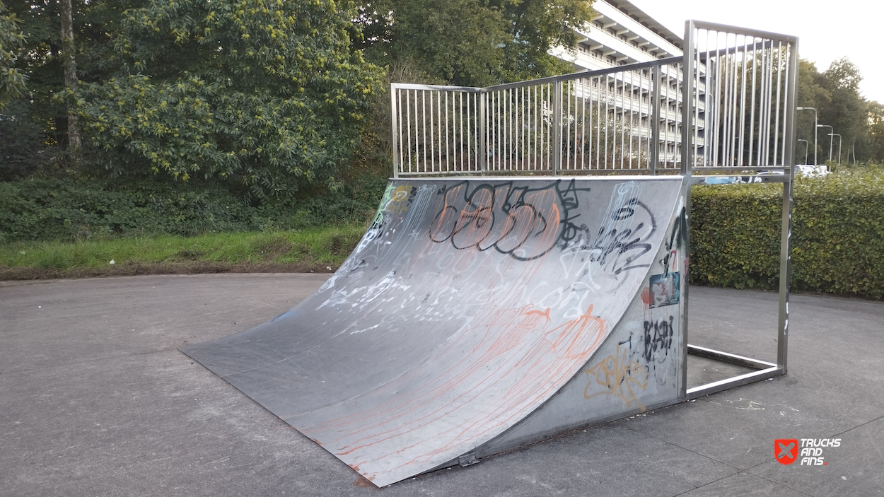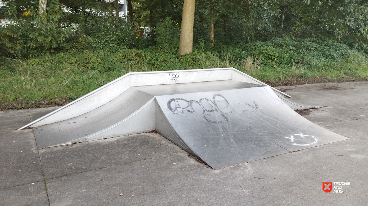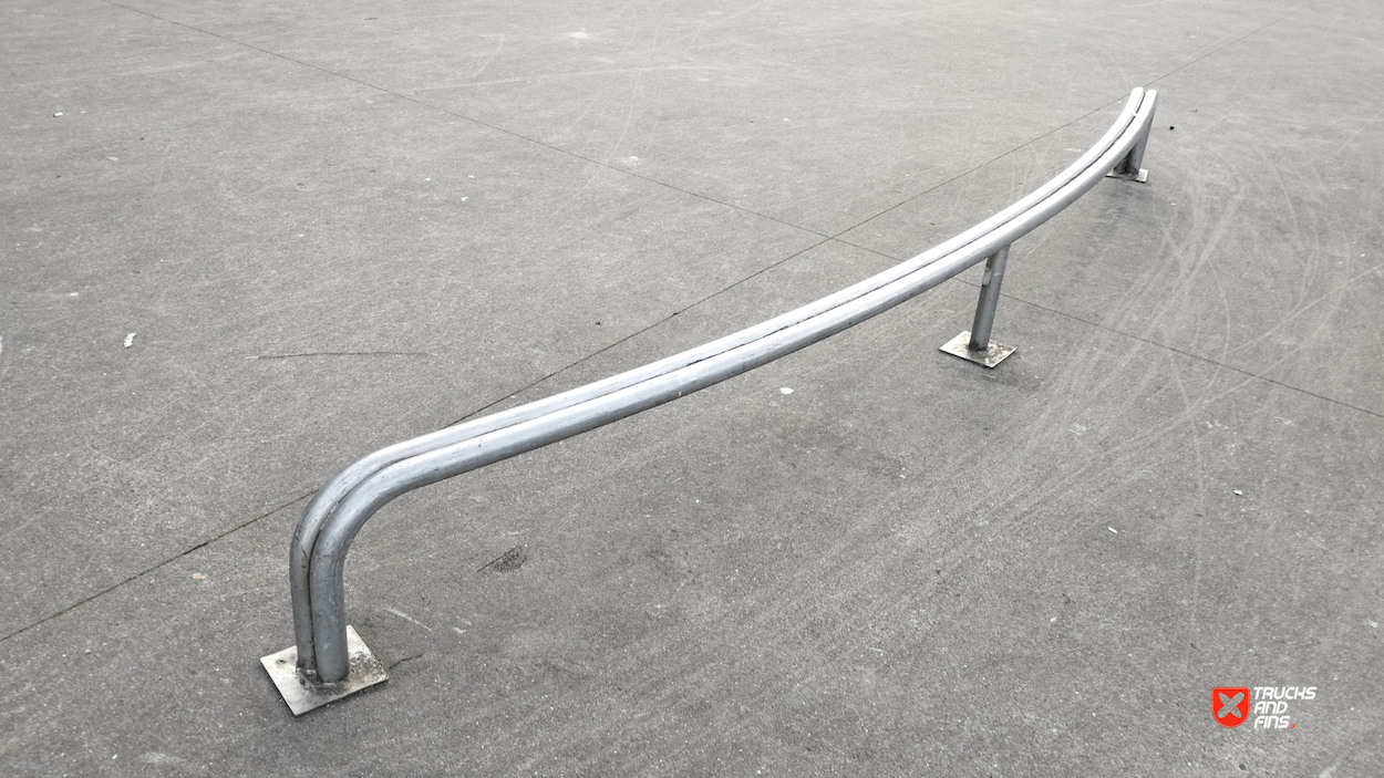 Tailfish skatepark is made up of a back and forth run with a quarter pipe and bank on the sides of a funbox.