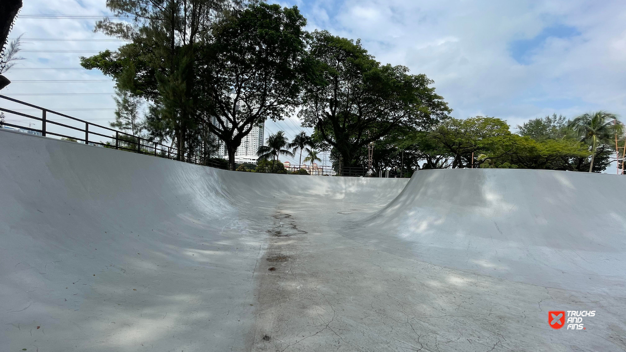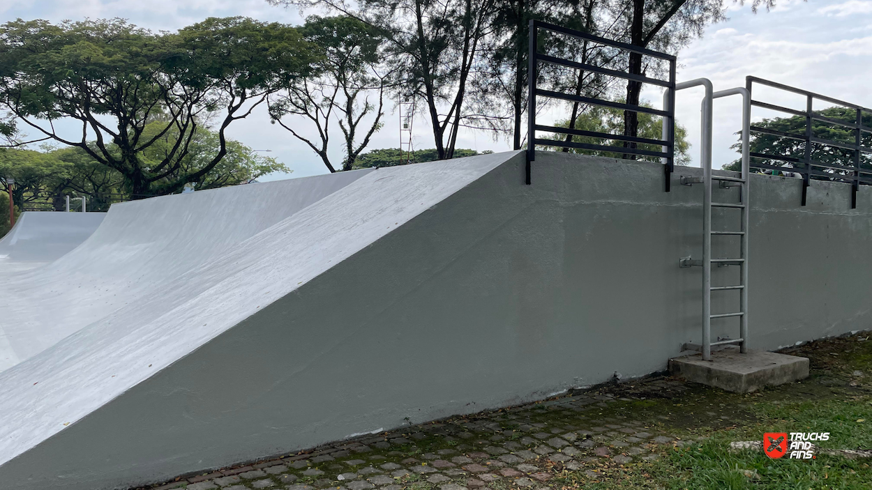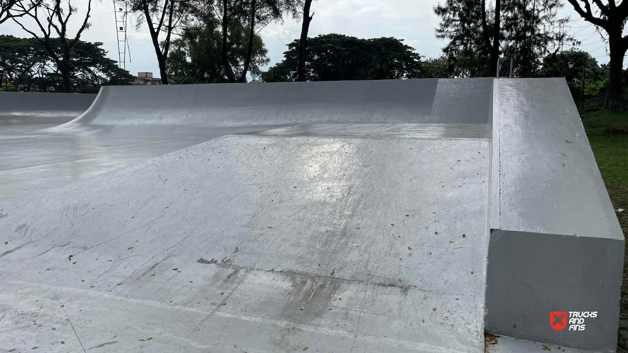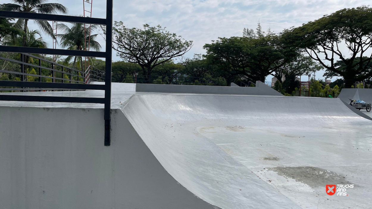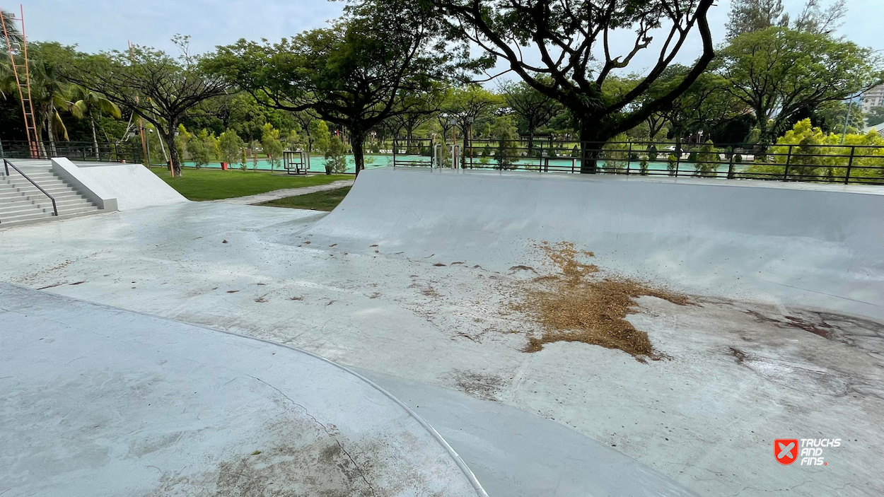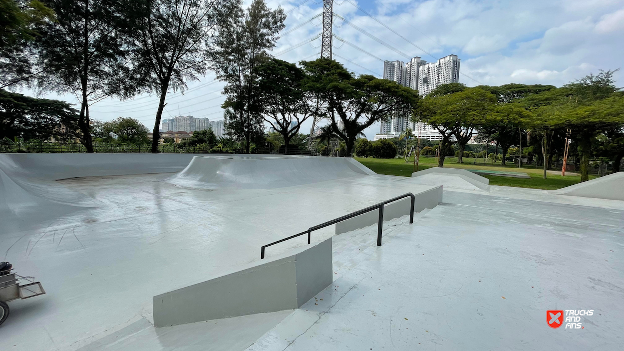 Taman Metropolitan Batu skatepark features an open bowl and several basic obstacles. Locals plan to paint go paint to add definition as there is none with the new paint so can’t see obstacles well and puddles are hard to see too.