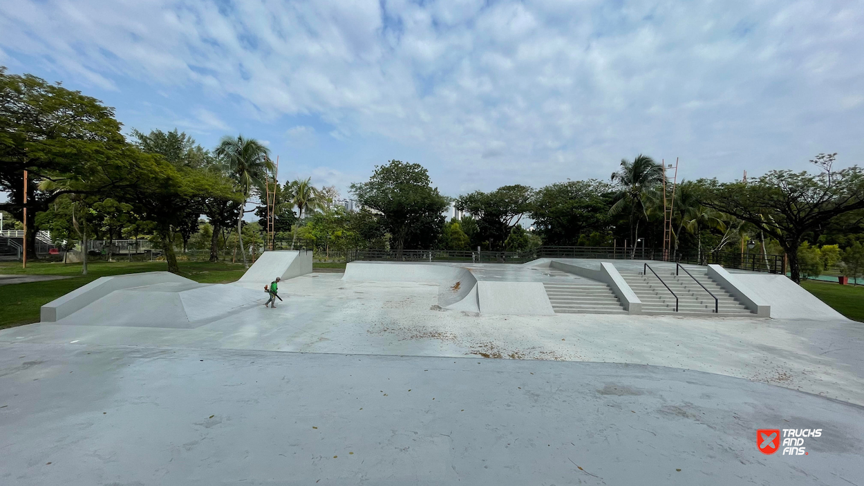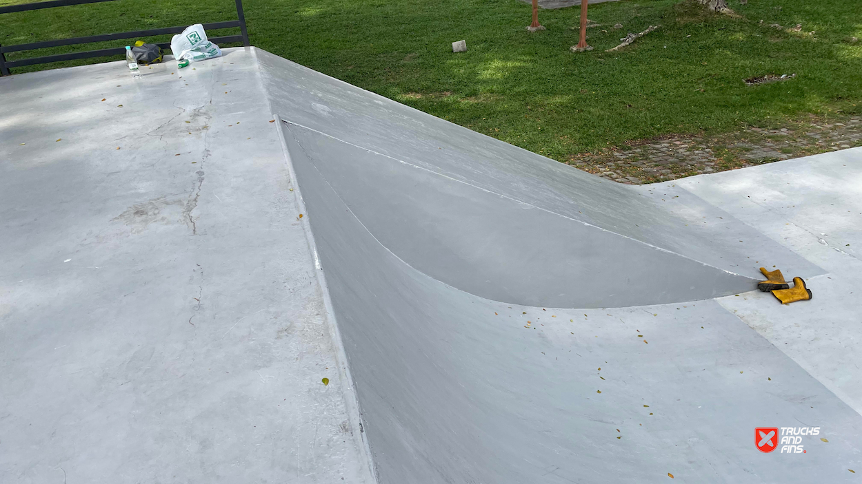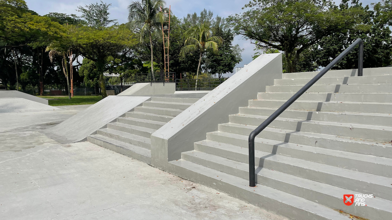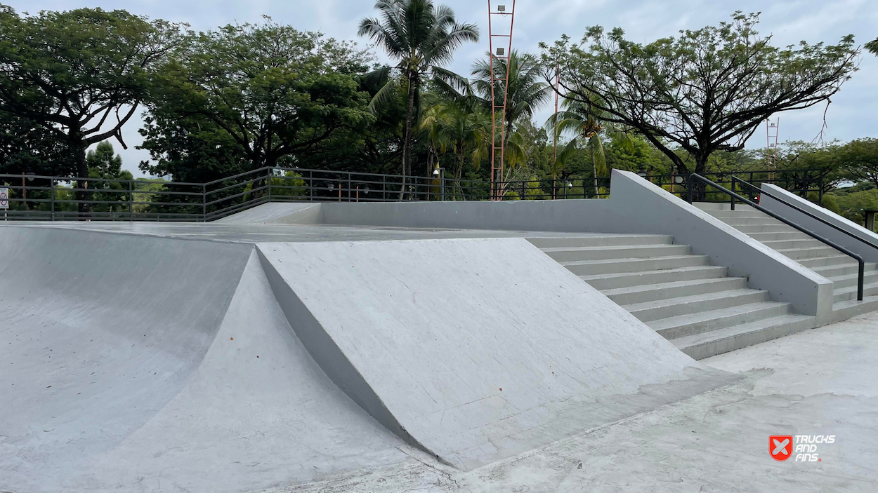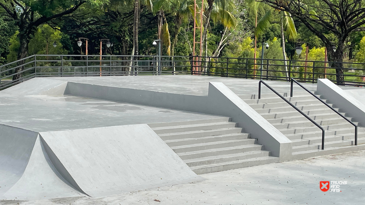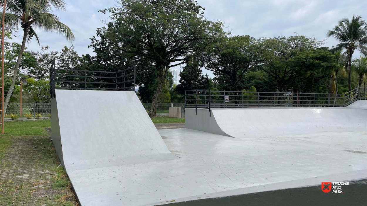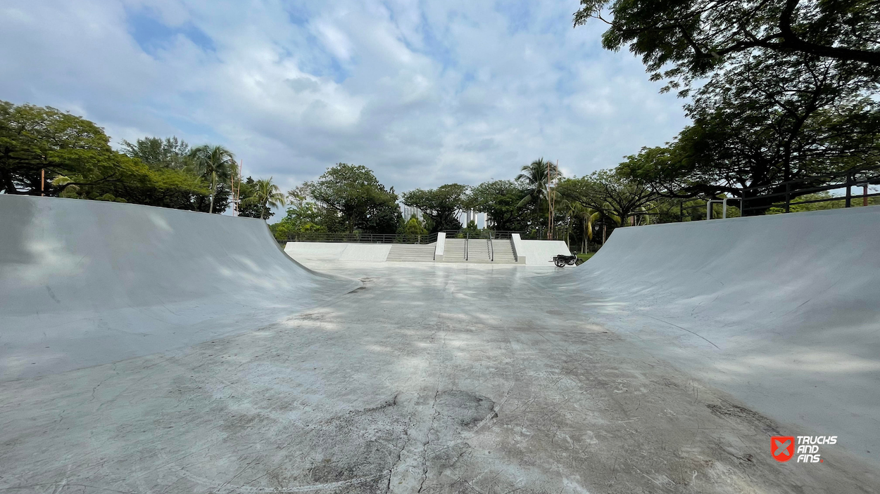 Taman Metropolitan Batu skatepark features an open bowl and several basic obstacles. Locals plan to paint go paint to add definition as there is none with the new paint so can’t see obstacles well and puddles are hard to see too.