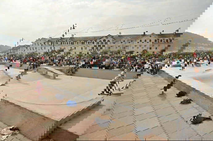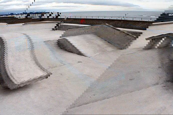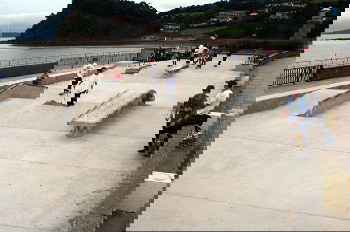 I visited this skatepark whilst having my summer holiday in Teignmouth, South Devon. I didn't have my skateboard but I had my scooter. For skaters this is a good park because its smooth, there are plenty of places for creative tricks and it doesn't usually get too busy there unless its a weekend or there is an event on. There aren't any big ramps so its also good for beginners but not great for any vert skaters. For scooters this is also a great park and it was good for popping over the mid ramps which aren't too small or too big. You can use the entire park easily without stopping because the parks layout is good like that. there are plenty of rails and ledges for fun and cool tricks. It's got a really good location right on the promenade and there are tons of ice cream, food and drink stalls along the seafront. 8.5/10 overall.