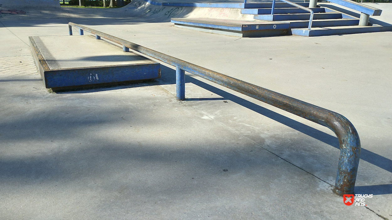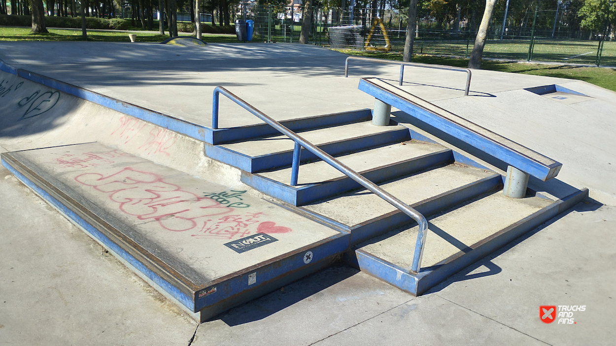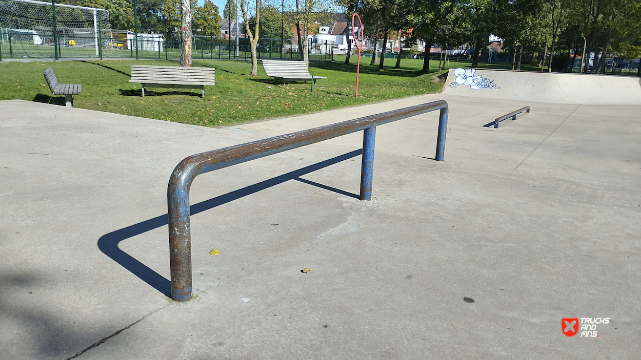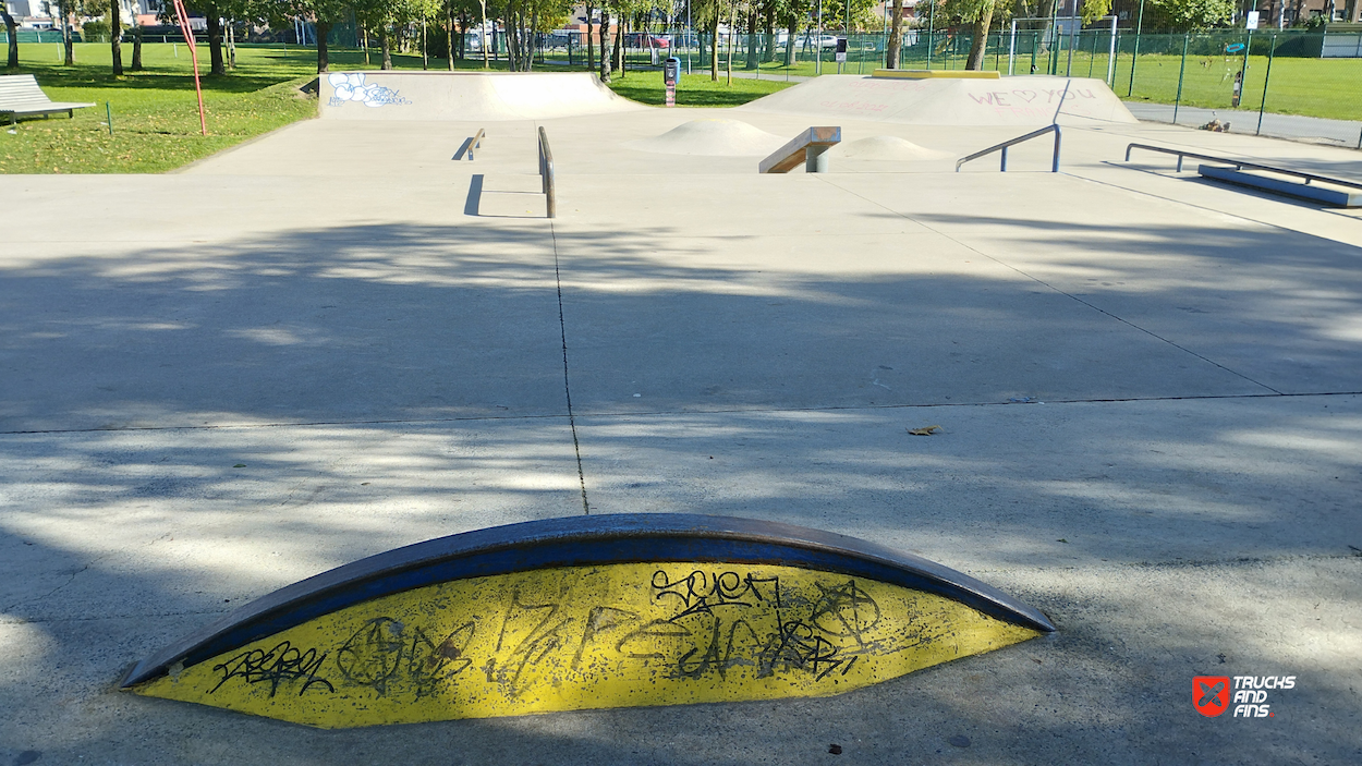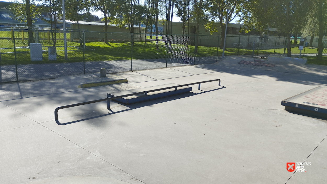 Temse KSV Skatepark is a concrete street-style skatepark located in Temse, Belgium, designed and built by Concrete Skateparks Belgium in collaboration with InOut skateparks. The park features various obstacles, including a hubba, quarter pipe, manual pad, handrails, flat rails, and stairs, providing a versatile space for street skating. Built to accommodate different skill levels, the park has become a popular destination for local skaters. The park's modern design reflects recent efforts to enhance public sports infrastructure in the region.