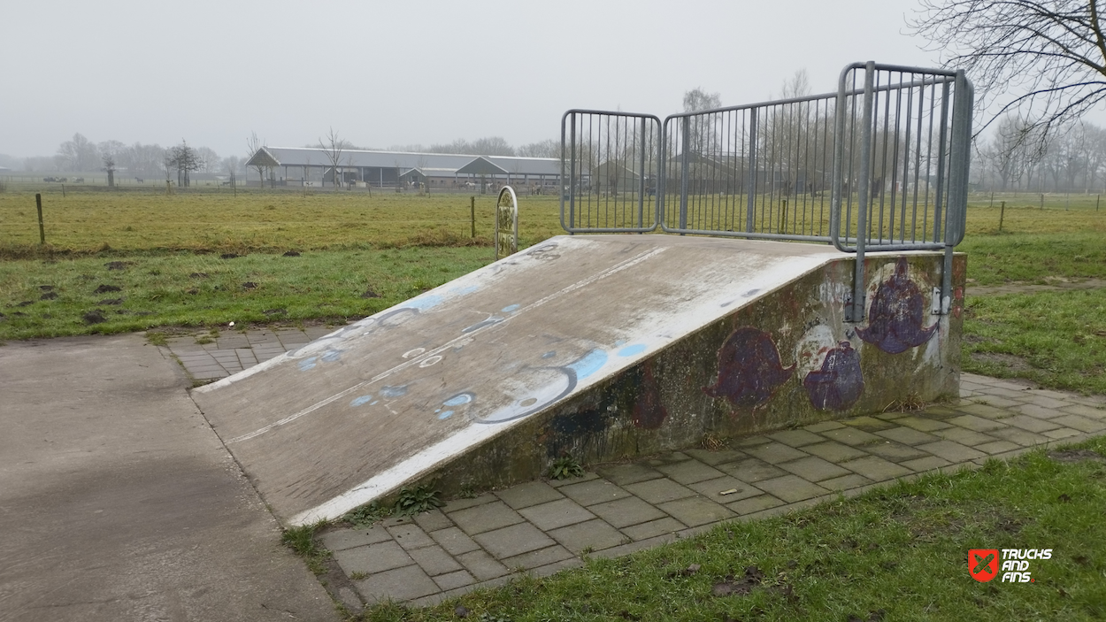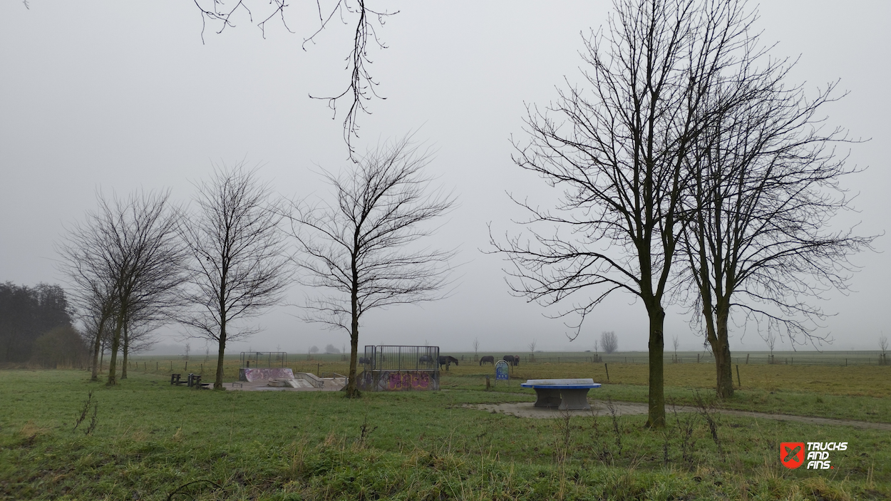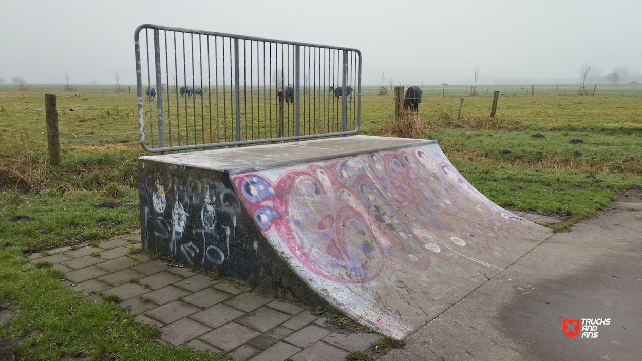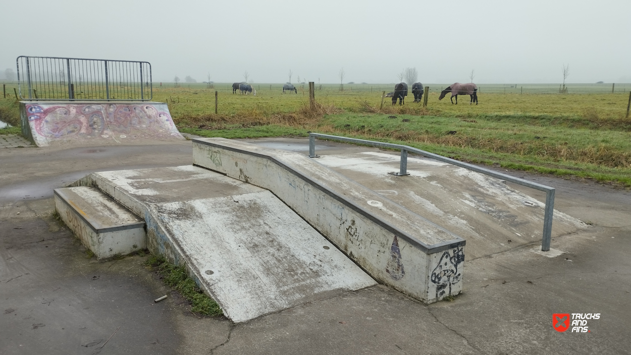 Terheijden skatepark is made up of a back and forth run with a quarter pipe and bank on the sides of a funbox.