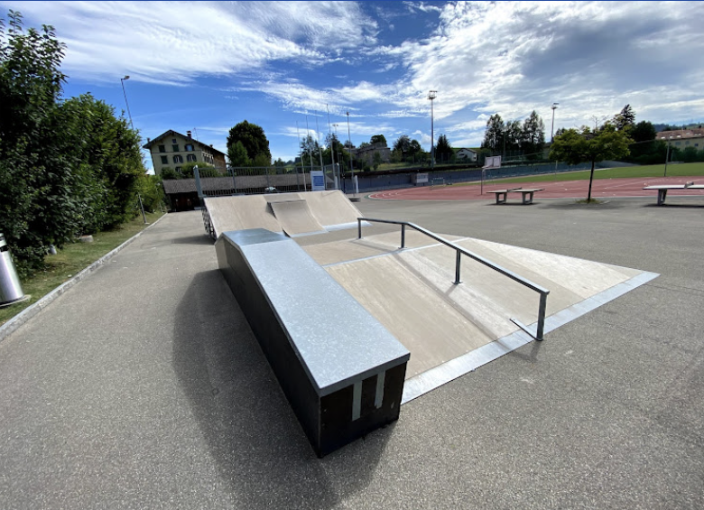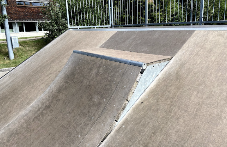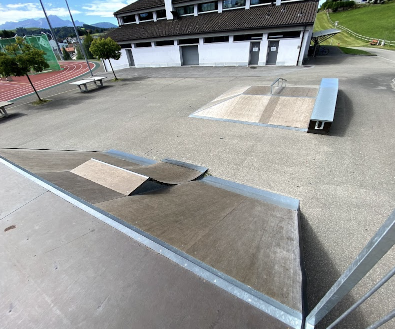 Teufen skatepark AR is a small wooden skatepark with a quarter, bank and funbox.