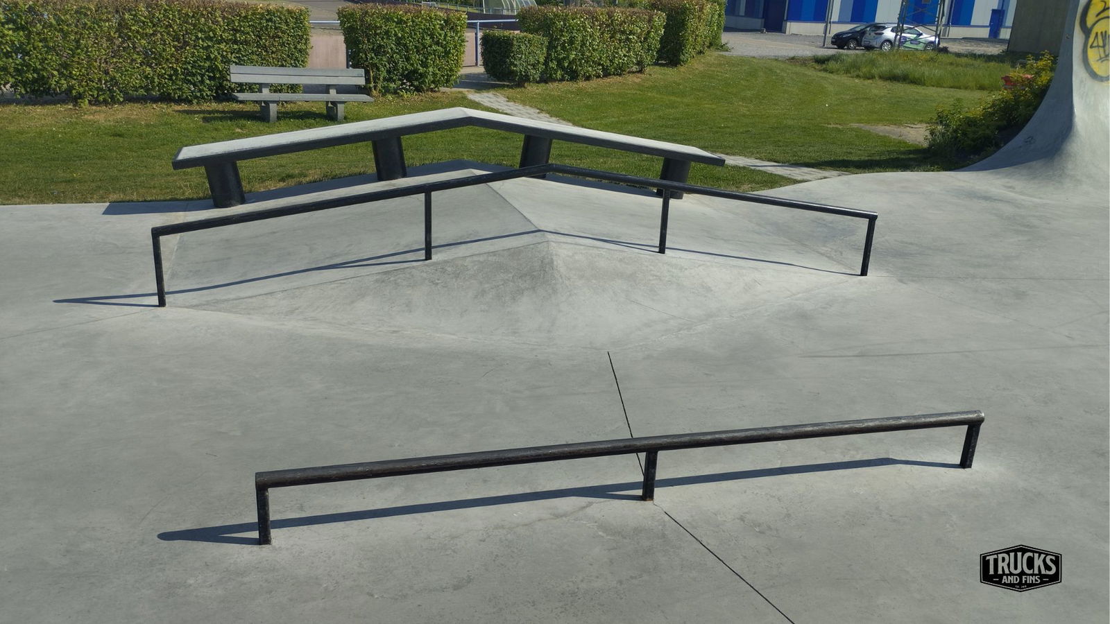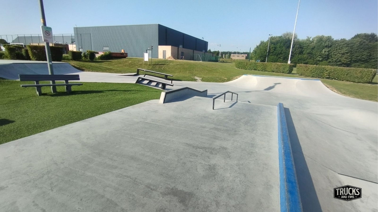 Since today, the whole park got a makeover and is now fully concrete with miniramp, Aframe, rails & ledges, stairs, bowl,…