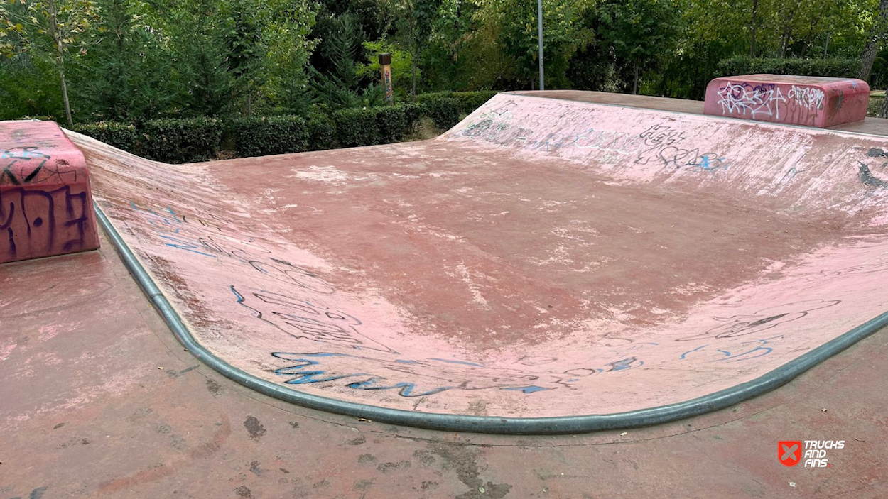 Tiranë skatepark features a concrete open bowl. This park is super fun! It is awesome for progressing your transition / mini ramp tricks. The slope is mellow and very forgiving. The coping is nice and grinds well. The ramp itself is pretty slick but you'd rather have it fast than crusty. There are even lights for night sessions. I visited here a few times in Tirana and never encountered another skateboarder, just kids using the park as a slide.