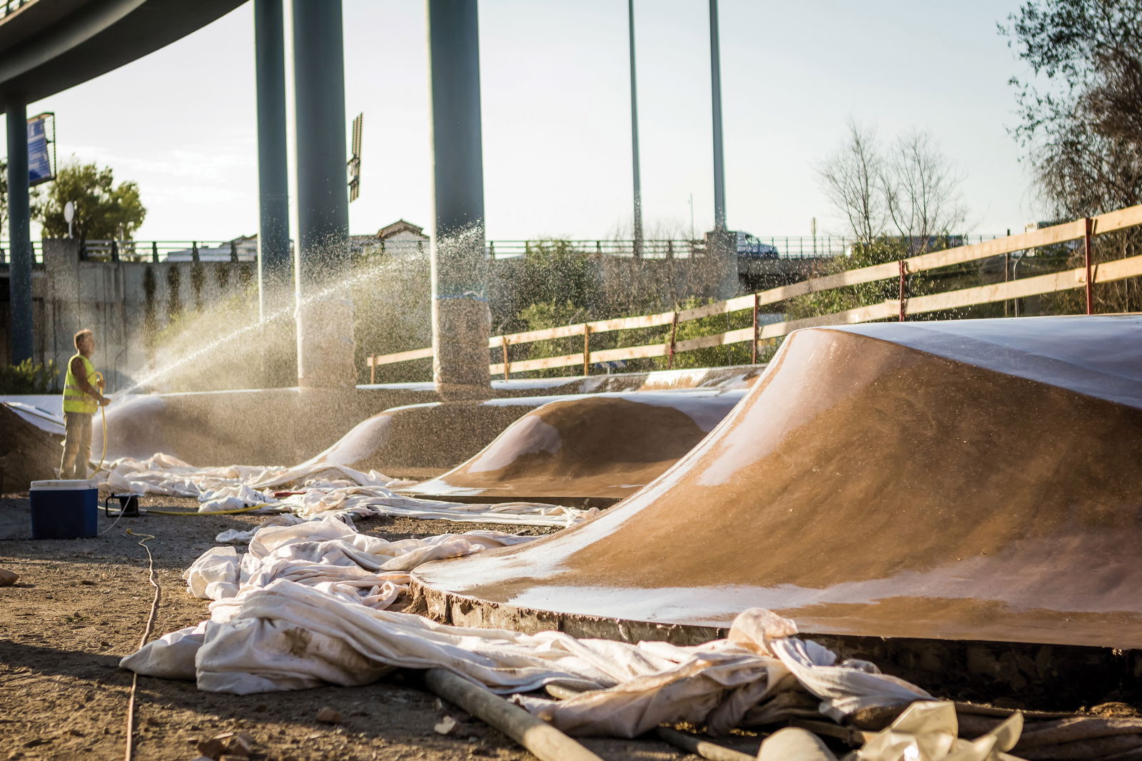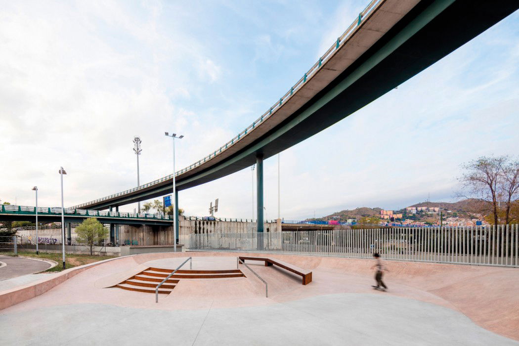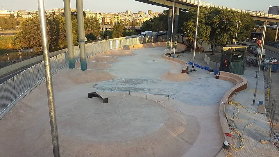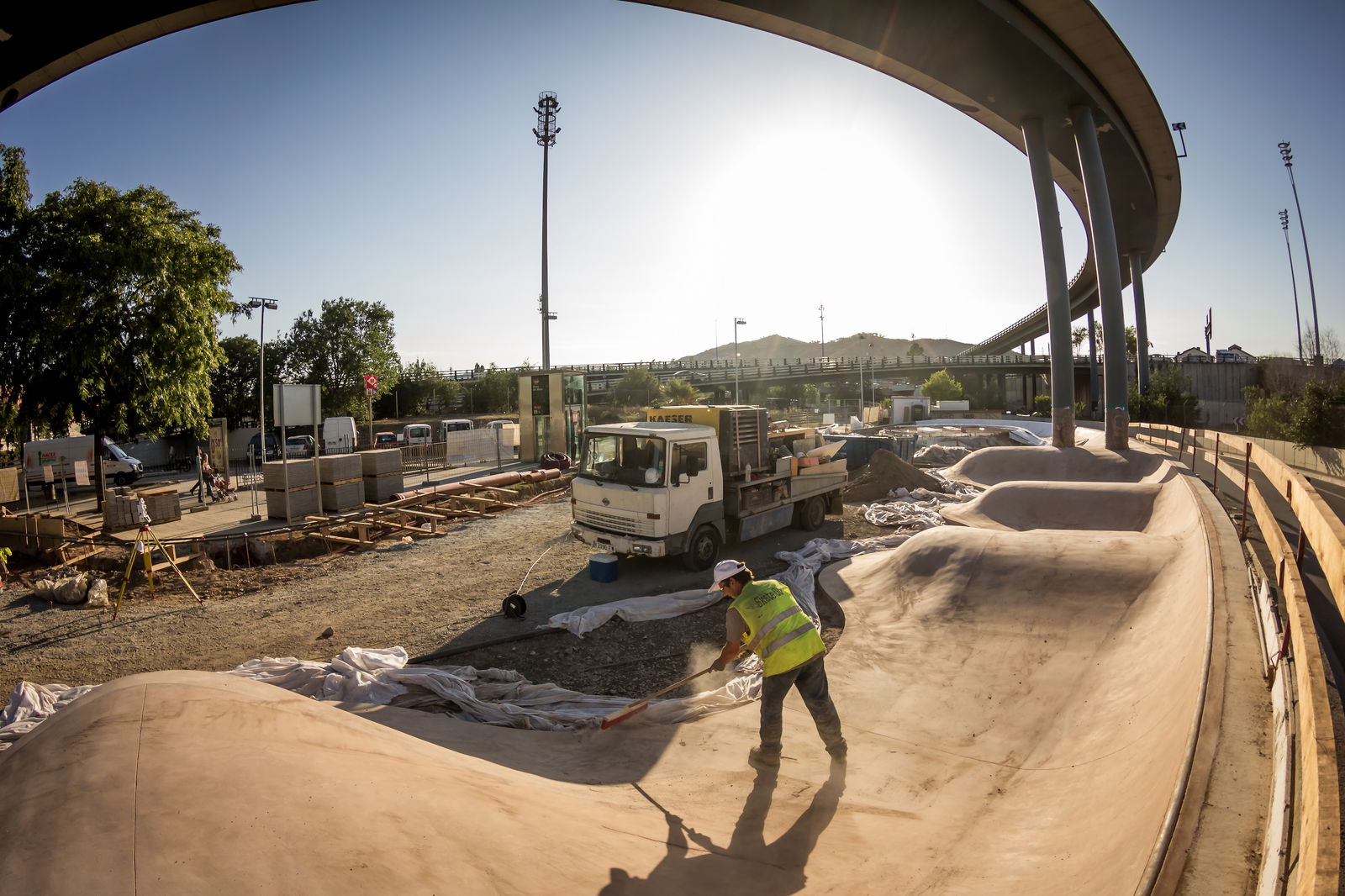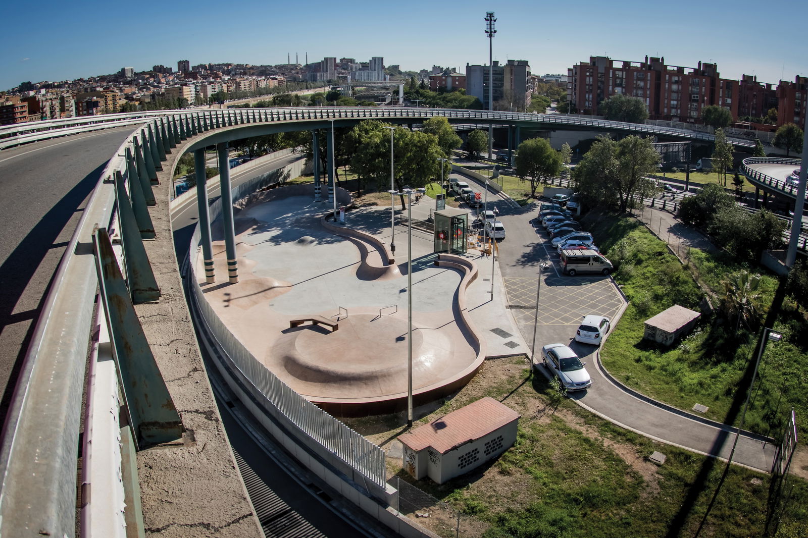 Trinitat skatepark, also known as Skatepark Baró de Viver, is a 950 square meter concrete park, designed and built by Wasteland Skateparks, IOSkateparks and Vulcanoskateparks. The skatepark has a pumptrack and a circular street area.