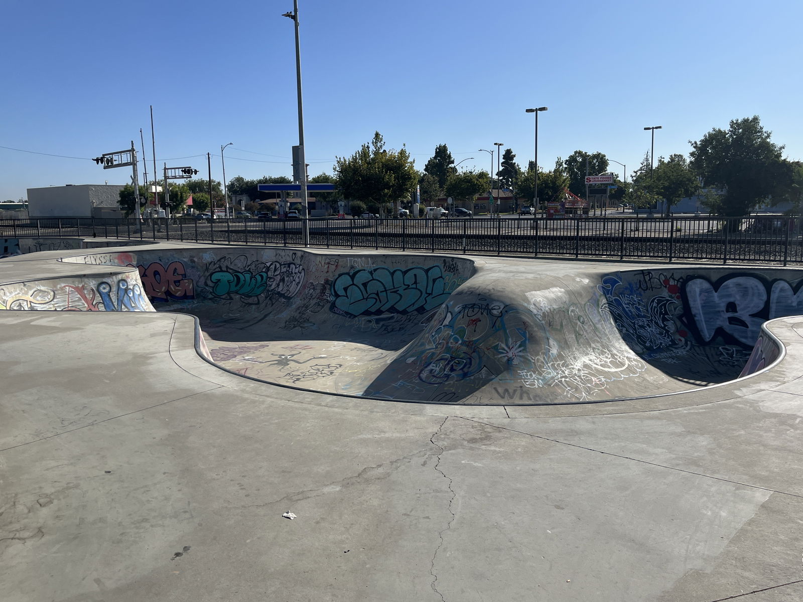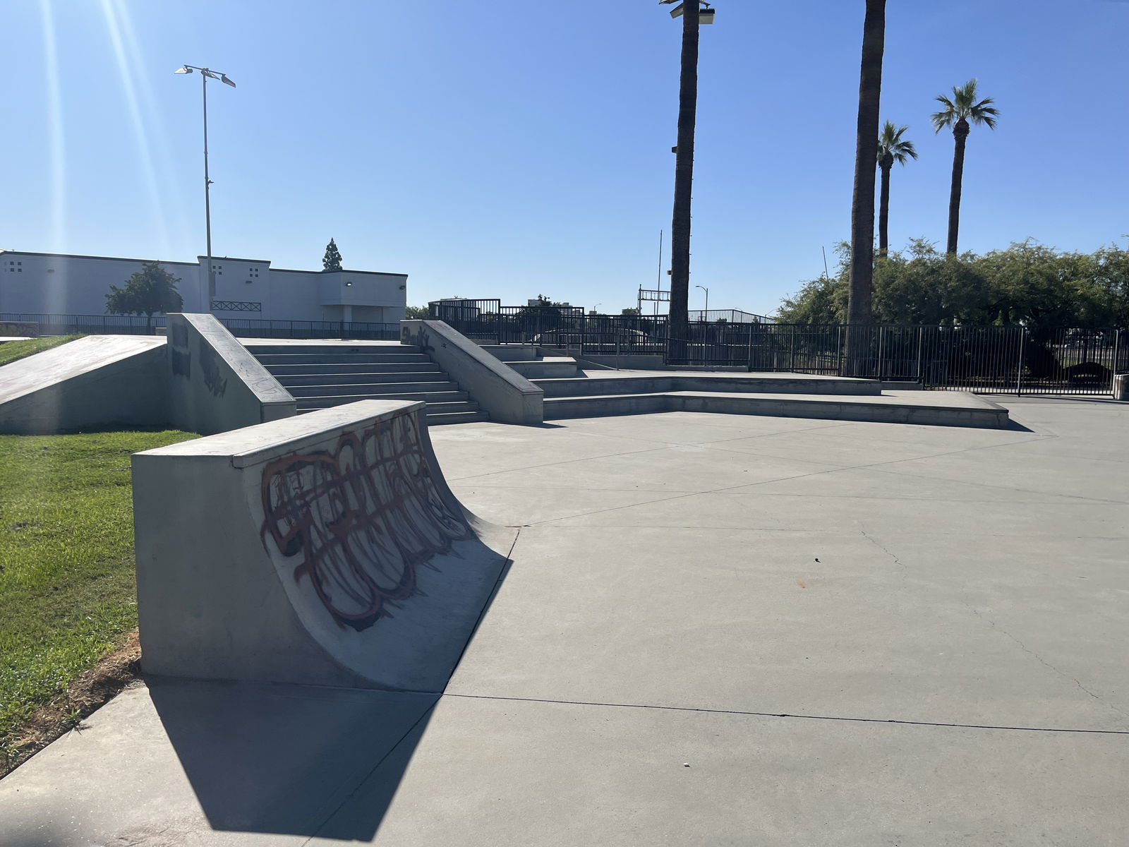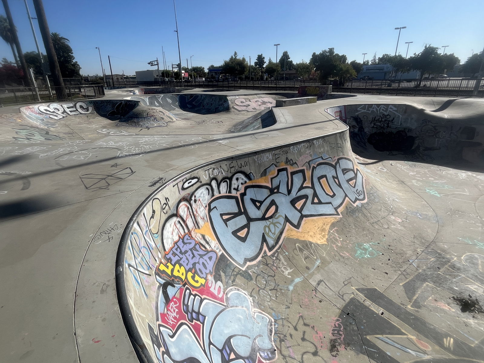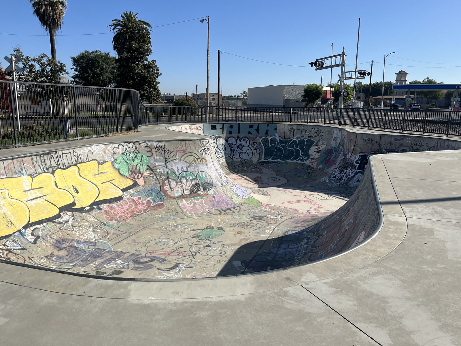 Tulare Skatepark, located at 85 West Tulare Avenue in Tulare, California, is a well-designed skateboarding facility that caters to skaters of all levels. Built to offer a blend of street and vert-style features, the skatepark includes multiple bowls, quarter pipes, rails, ledges, and a pump track. The park is known for its impressive vert sections and unique bowl configurations, making it particularly appealing to both beginner and advanced skaters. The largest bowl, with depths reaching 8-12 feet, provides a challenging ride with smooth transitions that allow for high-speed skating.
