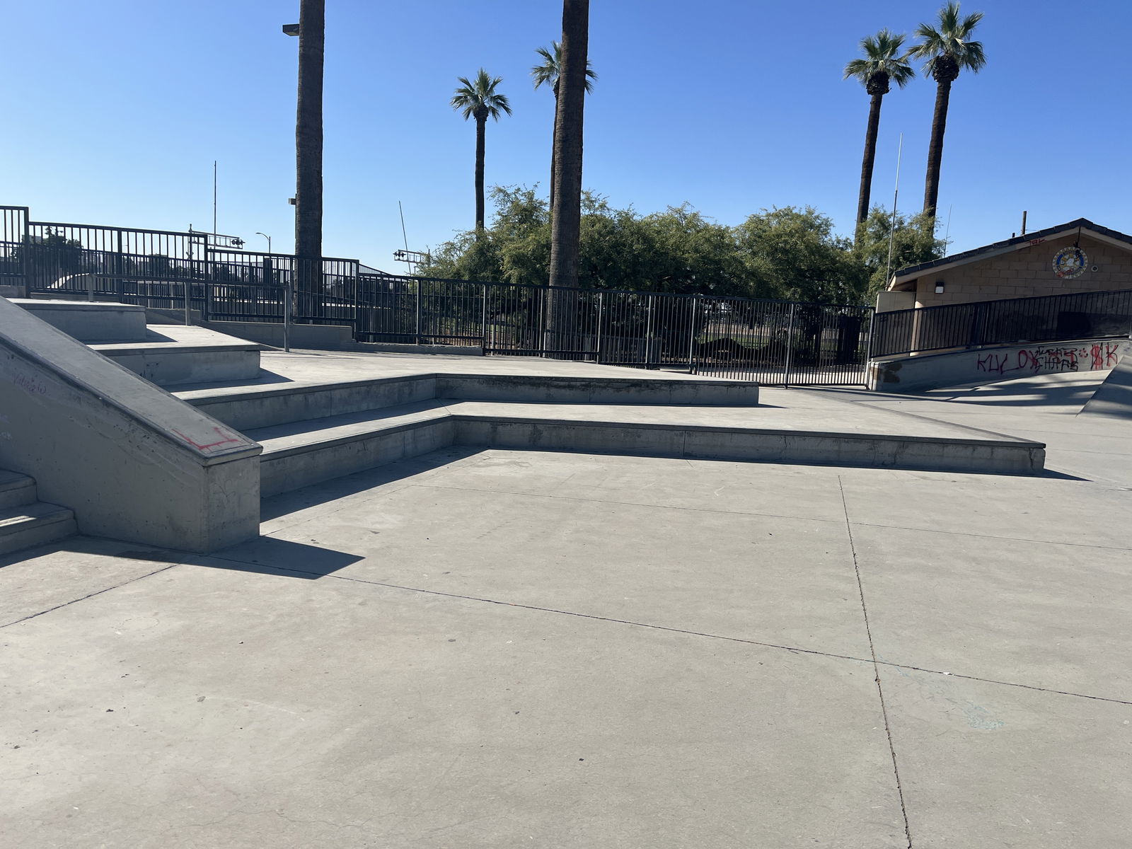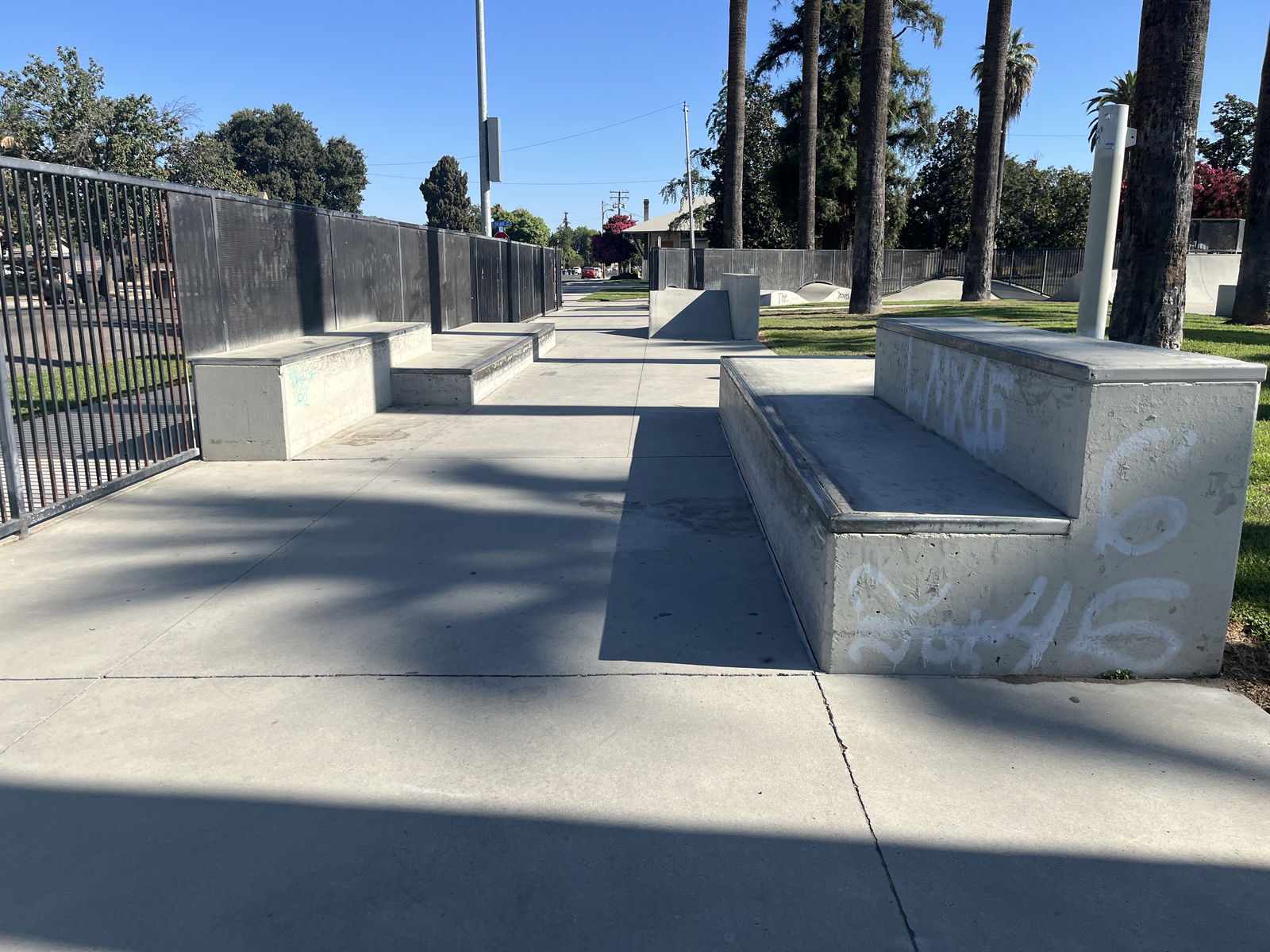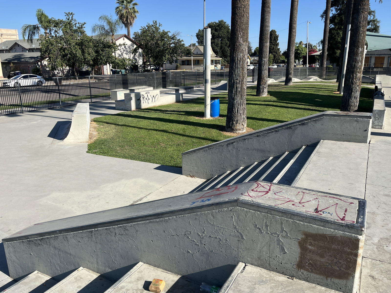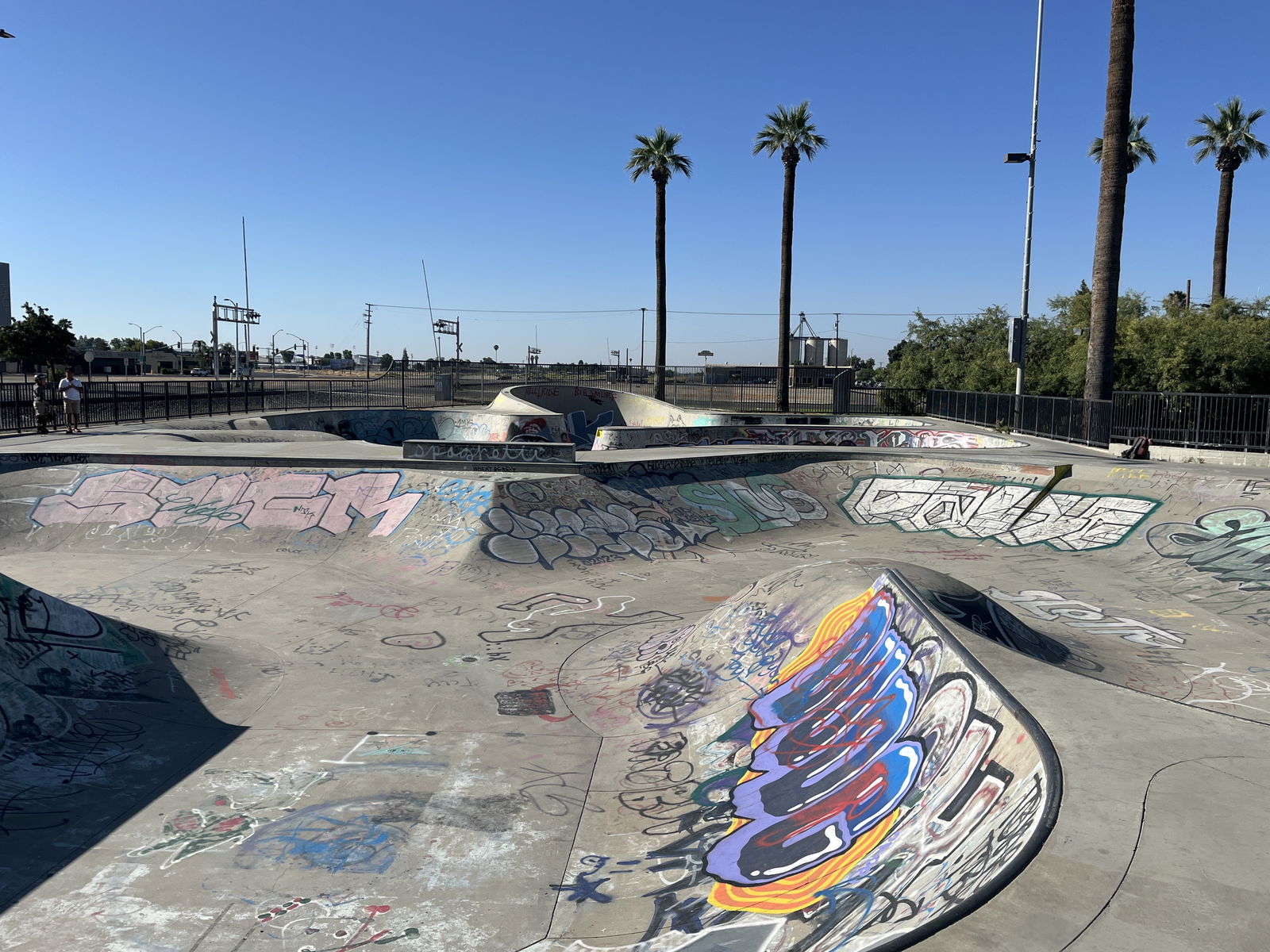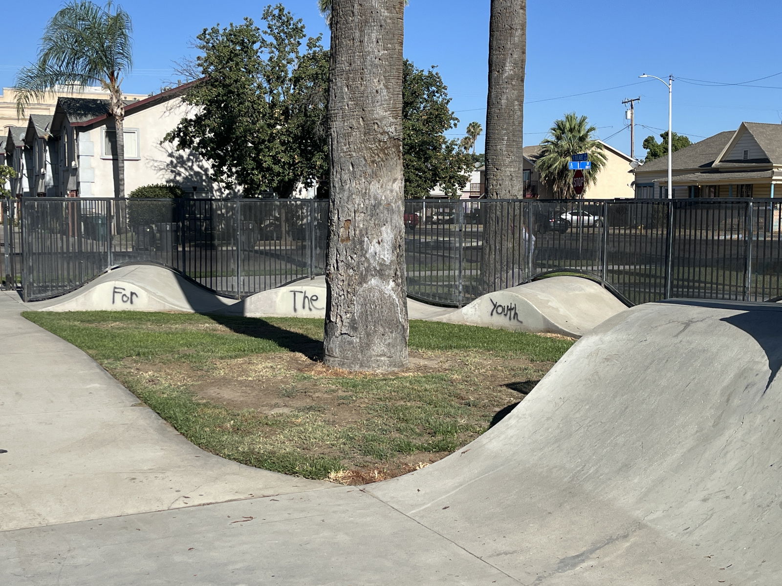 Tulare Skatepark, located at 85 West Tulare Avenue in Tulare, California, is a well-designed skateboarding facility that caters to skaters of all levels. Built to offer a blend of street and vert-style features, the skatepark includes multiple bowls, quarter pipes, rails, ledges, and a pump track. The park is known for its impressive vert sections and unique bowl configurations, making it particularly appealing to both beginner and advanced skaters. The largest bowl, with depths reaching 8-12 feet, provides a challenging ride with smooth transitions that allow for high-speed skating.