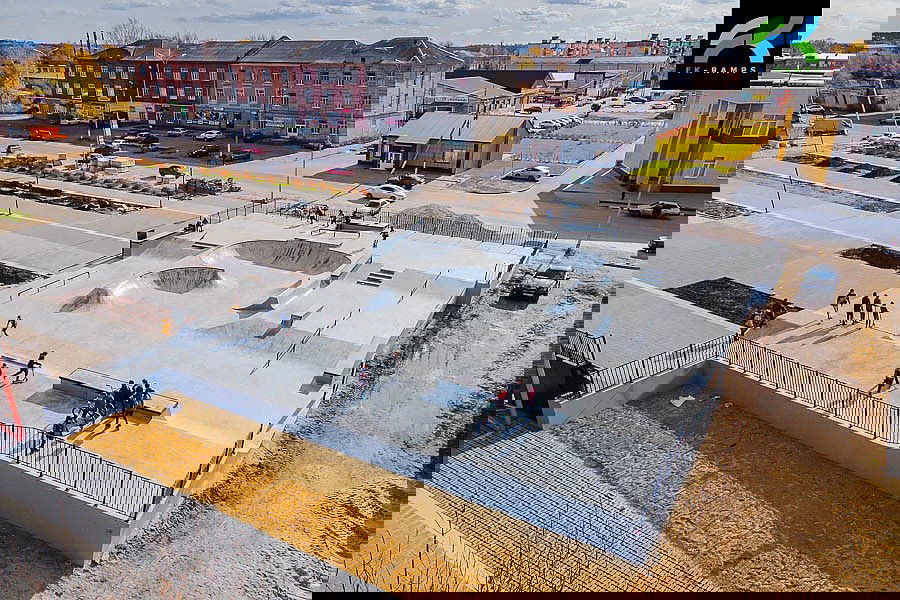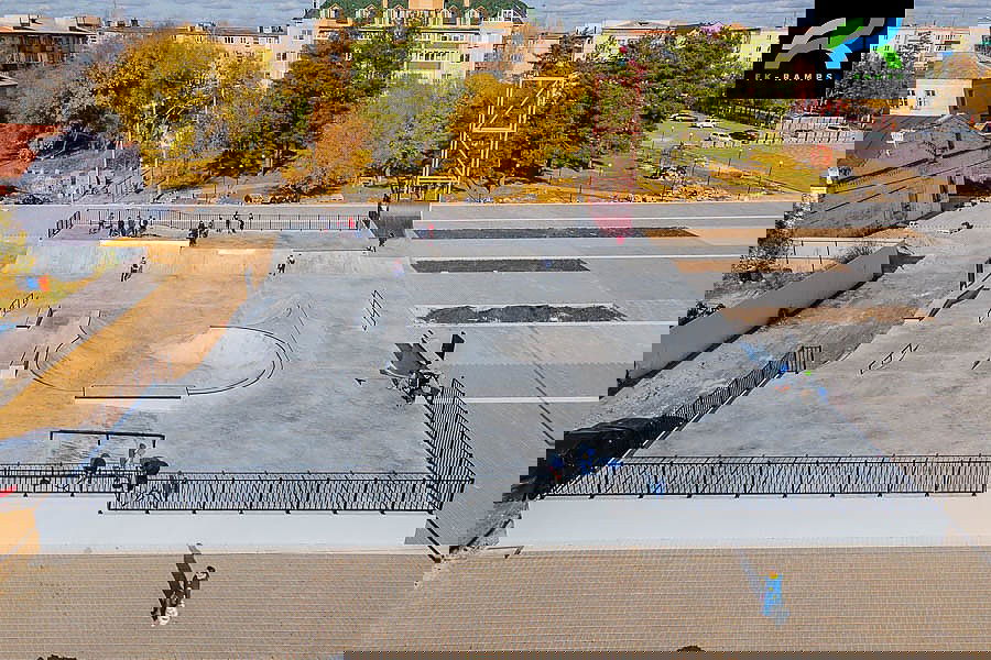 Uryupinsk skatepark is a concrete park built by FKramps. The skatepark is made up of an open bowl connected to a street area.