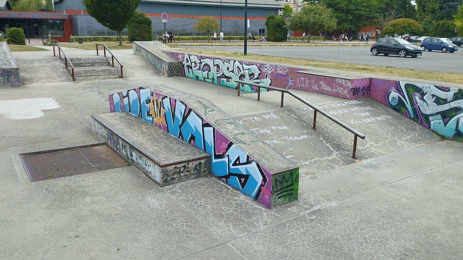 The 810 m² Valenciennes park was designed and built by Constructo skateparks in 2005 who teamed up with STPV. Total estimated cost: 140000€.