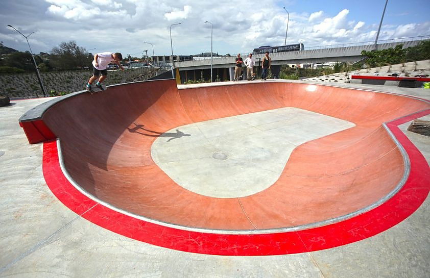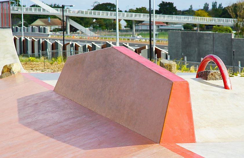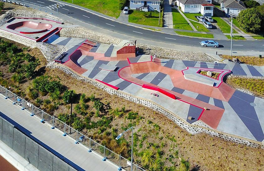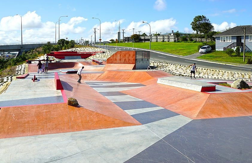 Valonia Skatepark, located in New Windsor, Auckland, was opened in 2017 as part of the Waterview Connection project, which aimed to integrate urban infrastructure with community recreational spaces. Designed with a unique volcanic theme, the park's layout reflects Auckland's volcanic heritage, featuring a series of terraces and skateable elements that simulate a lava flow. The skatepark includes bowls, quarter pipes, banks, and rails, catering to intermediate and advanced skaters.