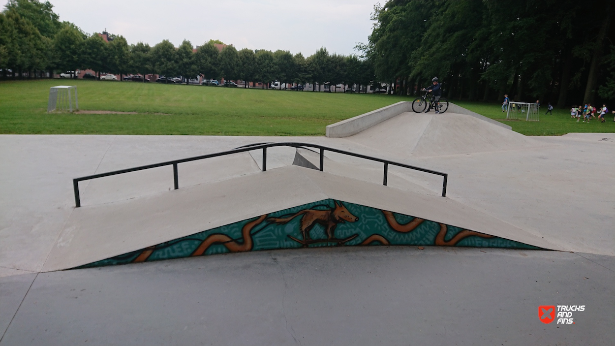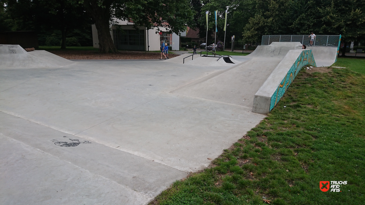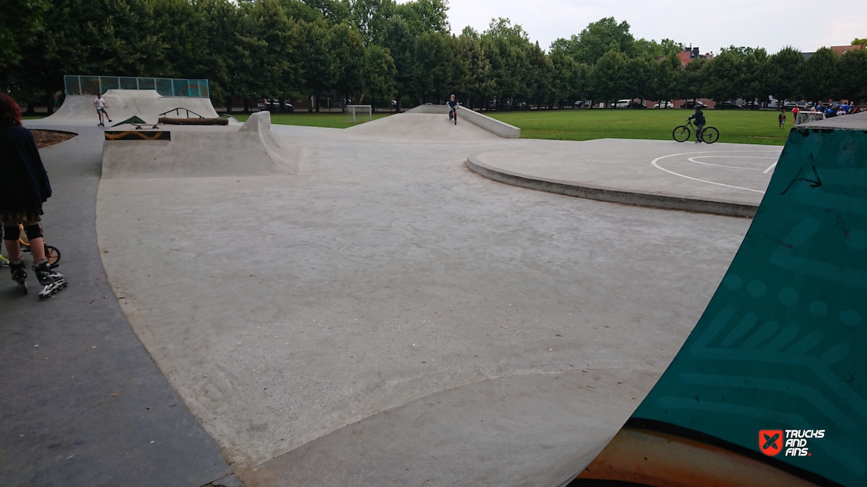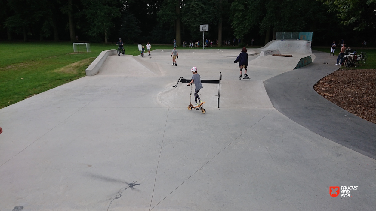 The Veltwijckpark skatepark in Ekeren, Belgium, is a well-designed skate facility located within the green expanse of Veltwijckpark, offering skaters a variety of features amidst a scenic environment. The skatepark was designed and built by Concrete Skateparks Belgium, known for its durable and functional skatepark constructions. It features various elements such as hubbas, a jump box, quarterpipes, funboxes, handrails, flatrails, and banks, providing ample opportunities for different skateboarding styles.