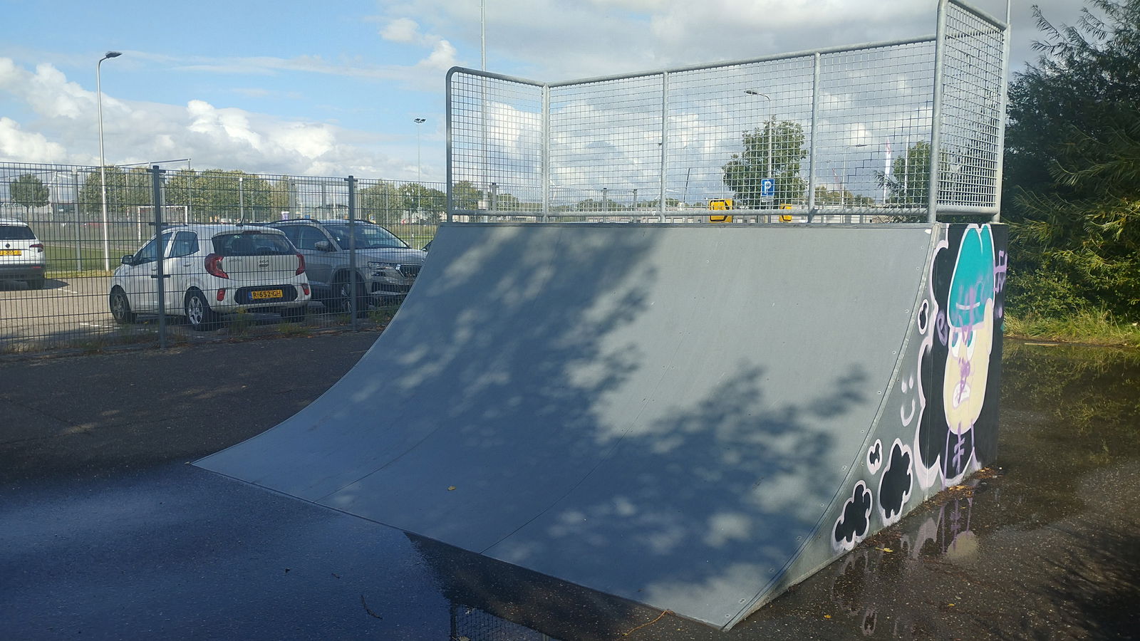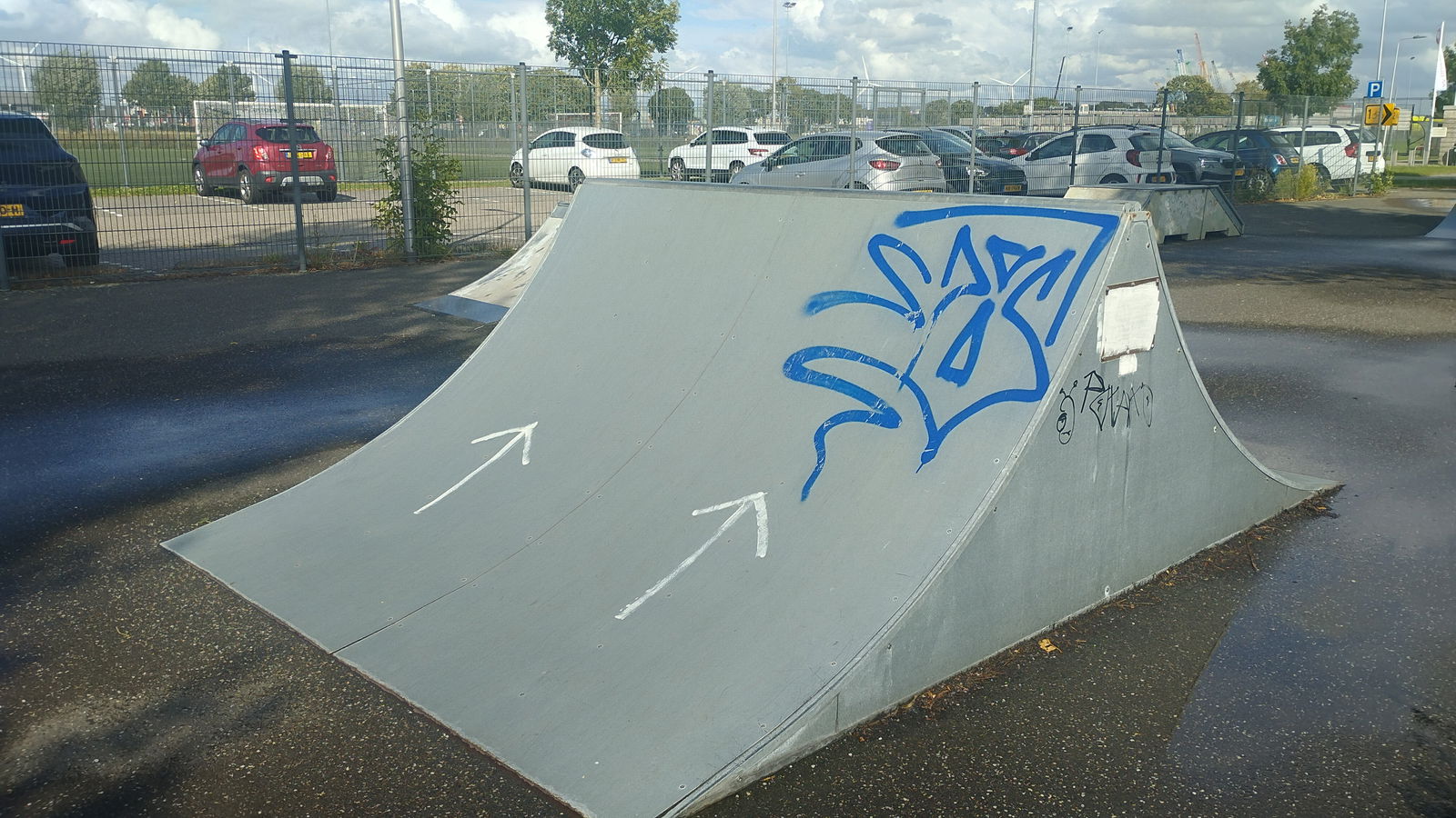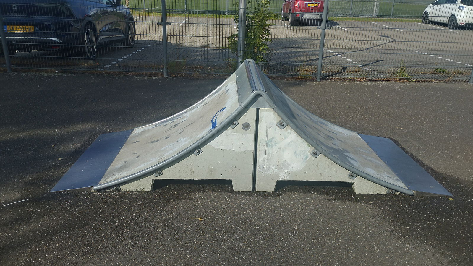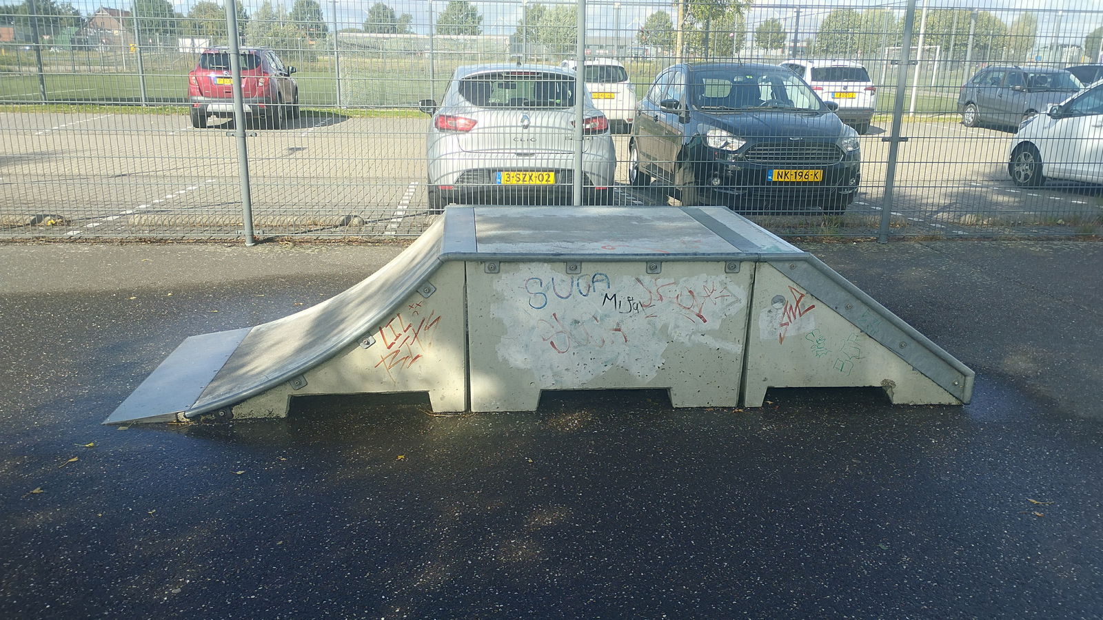 Vierpolders skatepark is made up of a back and forth run with a quarter pipe on either side of a funbox.